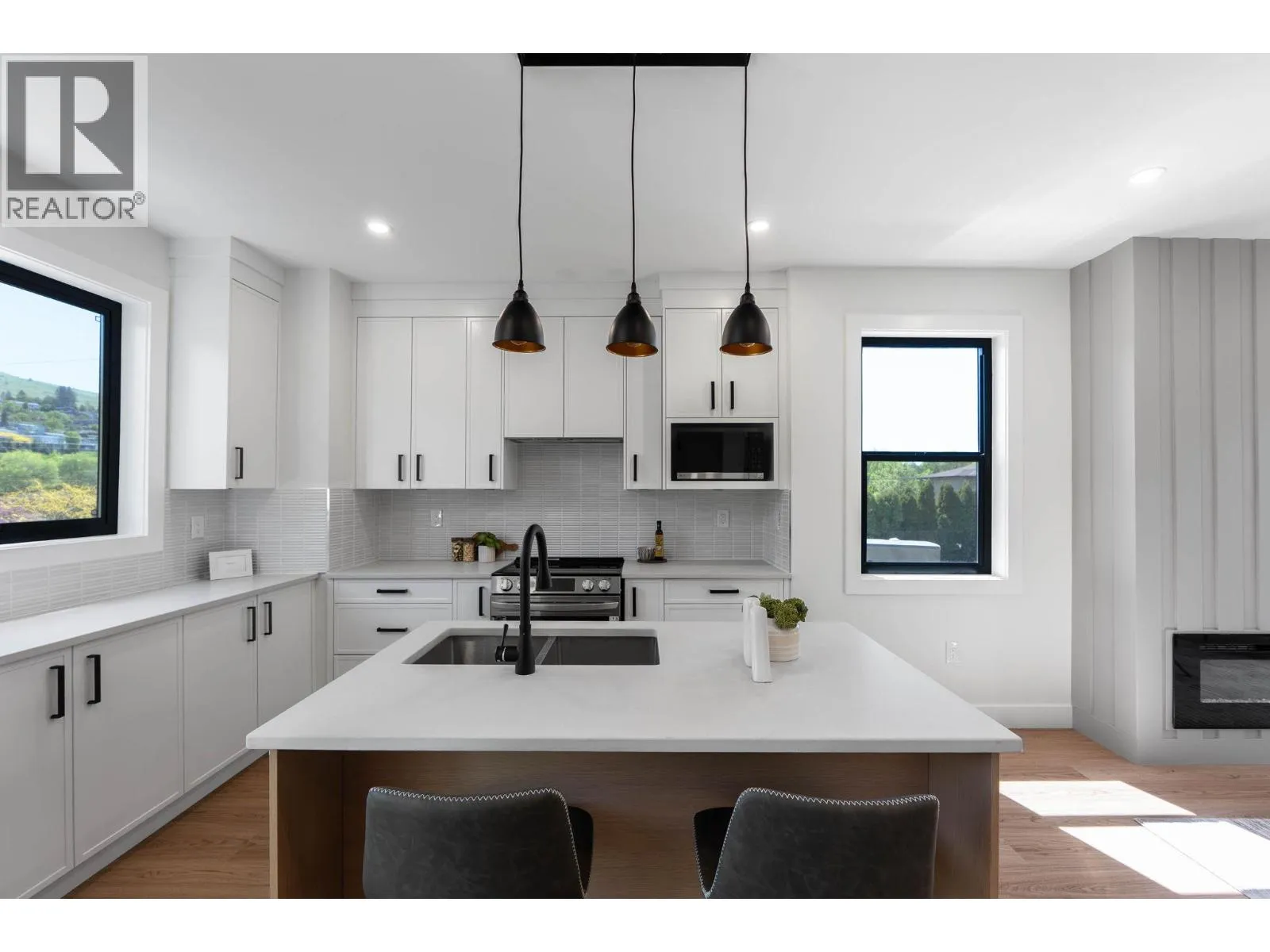 Traditional meets modern flare in these boutique townhomes nestled in a private setting in Lake Country. Indulge in the ultimate Okanagan lifestyle in the private and boutique townhomes, nestled in the flats of Lake Country. Located on a no through road, these homes provide piece and quite surrounded by farms and acreages. Head down the street and take the famous Rail Trail down to the lake. Flooded with natural light the open-concept living space flows effortlessly into the beautiful kitchen accented with gleaming quartz countertops and a custom pantry. A stylish wine bar adds a touch of decadence, perfect for effortless entertaining. Doubled black framed windows allow abundance of natural light creating a seamless open concept space. The fireplace ties in the room with its outstanding traditional but modern appeal. The opulent primary suite offers a rain shower with beautiful assorted tile. The units all have hot water on demand, heat pump, AC units, forced air, all appliances plus wine fridge. The staircases designed with lights. These units are code 4 within the BC Energy Step Code. An oversized garage provides ample space for toys and tools, blending practicality with polish. Sophisticated, sun-drenched, and unapologetically stunningâthese are more than town homes. Itâs your statement piece in the heart of wine country. *Price plus GST PETS ALLOWED! Up to 2 dogs (no size restrictions), 2 cats, or 1 cat/1 dog. **Photos and floor plan are from unit 1 but similar layout. (id:27476)