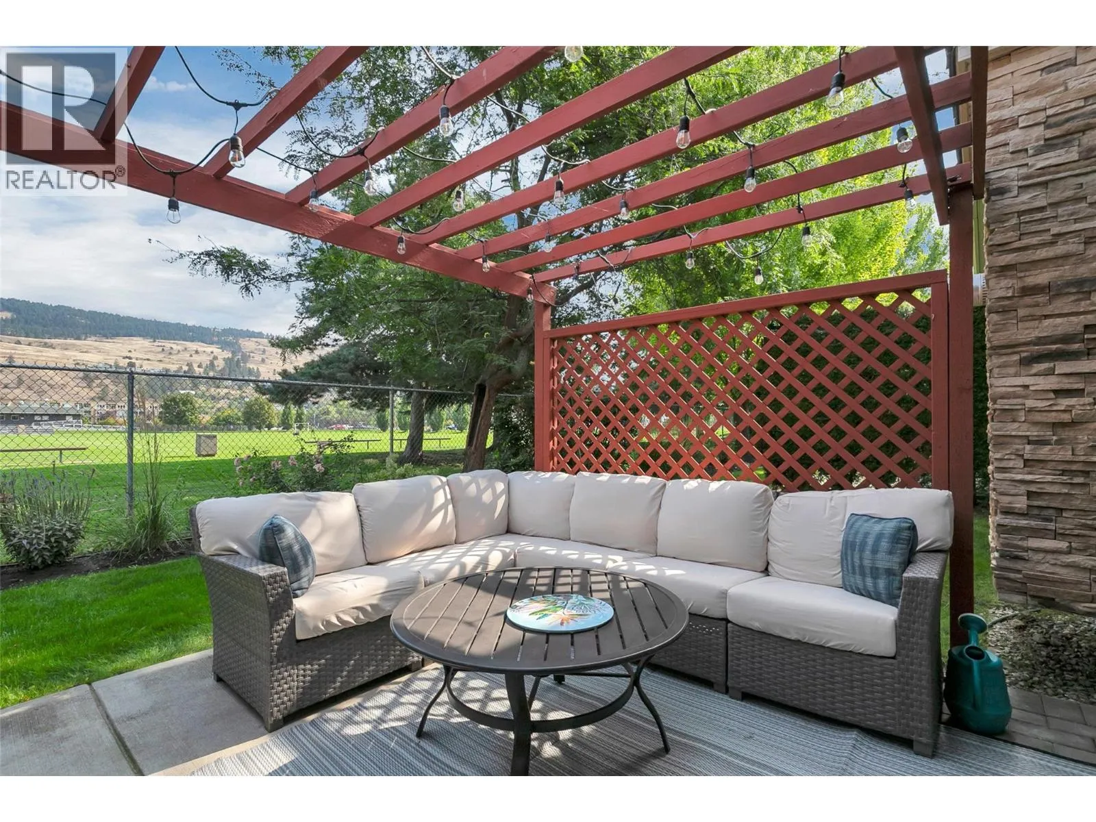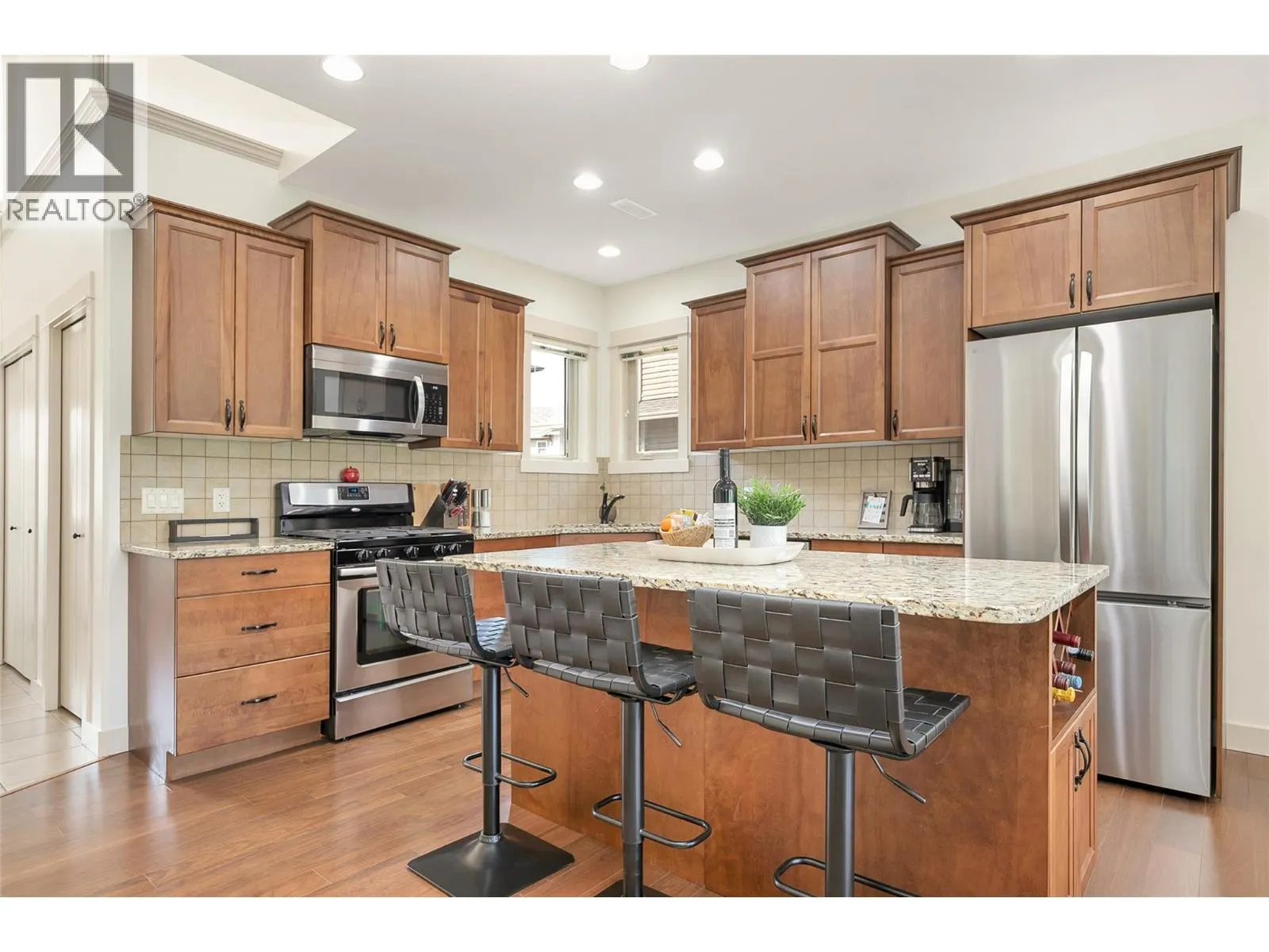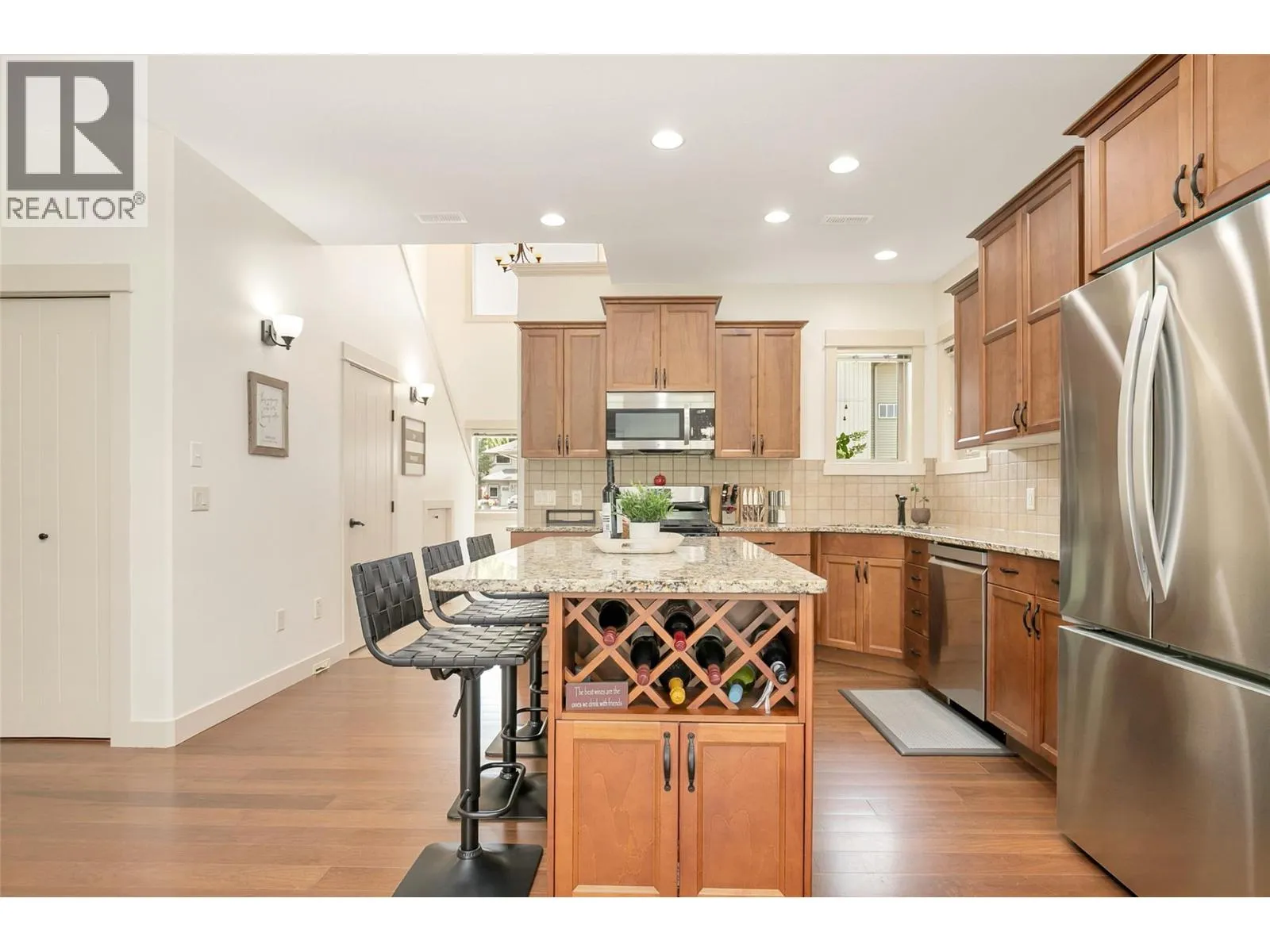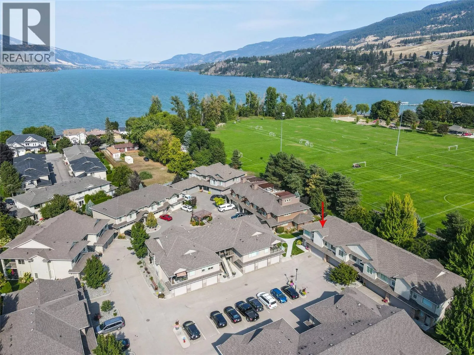 Incredible Townhome with dream location! This Lake Country gem is a large, bright, 4 bedroom, 3 bathroom 1853 sq ft corner unit with double garage and driveway backing onto a beautiful park, steps from the beach. Homeowners have meticulously cared for and improved the place over the past several years. Fresh paint, granite counter tops, new stainless appliances including front load washer & dryer, motorized window blinds and gas fireplace with BBQ hook up. Featuring 9 foot ceilings, huge lofted family room, master bedroom with ensuite on main floor, central air and private patio surrounded by lush green landscaping all make for great comfort and convenience. This well-kept, scenic complex is nestled in nature while being only a 5 minute drive to all necessary and luxury amenities. Schools, university and airport are within close proximity, and you can literally walk to the corner store, pub, Okanagan rail trail, tennis courts or lakefront with your beach chairs or kayak. Don't miss out on this unique opportunity for an awesome lifestyle at an affordable price. Come and experience Townhome living at its best! (id:27476)