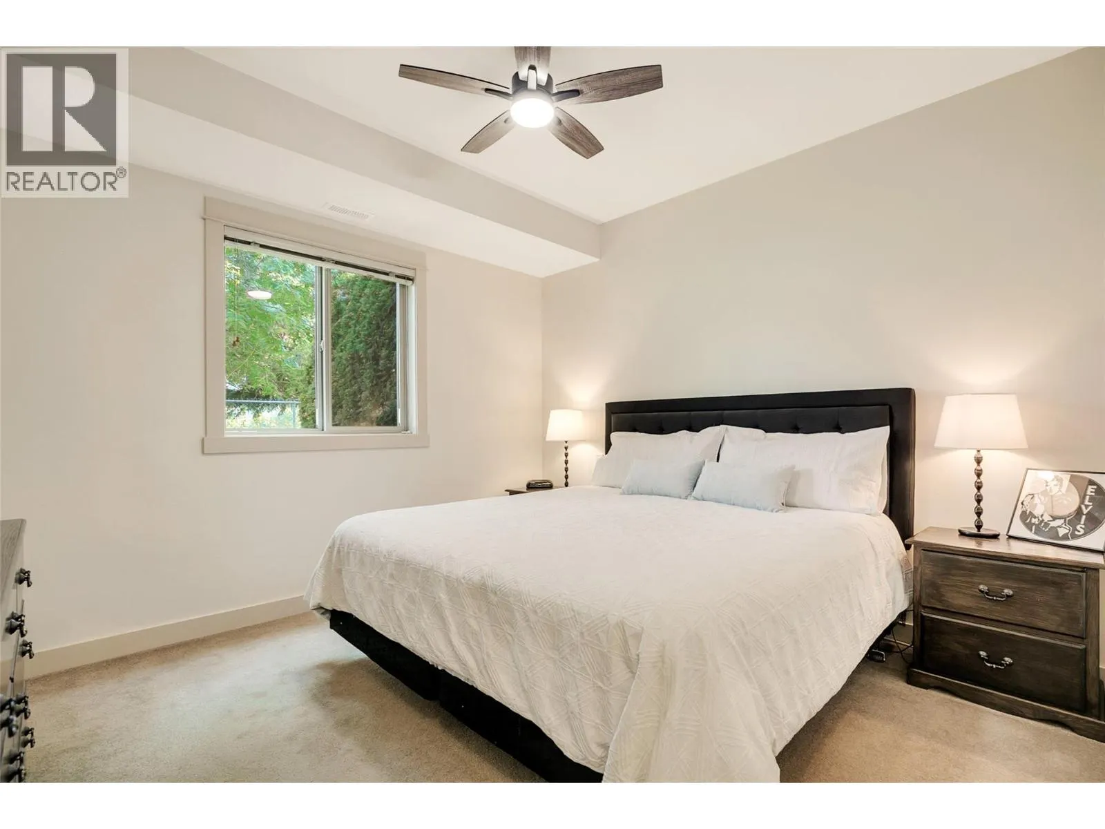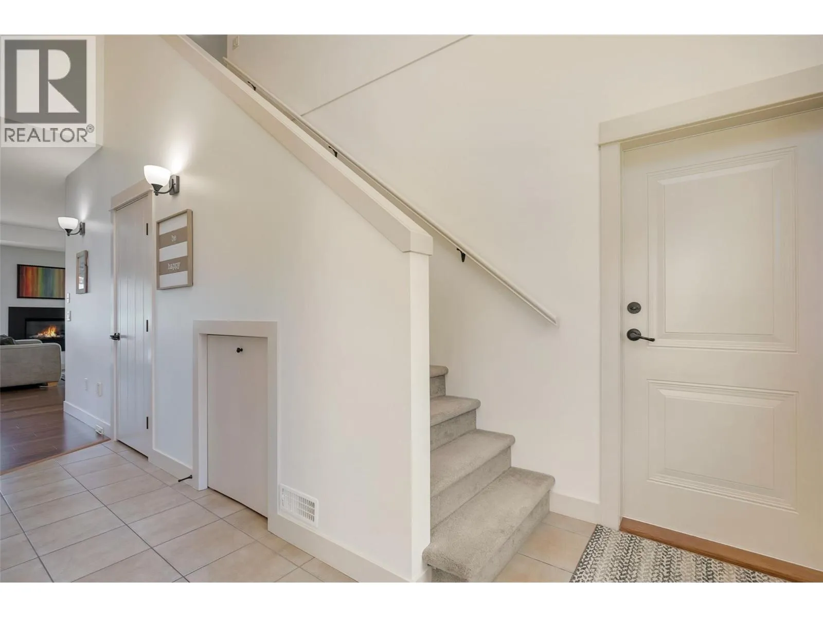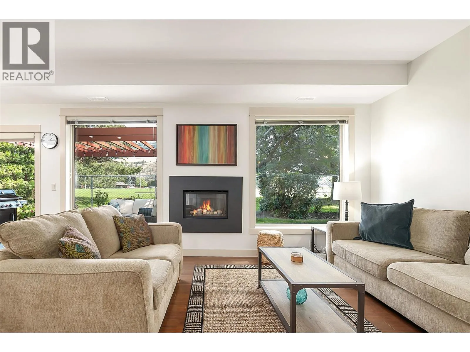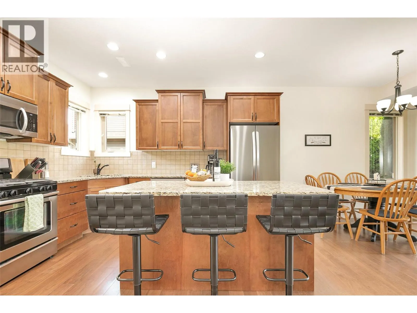 Incredible Townhome with dream location! This Lake Country gem is a large, bright, 4 bedroom, 3 bathroom 1853 sq ft corner unit with double garage and driveway backing onto a beautiful park, steps from the beach. Homeowners have meticulously cared for and improved the place over the past several years. Fresh paint, granite counter tops, new stainless appliances including front load washer & dryer, motorized window blinds and gas fireplace with BBQ hook up. Featuring 9 foot ceilings, huge lofted family room, master bedroom with ensuite on main floor, central air and private patio surrounded by lush green landscaping all make for great comfort and convenience. This well-kept, scenic complex is nestled in nature while being only a 5 minute drive to all necessary and luxury amenities. Schools, university and airport are within close proximity, and you can literally walk to the corner store, pub, Okanagan rail trail, tennis courts or lakefront with your beach chairs or kayak. Don't miss out on this unique opportunity for an awesome lifestyle at an affordable price. Come and experience Townhome living at its best! (id:27476)