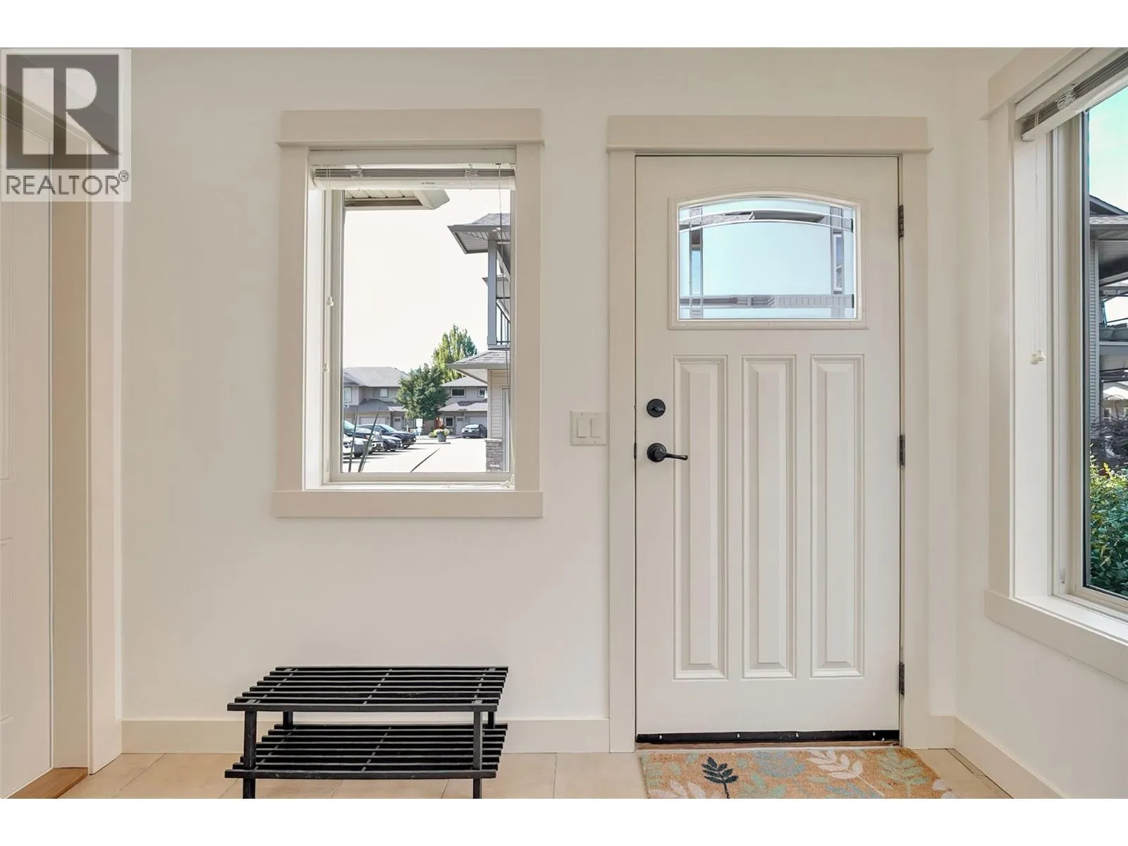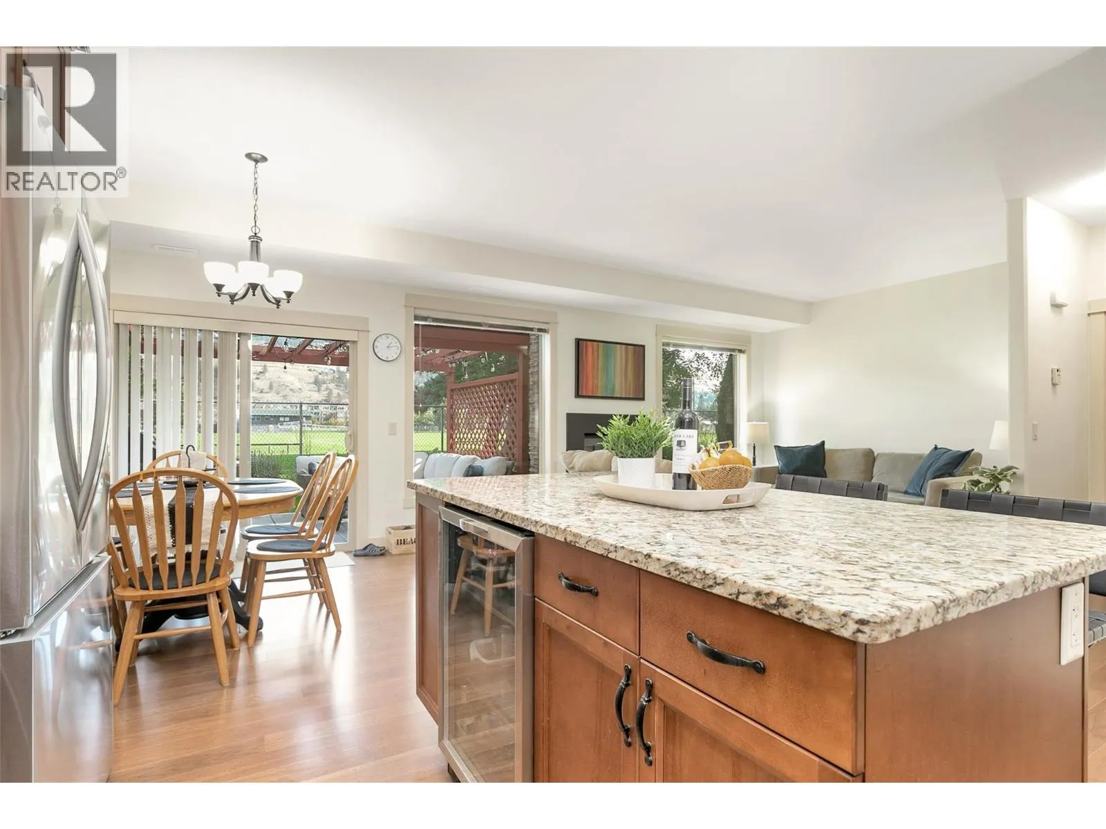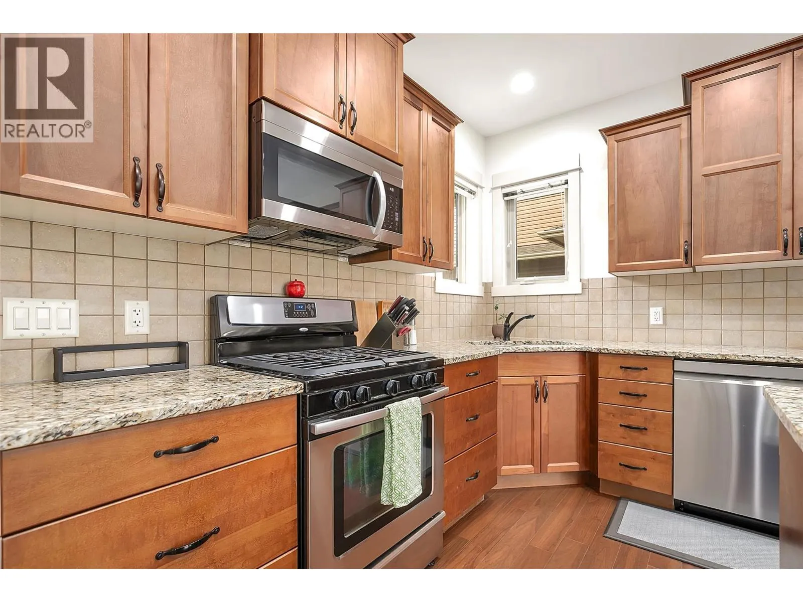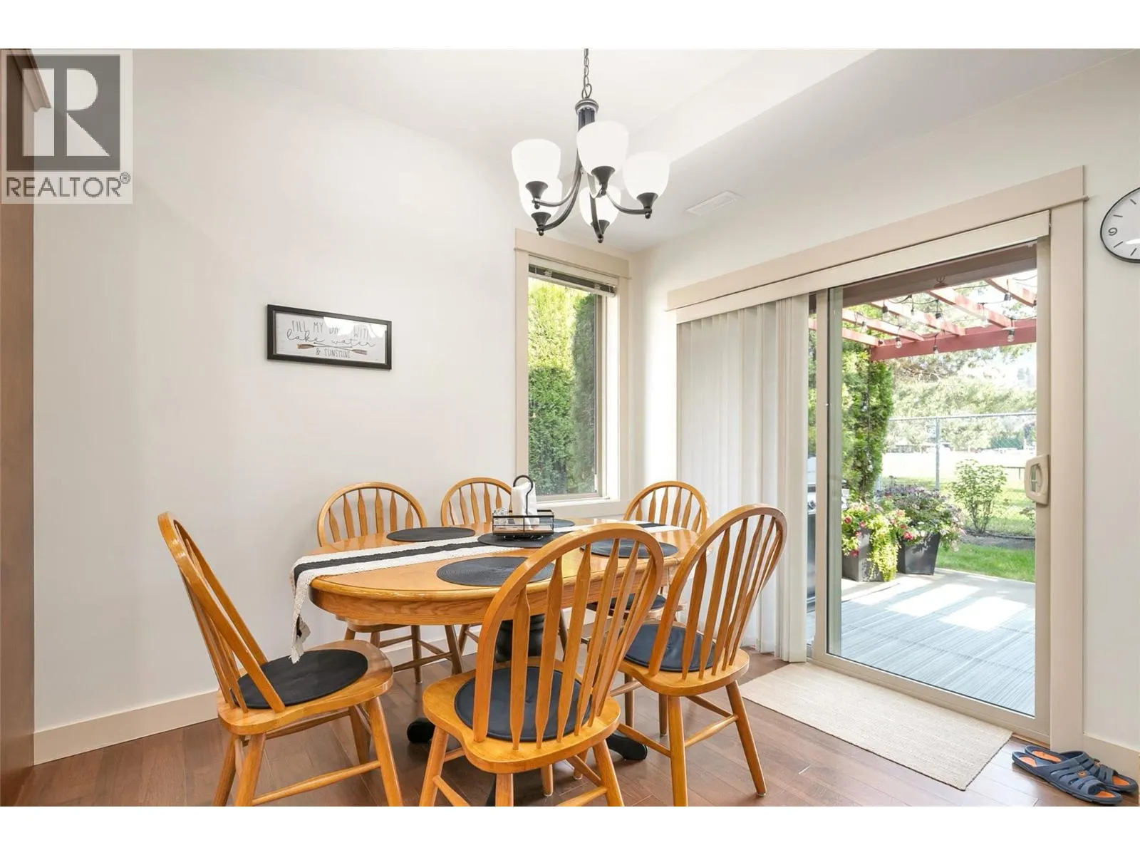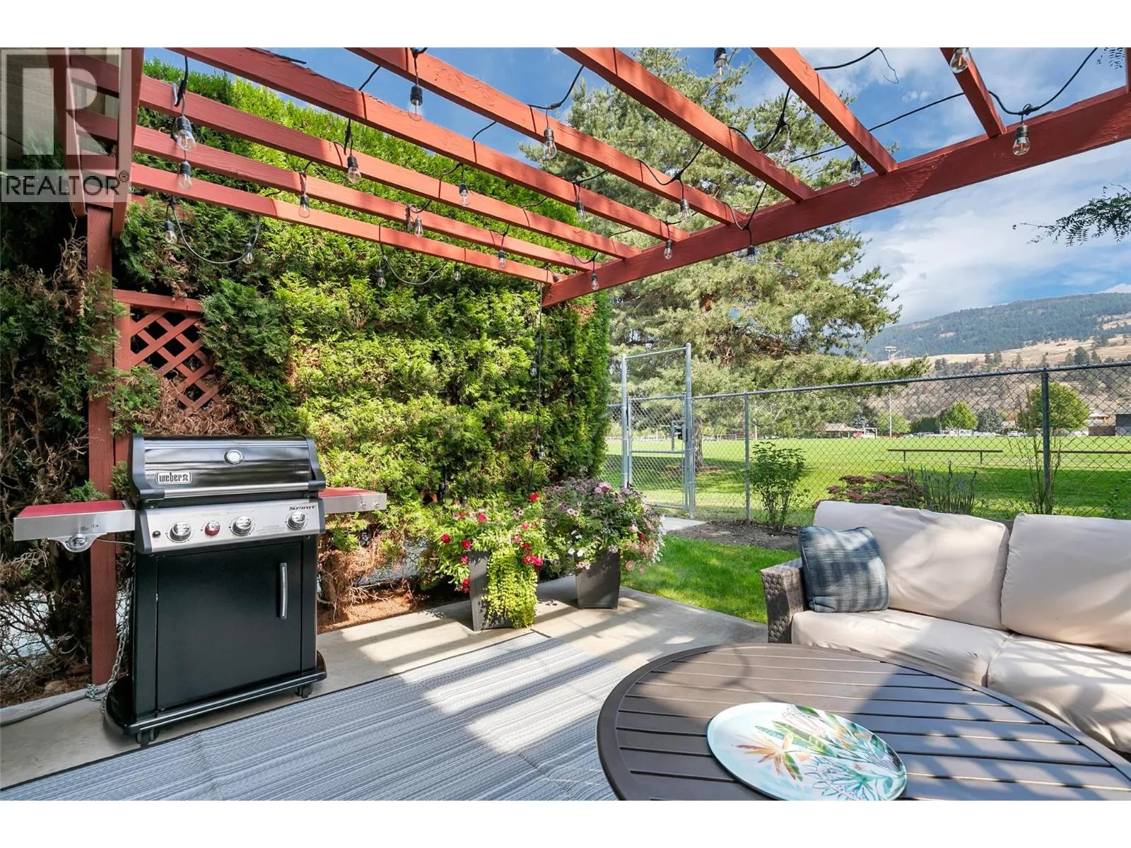 Incredible Townhome with dream location! This Lake Country gem is a large, bright, 4 bedroom, 3 bathroom 1853 sq ft corner unit with double garage and driveway backing onto a beautiful park, steps from the beach. Homeowners have meticulously cared for and improved the place over the past several years. Fresh paint, granite counter tops, new stainless appliances including front load washer & dryer, motorized window blinds and gas fireplace with BBQ hook up. Featuring 9 foot ceilings, huge lofted family room, master bedroom with ensuite on main floor, central air and private patio surrounded by lush green landscaping all make for great comfort and convenience. This well-kept, scenic complex is nestled in nature while being only a 5 minute drive to all necessary and luxury amenities. Schools, university and airport are within close proximity, and you can literally walk to the corner store, pub, Okanagan rail trail, tennis courts or lakefront with your beach chairs or kayak. Don't miss out on this unique opportunity for an awesome lifestyle at an affordable price. Come and experience Townhome living at its best! (id:27476)