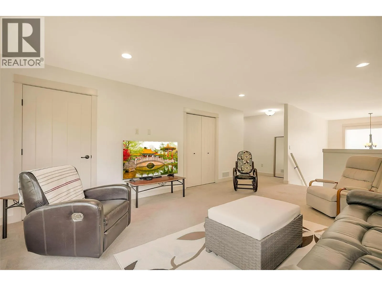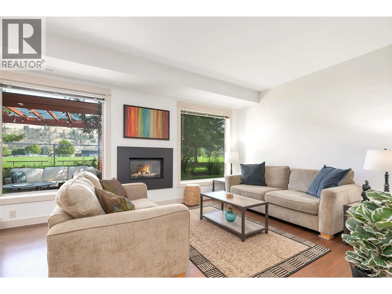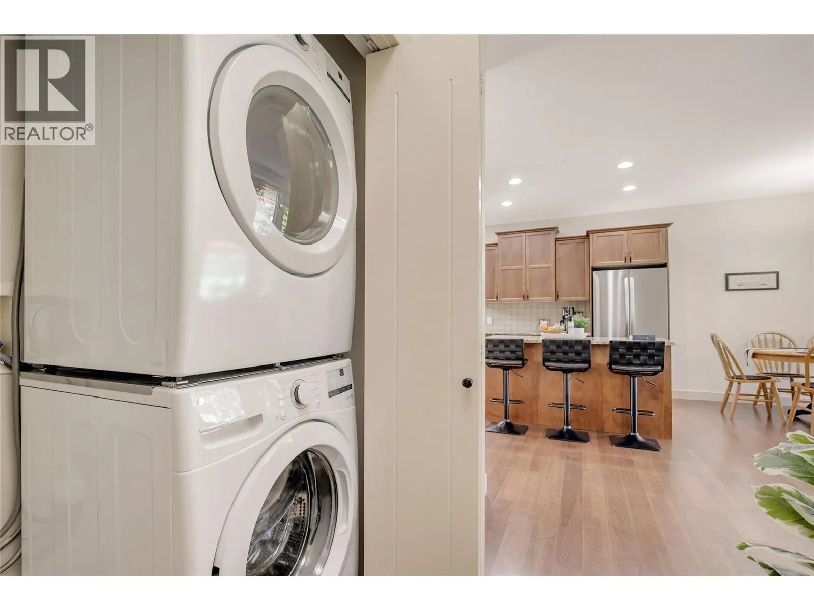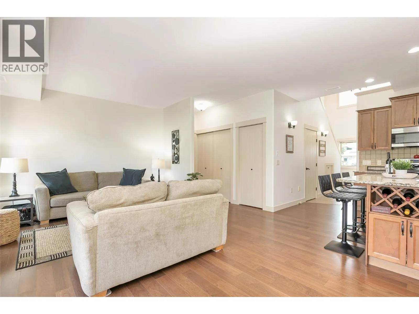 Incredible Townhome with dream location! This Lake Country gem is a large, bright, 4 bedroom, 3 bathroom 1853 sq ft corner unit with double garage and driveway backing onto a beautiful park, steps from the beach. Homeowners have meticulously cared for and improved the place over the past several years. Fresh paint, granite counter tops, new stainless appliances including front load washer & dryer, motorized window blinds and gas fireplace with BBQ hook up. Featuring 9 foot ceilings, huge lofted family room, master bedroom with ensuite on main floor, central air and private patio surrounded by lush green landscaping all make for great comfort and convenience. This well-kept, scenic complex is nestled in nature while being only a 5 minute drive to all necessary and luxury amenities. Schools, university and airport are within close proximity, and you can literally walk to the corner store, pub, Okanagan rail trail, tennis courts or lakefront with your beach chairs or kayak. Don't miss out on this unique opportunity for an awesome lifestyle at an affordable price. Come and experience Townhome living at its best! (id:27476)