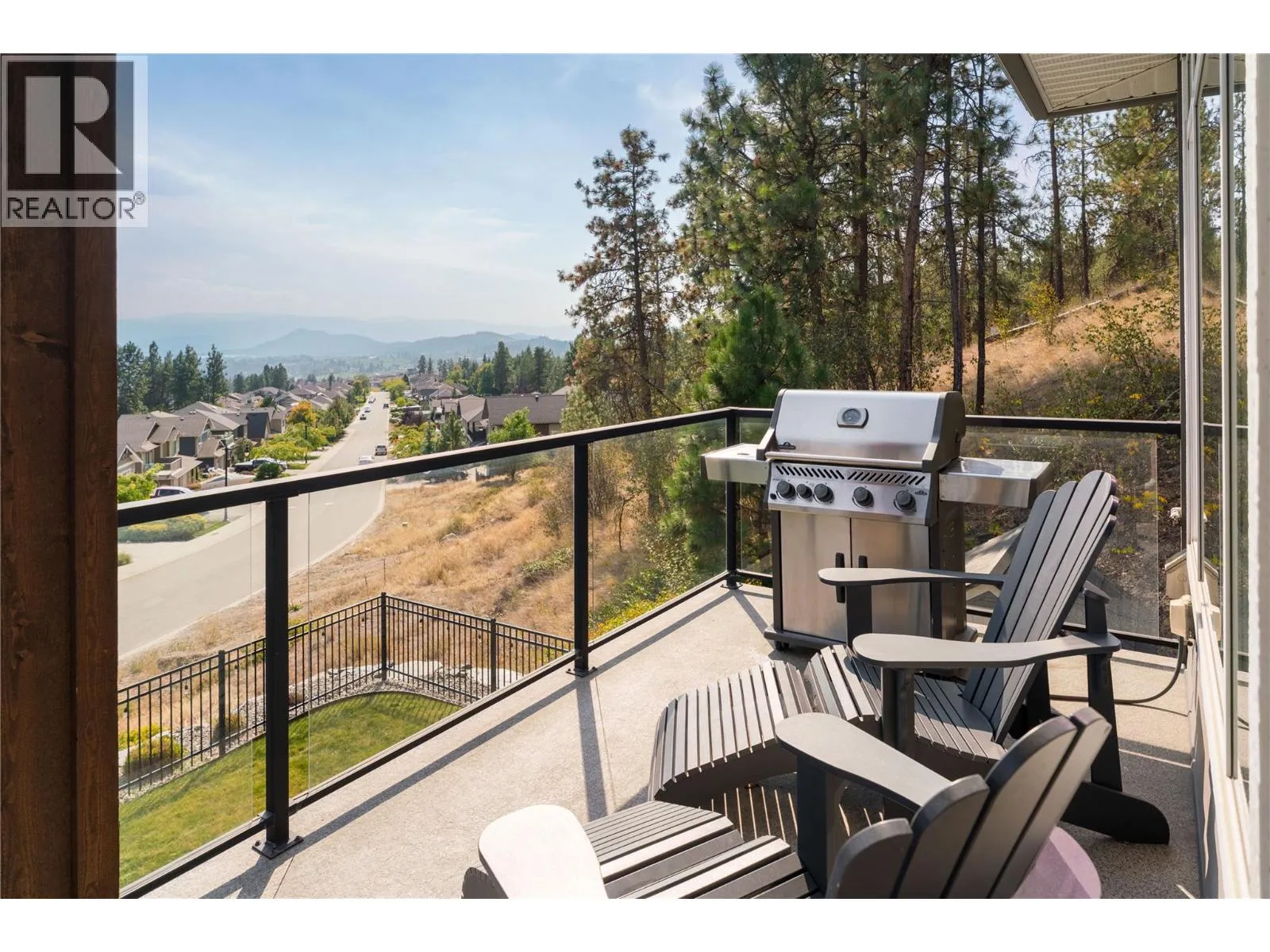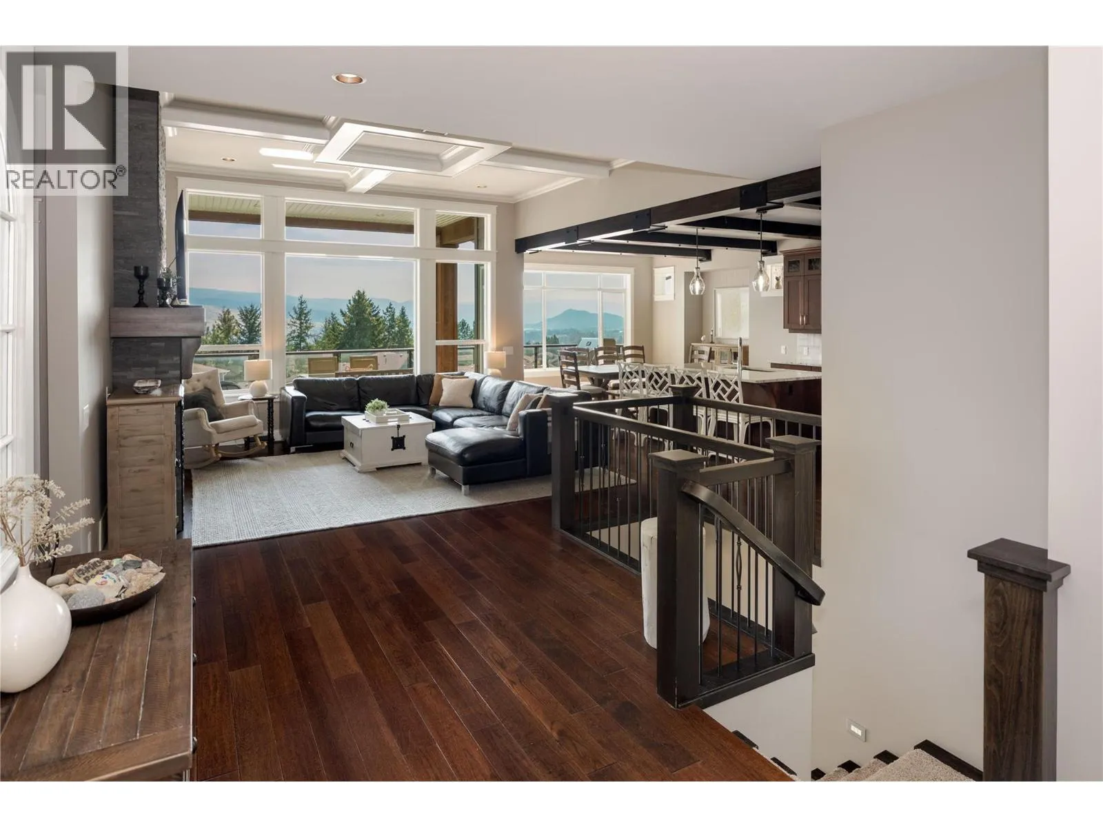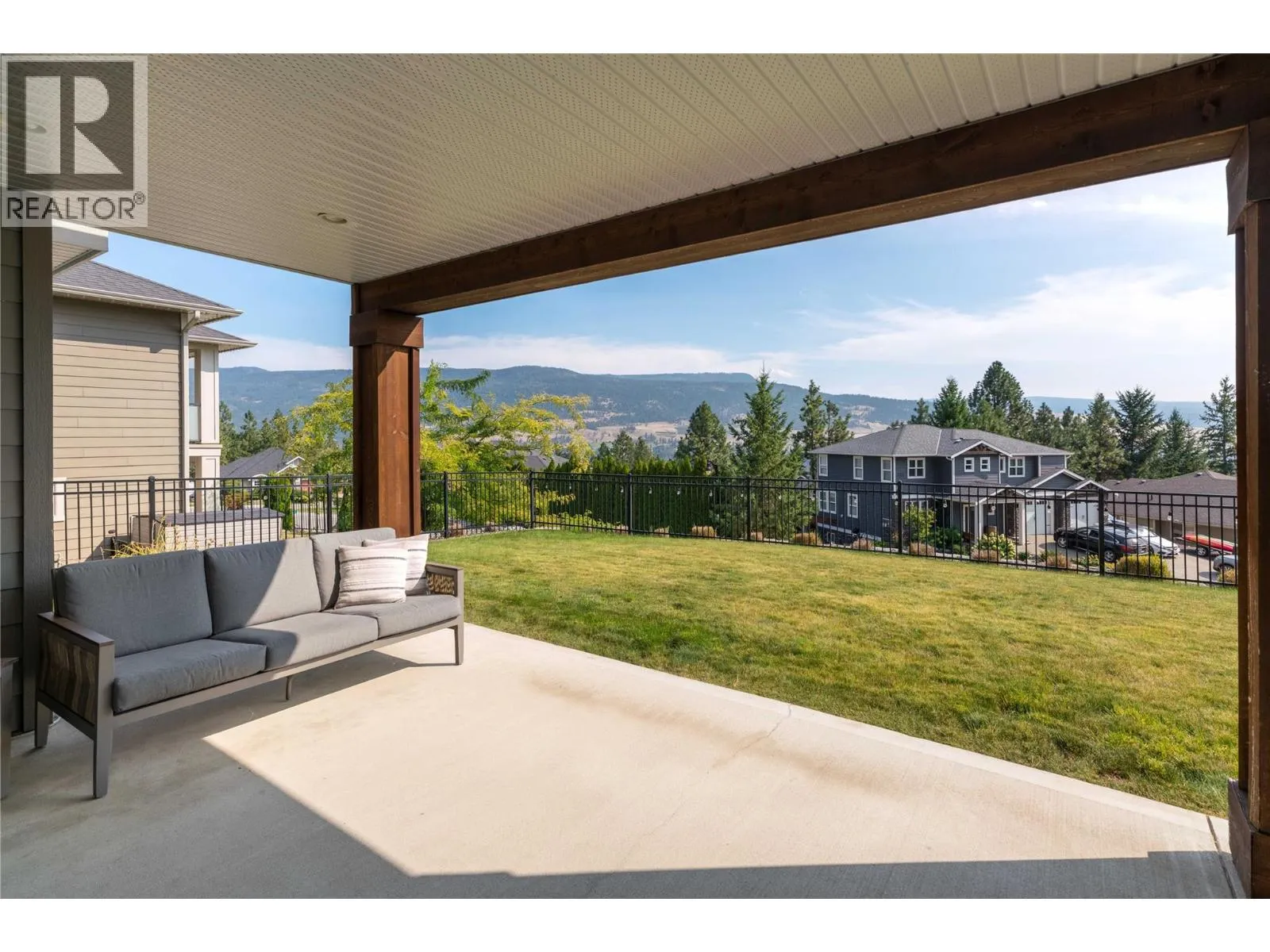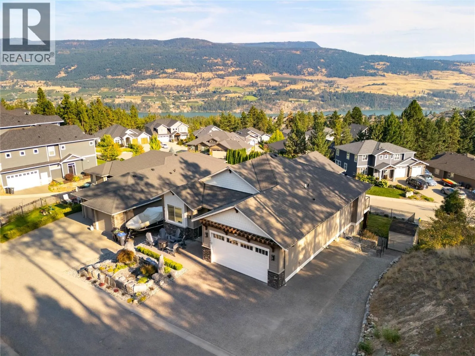 Unmatched privacy, sweeping views & direct access to natureâthis residence at The Lakes is truly one-of-a-kind. Set on a no-thru road with absolutely no traffic and only one neighbour, itâs a retreat designed for both relaxation & entertaining. From sunrise over the mountains to twinkling town lights at night, the panoramic views stretch across Lake Country, the lakes, orchards & rolling hills. The backyard has been recently fenced, offering room for a private pool & is wired for a hot tub. Backing onto 10 acres of parkland with access to the Spion Kop trail system, adventure is quite literally at your back door. Inside, craftsmanship shinesâcustom wood beams, built-ins & timeless millwork provide warmth & character throughout. The main level boasts a chefâs kitchen with granite counters, stainless appliances & walk-in pantry, seamlessly open to the dining & living areas where floor-to-ceiling windows capture the views. The primary suite is a peaceful escape with a spa-inspired ensuite featuring heated floors. The lower walk-out level is designed for family living, offering a spacious recreation room, two bedrooms, a full bath & direct access to the covered patio & yard. Extensive landscape upgrades include a tranquil running stream, ornamental fencing & expanded parking areas. A rare offering that balances natural beauty with refined livingâthis is where Okanagan lifestyle dreams come true. (id:27476)
