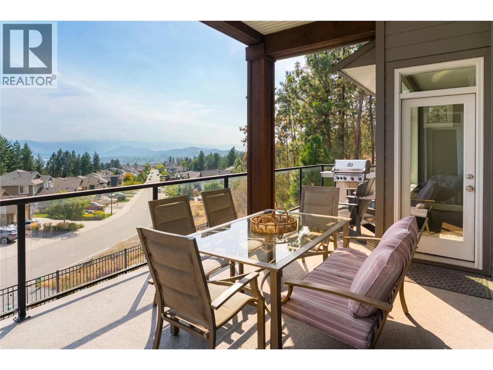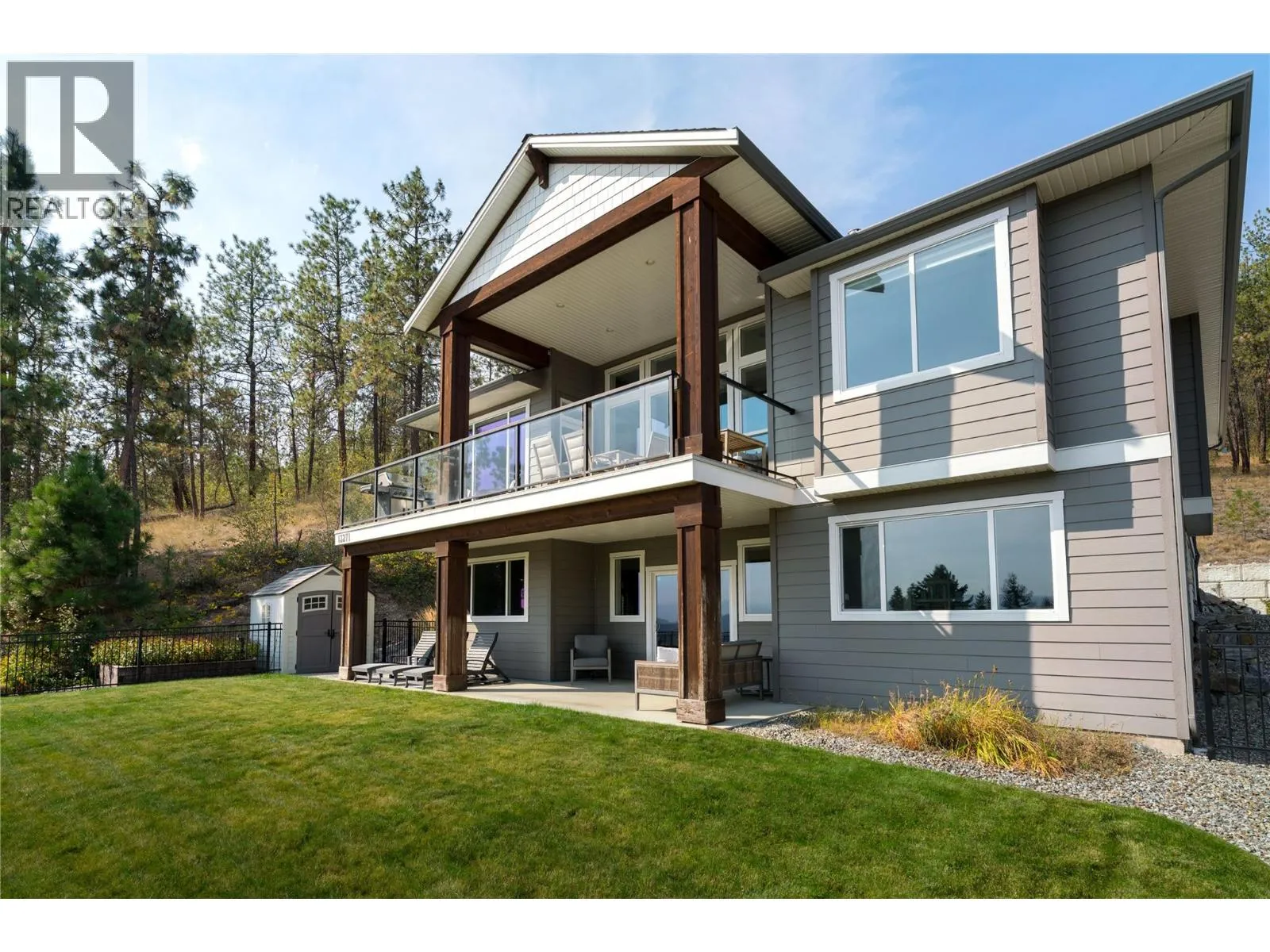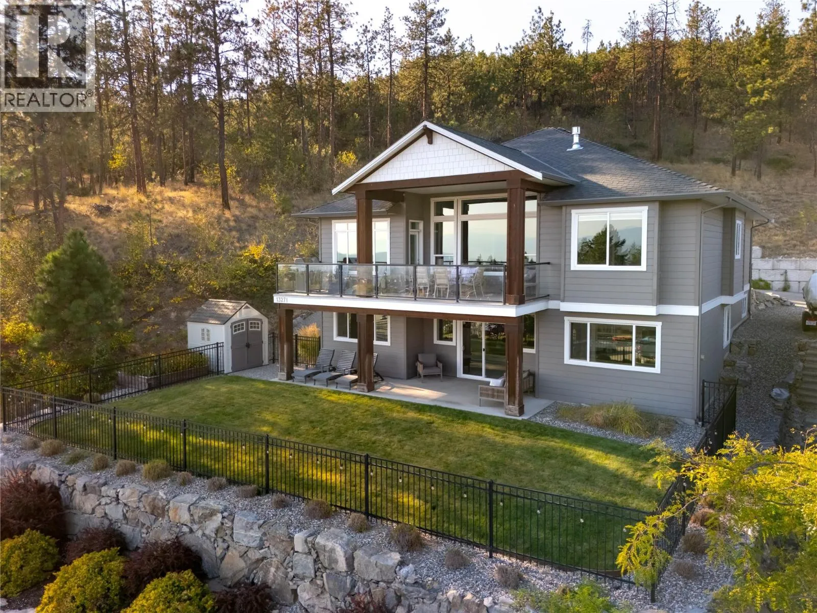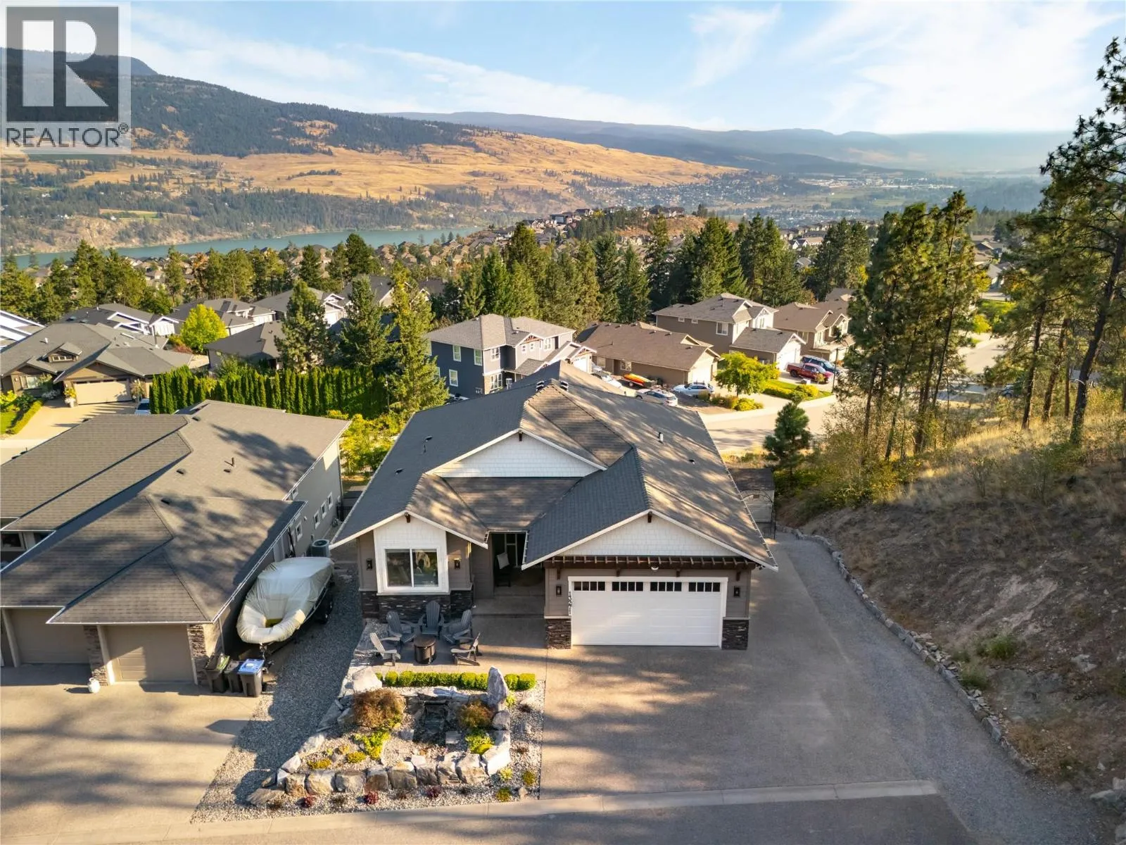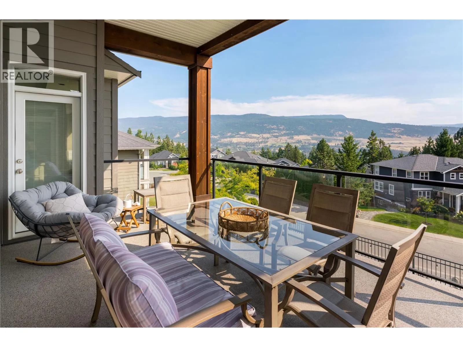Unmatched privacy, sweeping views & direct access to natureâthis residence at The Lakes is truly one-of-a-kind. Set on a no-thru road with absolutely no traffic and only one neighbour, itâs a retreat designed for both relaxation & entertaining. From sunrise over the mountains to twinkling town lights at night, the panoramic views stretch across Lake Country, the lakes, orchards & rolling hills. The backyard has been recently fenced, offering room for a private pool & is wired for a hot tub. Backing onto 10 acres of parkland with access to the Spion Kop trail system, adventure is quite literally at your back door. Inside, craftsmanship shinesâcustom wood beams, built-ins & timeless millwork provide warmth & character throughout. The main level boasts a chefâs kitchen with granite counters, stainless appliances & walk-in pantry, seamlessly open to the dining & living areas where floor-to-ceiling windows capture the views. The primary suite is a peaceful escape with a spa-inspired ensuite featuring heated floors. The lower walk-out level is designed for family living, offering a spacious recreation room, two bedrooms, a full bath & direct access to the covered patio & yard. Extensive landscape upgrades include a tranquil running stream, ornamental fencing & expanded parking areas. A rare offering that balances natural beauty with refined livingâthis is where Okanagan lifestyle dreams come true. (id:27476)
