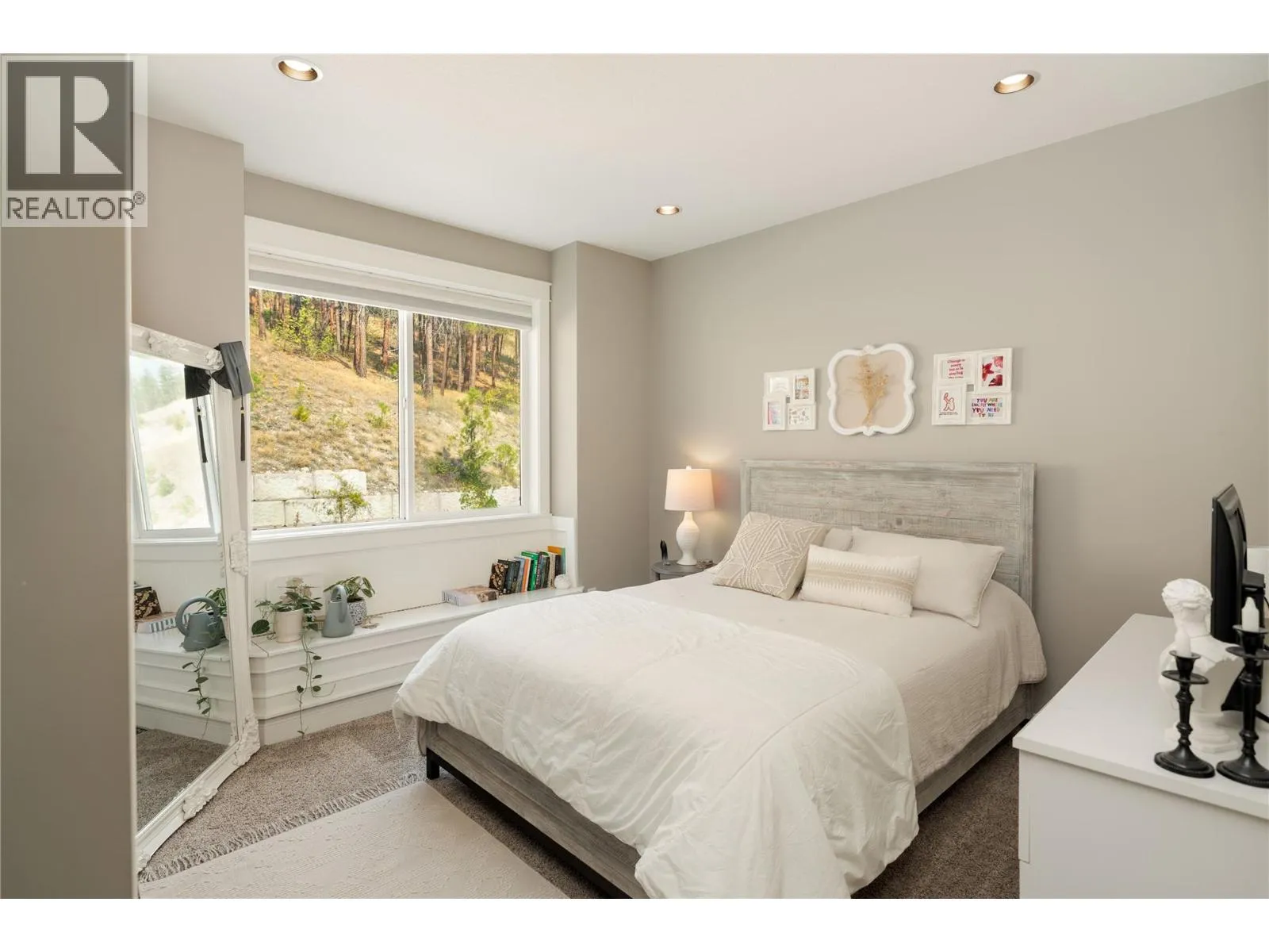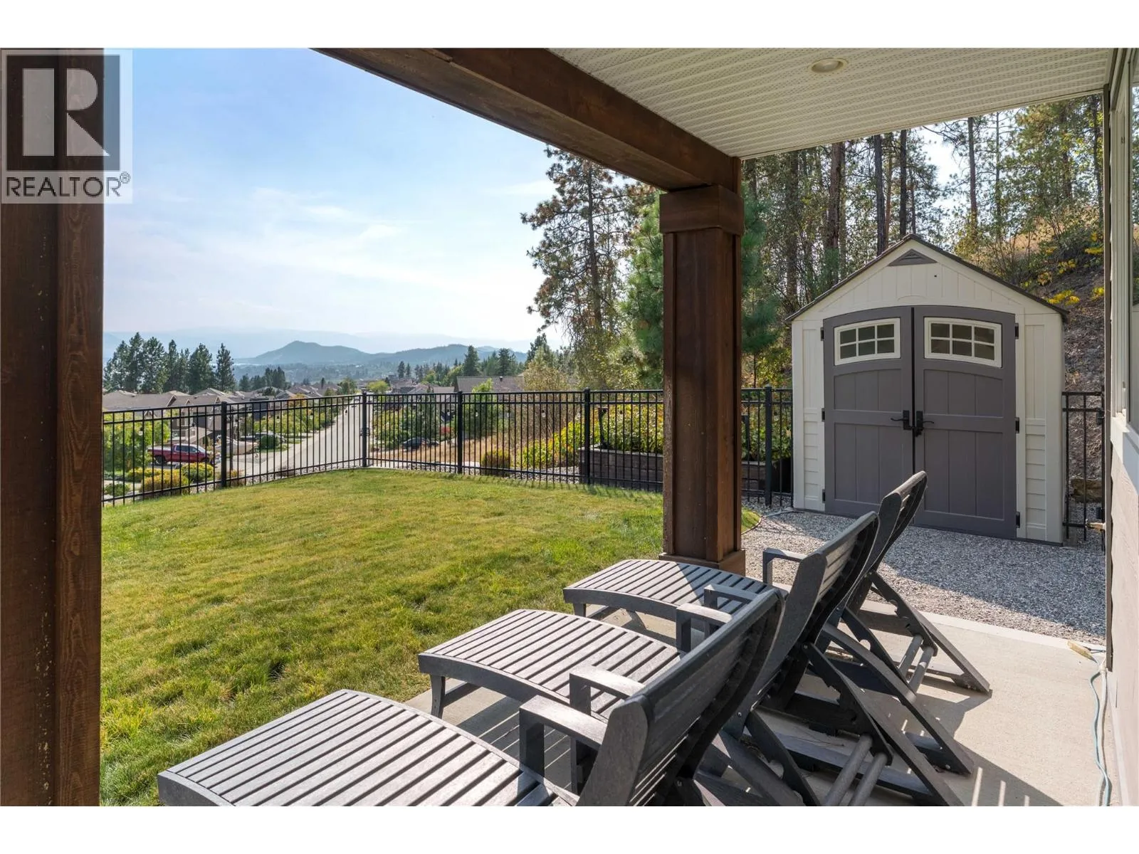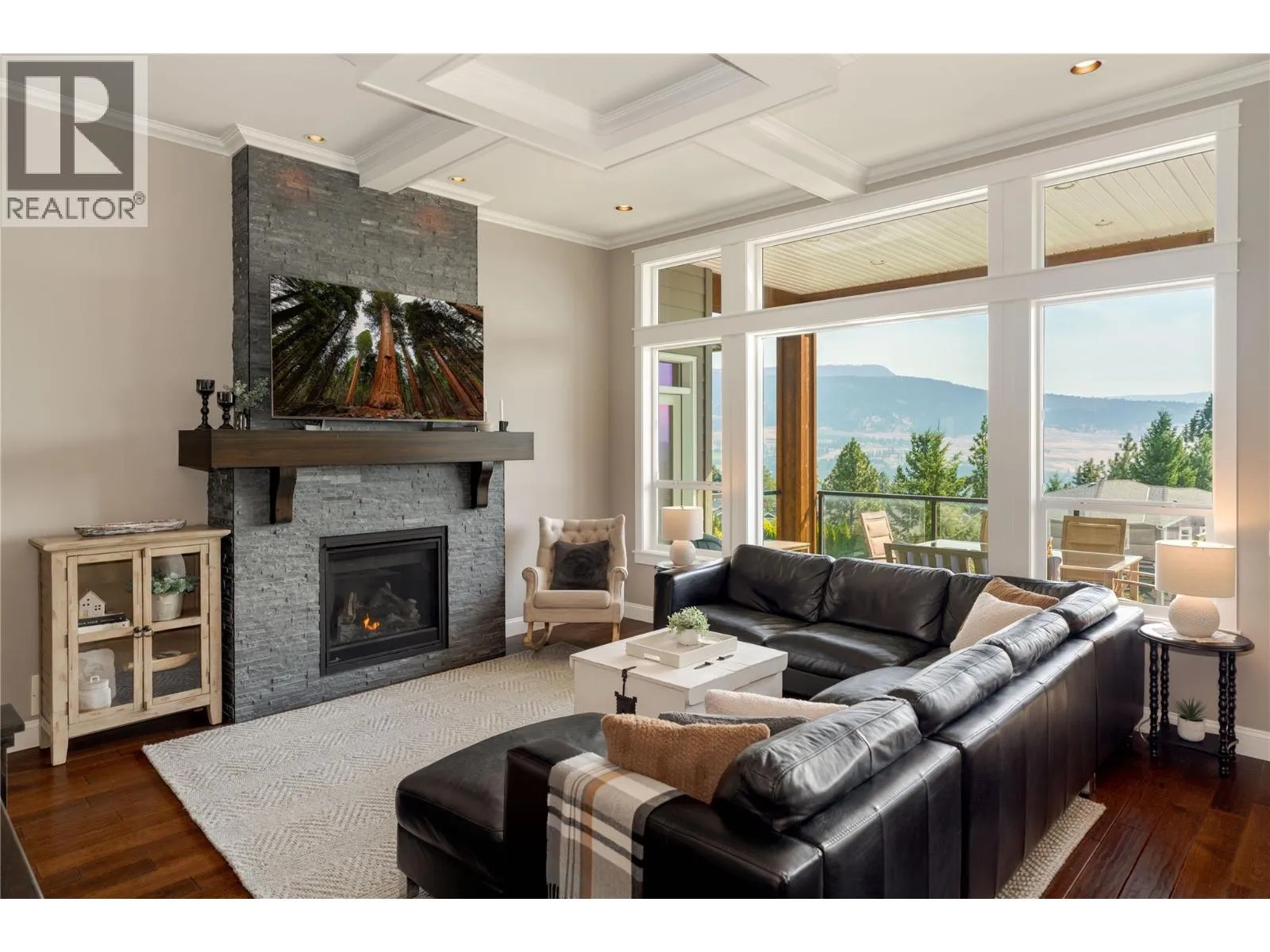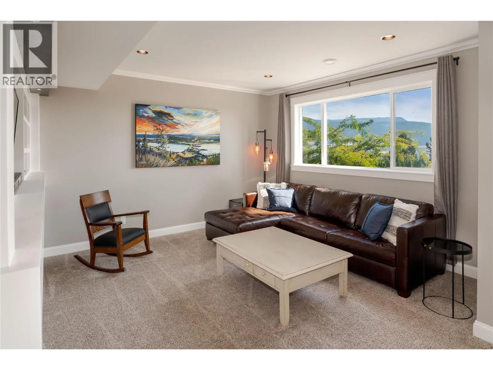 Unmatched privacy, sweeping views & direct access to natureâthis residence at The Lakes is truly one-of-a-kind. Set on a no-thru road with absolutely no traffic and only one neighbour, itâs a retreat designed for both relaxation & entertaining. From sunrise over the mountains to twinkling town lights at night, the panoramic views stretch across Lake Country, the lakes, orchards & rolling hills. The backyard has been recently fenced, offering room for a private pool & is wired for a hot tub. Backing onto 10 acres of parkland with access to the Spion Kop trail system, adventure is quite literally at your back door. Inside, craftsmanship shinesâcustom wood beams, built-ins & timeless millwork provide warmth & character throughout. The main level boasts a chefâs kitchen with granite counters, stainless appliances & walk-in pantry, seamlessly open to the dining & living areas where floor-to-ceiling windows capture the views. The primary suite is a peaceful escape with a spa-inspired ensuite featuring heated floors. The lower walk-out level is designed for family living, offering a spacious recreation room, two bedrooms, a full bath & direct access to the covered patio & yard. Extensive landscape upgrades include a tranquil running stream, ornamental fencing & expanded parking areas. A rare offering that balances natural beauty with refined livingâthis is where Okanagan lifestyle dreams come true. (id:27476)