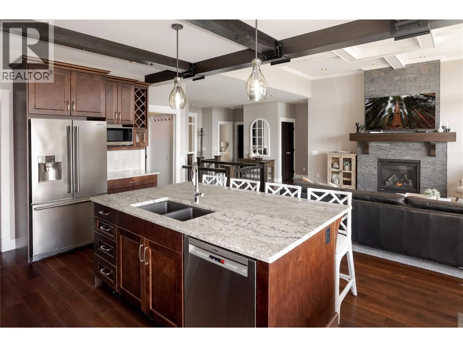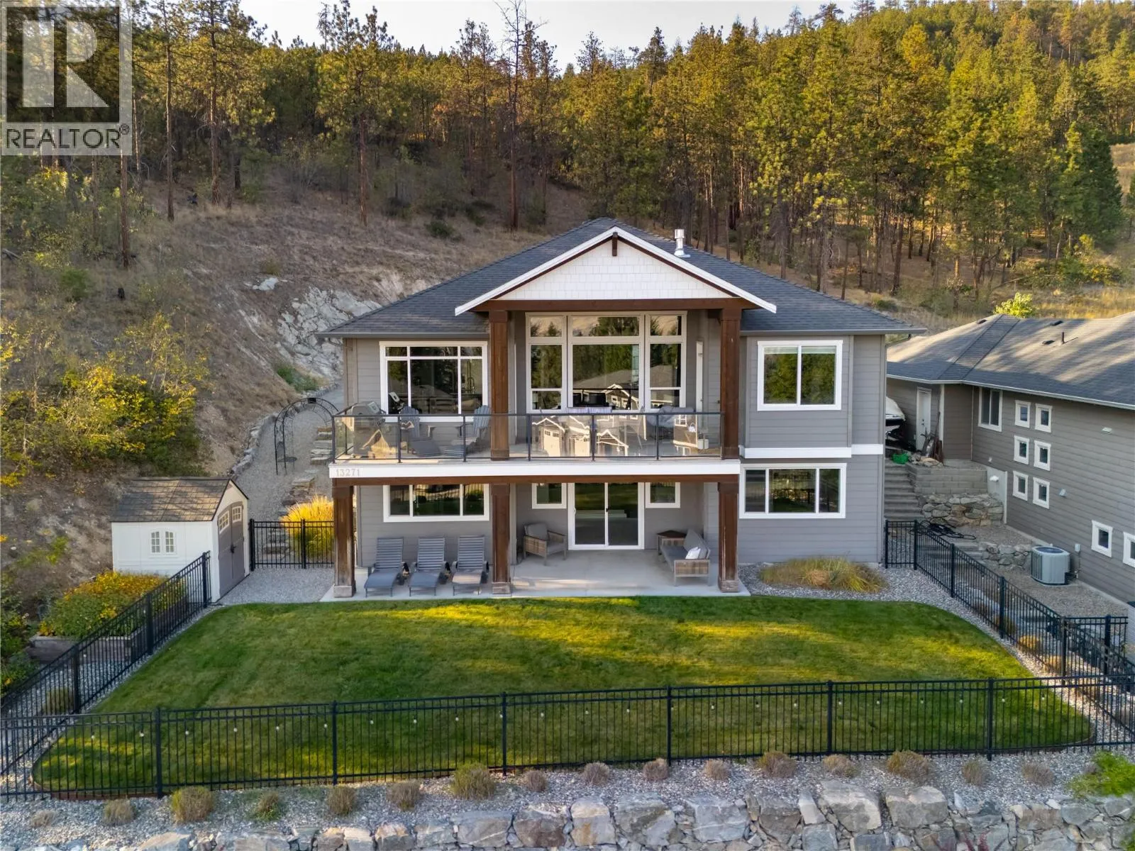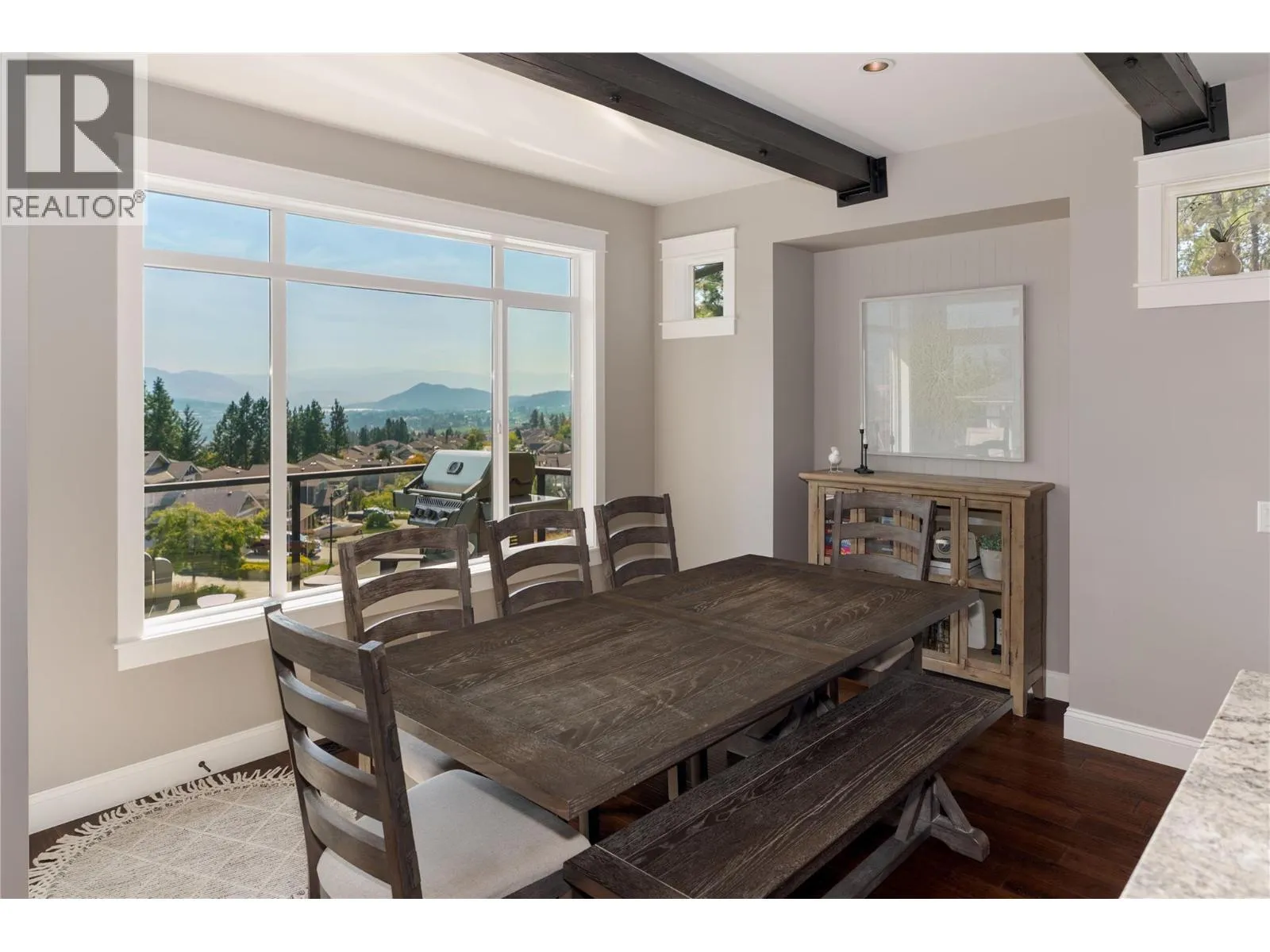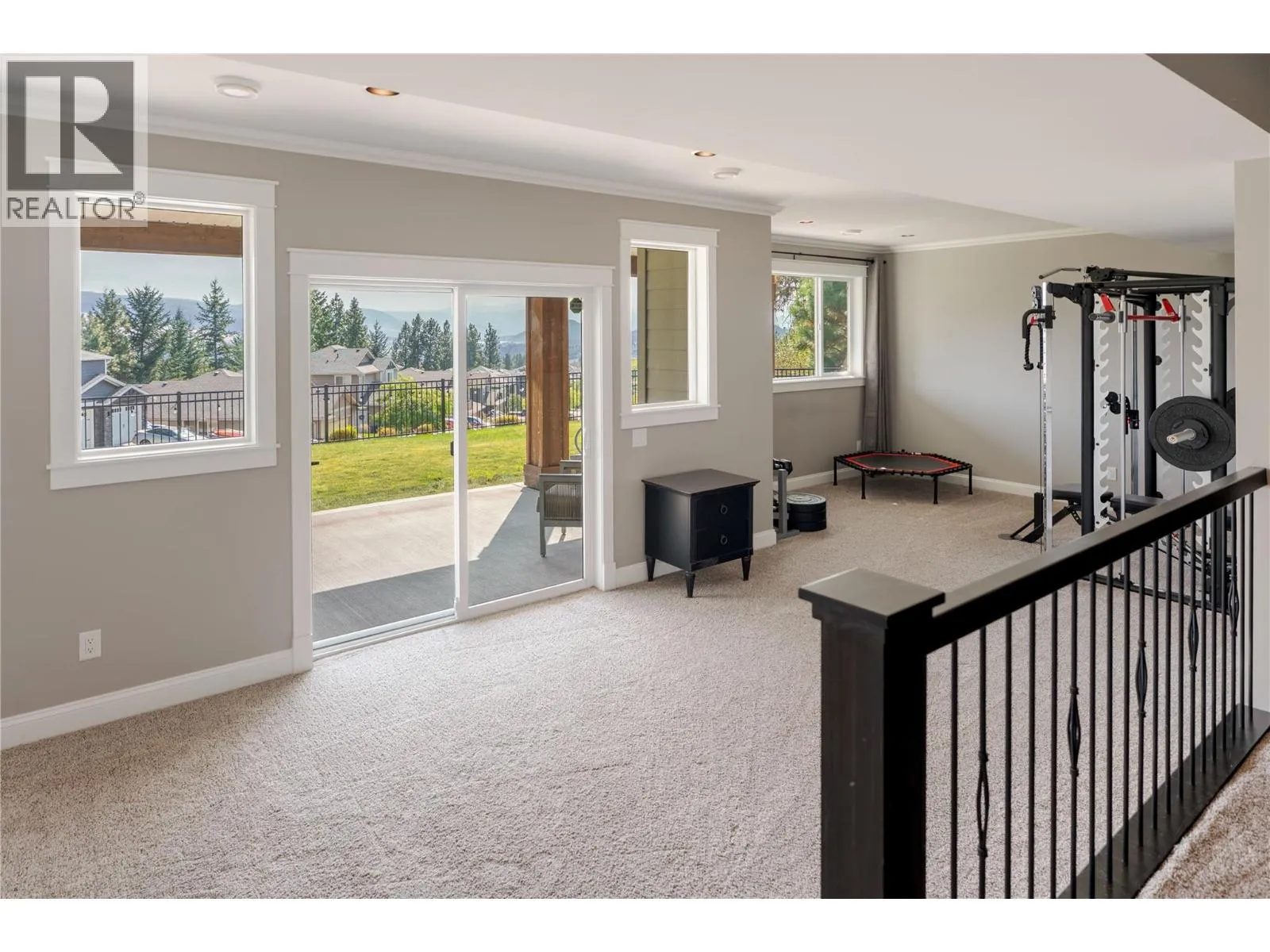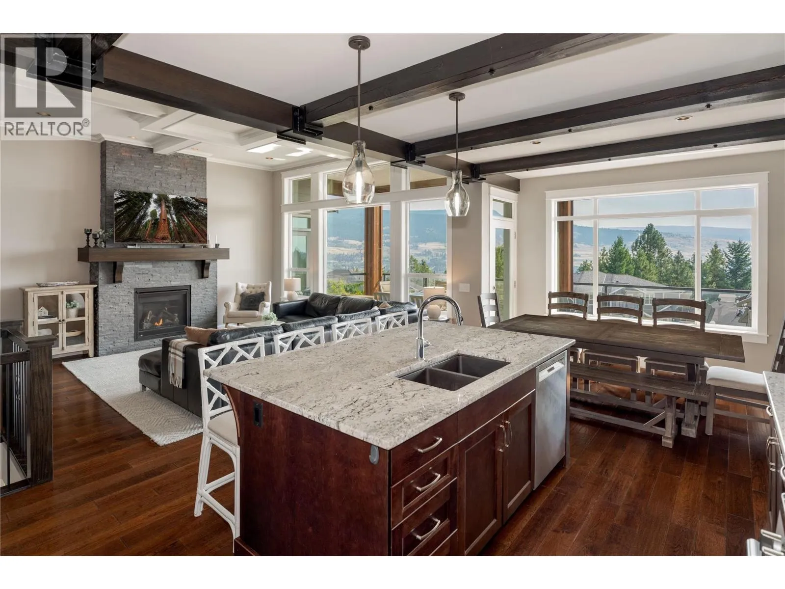 Unmatched privacy, sweeping views & direct access to natureâthis residence at The Lakes is truly one-of-a-kind. Set on a no-thru road with absolutely no traffic and only one neighbour, itâs a retreat designed for both relaxation & entertaining. From sunrise over the mountains to twinkling town lights at night, the panoramic views stretch across Lake Country, the lakes, orchards & rolling hills. The backyard has been recently fenced, offering room for a private pool & is wired for a hot tub. Backing onto 10 acres of parkland with access to the Spion Kop trail system, adventure is quite literally at your back door. Inside, craftsmanship shinesâcustom wood beams, built-ins & timeless millwork provide warmth & character throughout. The main level boasts a chefâs kitchen with granite counters, stainless appliances & walk-in pantry, seamlessly open to the dining & living areas where floor-to-ceiling windows capture the views. The primary suite is a peaceful escape with a spa-inspired ensuite featuring heated floors. The lower walk-out level is designed for family living, offering a spacious recreation room, two bedrooms, a full bath & direct access to the covered patio & yard. Extensive landscape upgrades include a tranquil running stream, ornamental fencing & expanded parking areas. A rare offering that balances natural beauty with refined livingâthis is where Okanagan lifestyle dreams come true. (id:27476)