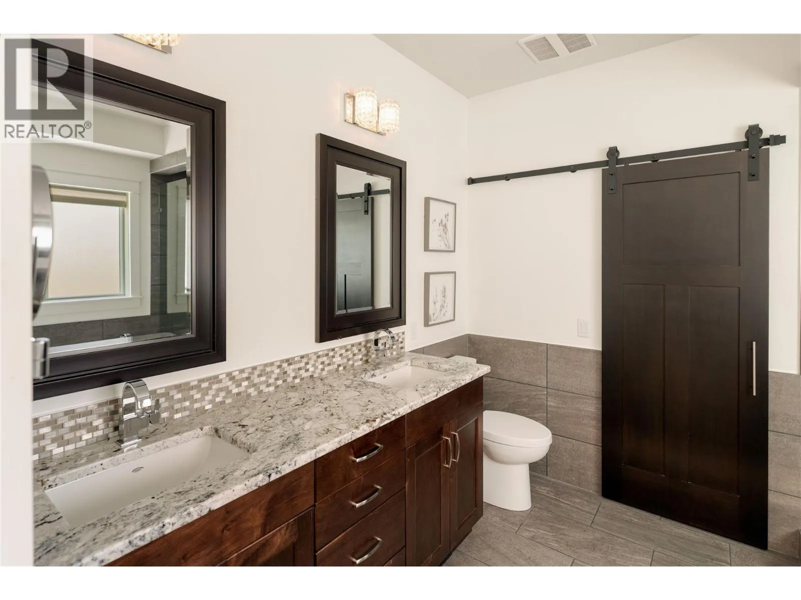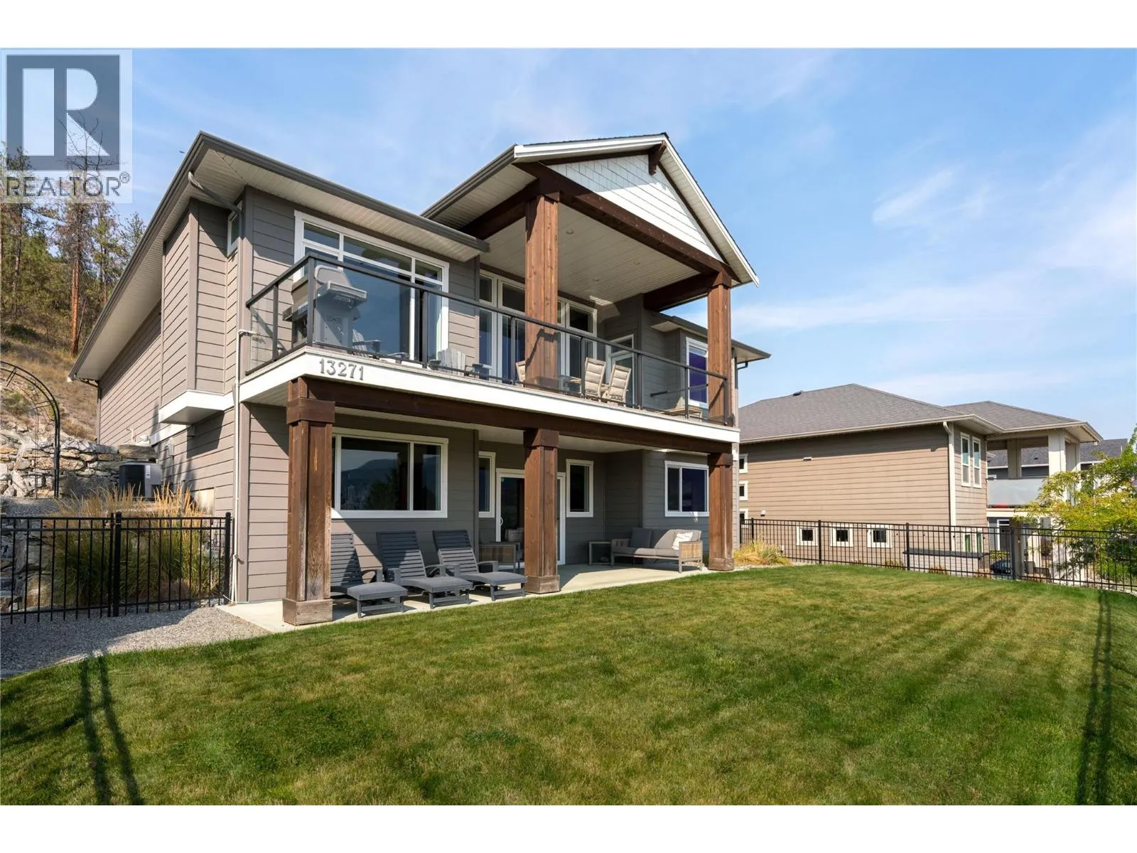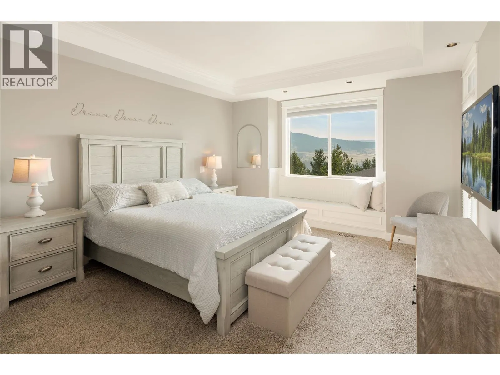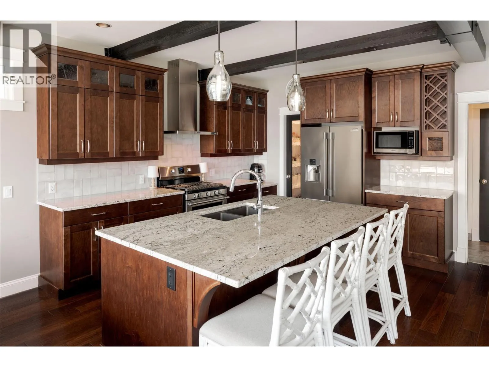 Unmatched privacy, sweeping views & direct access to natureâthis residence at The Lakes is truly one-of-a-kind. Set on a no-thru road with absolutely no traffic and only one neighbour, itâs a retreat designed for both relaxation & entertaining. From sunrise over the mountains to twinkling town lights at night, the panoramic views stretch across Lake Country, the lakes, orchards & rolling hills. The backyard has been recently fenced, offering room for a private pool & is wired for a hot tub. Backing onto 10 acres of parkland with access to the Spion Kop trail system, adventure is quite literally at your back door. Inside, craftsmanship shinesâcustom wood beams, built-ins & timeless millwork provide warmth & character throughout. The main level boasts a chefâs kitchen with granite counters, stainless appliances & walk-in pantry, seamlessly open to the dining & living areas where floor-to-ceiling windows capture the views. The primary suite is a peaceful escape with a spa-inspired ensuite featuring heated floors. The lower walk-out level is designed for family living, offering a spacious recreation room, two bedrooms, a full bath & direct access to the covered patio & yard. Extensive landscape upgrades include a tranquil running stream, ornamental fencing & expanded parking areas. A rare offering that balances natural beauty with refined livingâthis is where Okanagan lifestyle dreams come true. (id:27476)