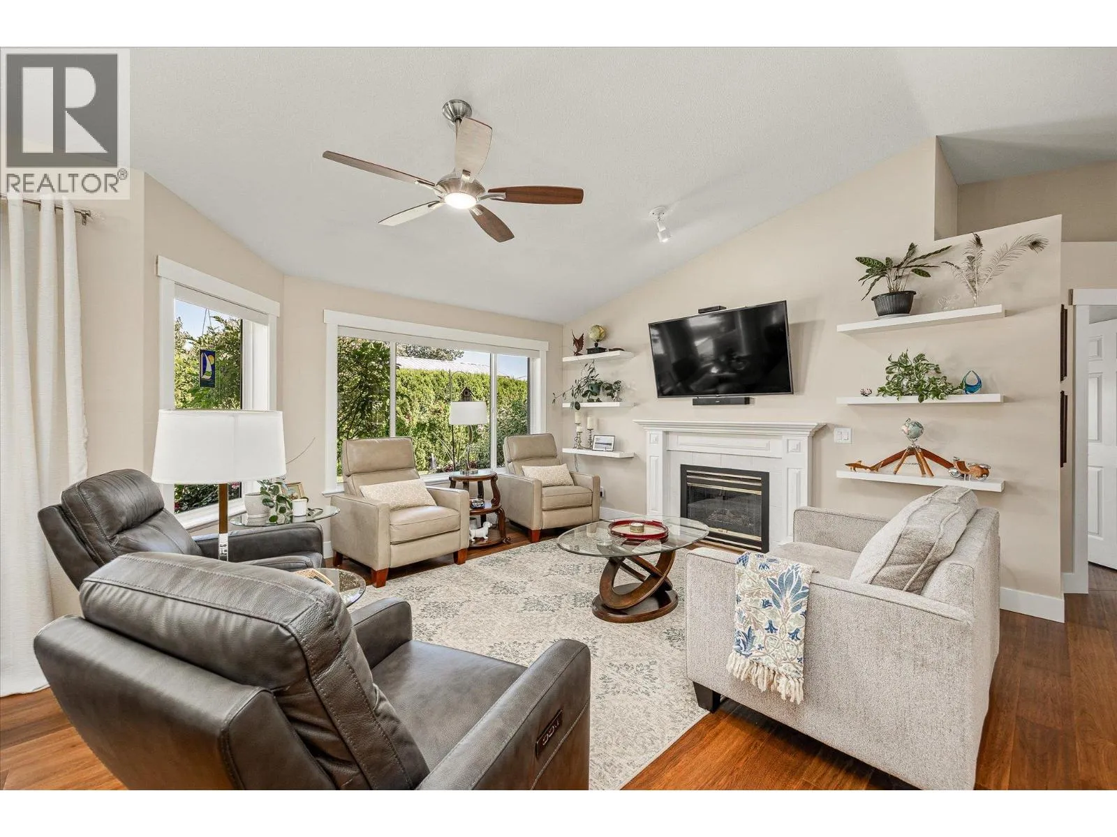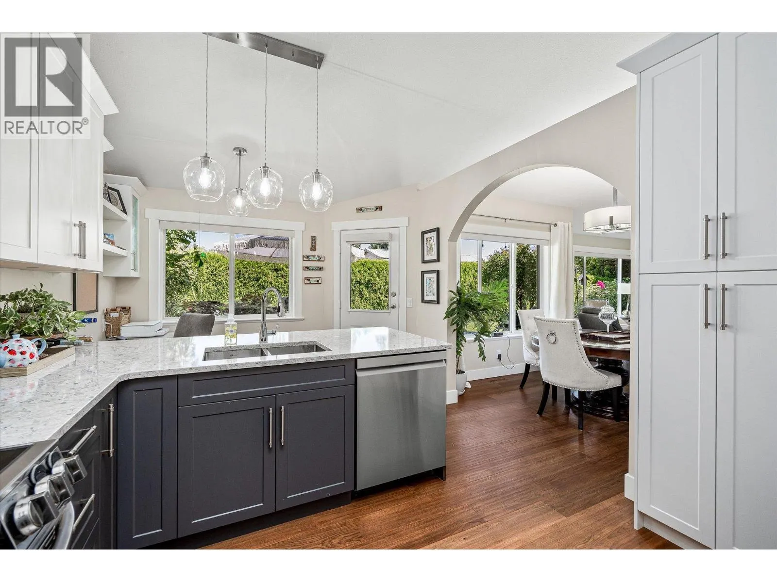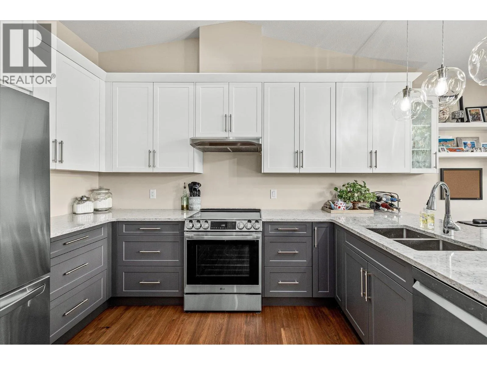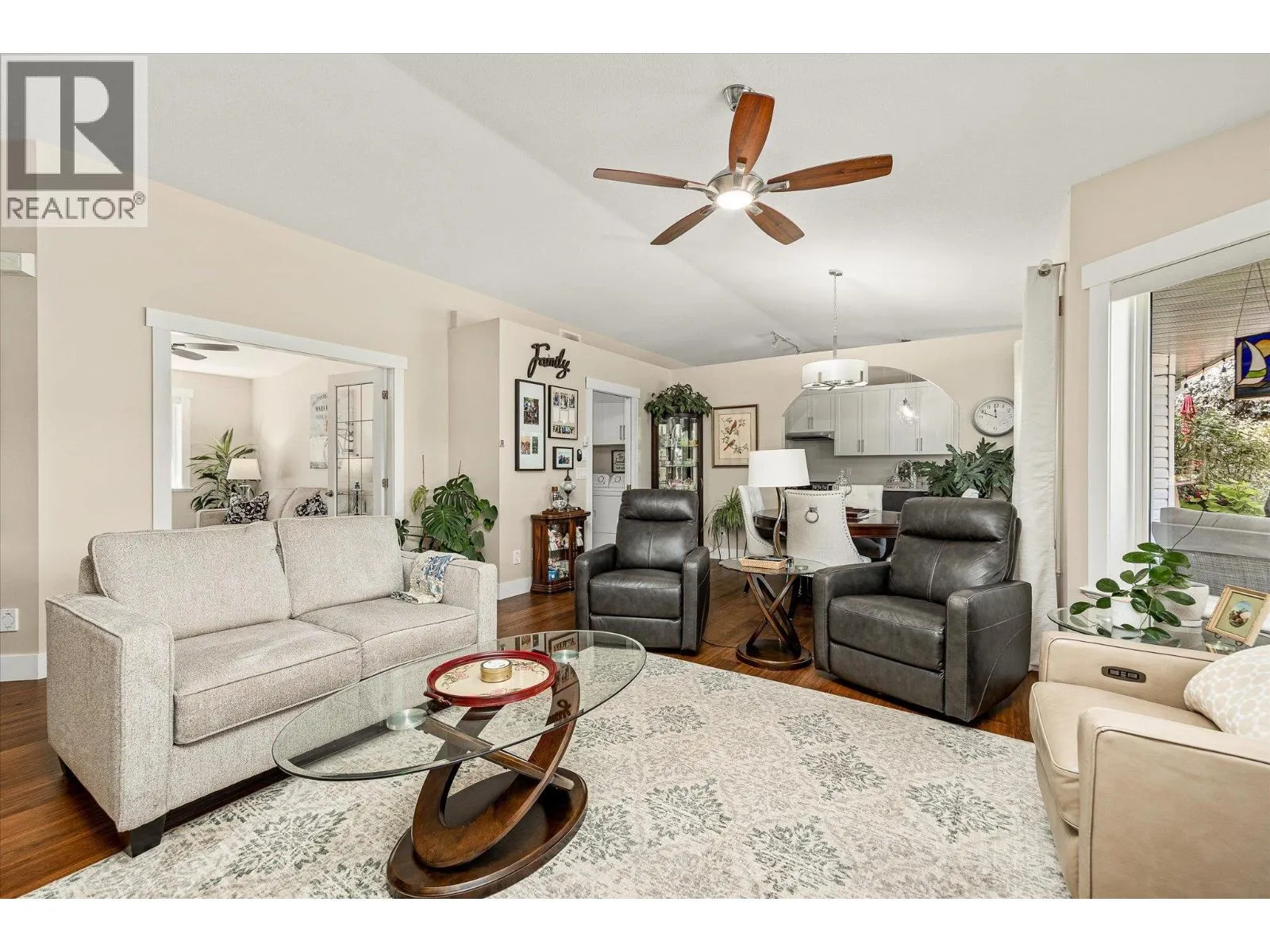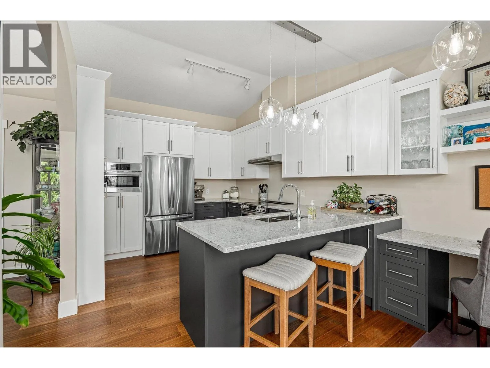Welcome to Cedar Ridge Estates â a serene 55+ community designed for comfort, convenience, and connection. This beautifully renovated rancher-style townhome offers over 1,450 sq. ft. of bright, one-level living in a tranquil, park-like setting. With 2 bedrooms, including a spacious primary with an ensuite, plus an oversized den/flex room, this home provides the perfect blend of functionality and flexibility. Step inside to discover an impressive list of upgrades: new Westwood kitchen cabinets with stone countertops, stainless steel appliances, engineered hardwood flooring, updated bathrooms with modern vanities and fixtures, fresh paint, new baseboards and trim, closet organizers, and stylish window coverings throughout. Thoughtful touches, such as a new Murphy bed in the guest room and built-in garage storage, add to the convenience. Enjoy a double garage, RV/boat storage, and a clubhouse for social gatherings. The community is pet and rental friendly (with restrictions) and offers a true lock-and-leave lifestyle. Ideally located just minutes to world-class wineries, farmersâ markets, golf, hiking and biking trails, pristine lake access, and the city centre, this hidden gem is the perfect place to downsize and embrace the Okanagan lifestyle. Move-in ready and waiting for you! (id:27476)