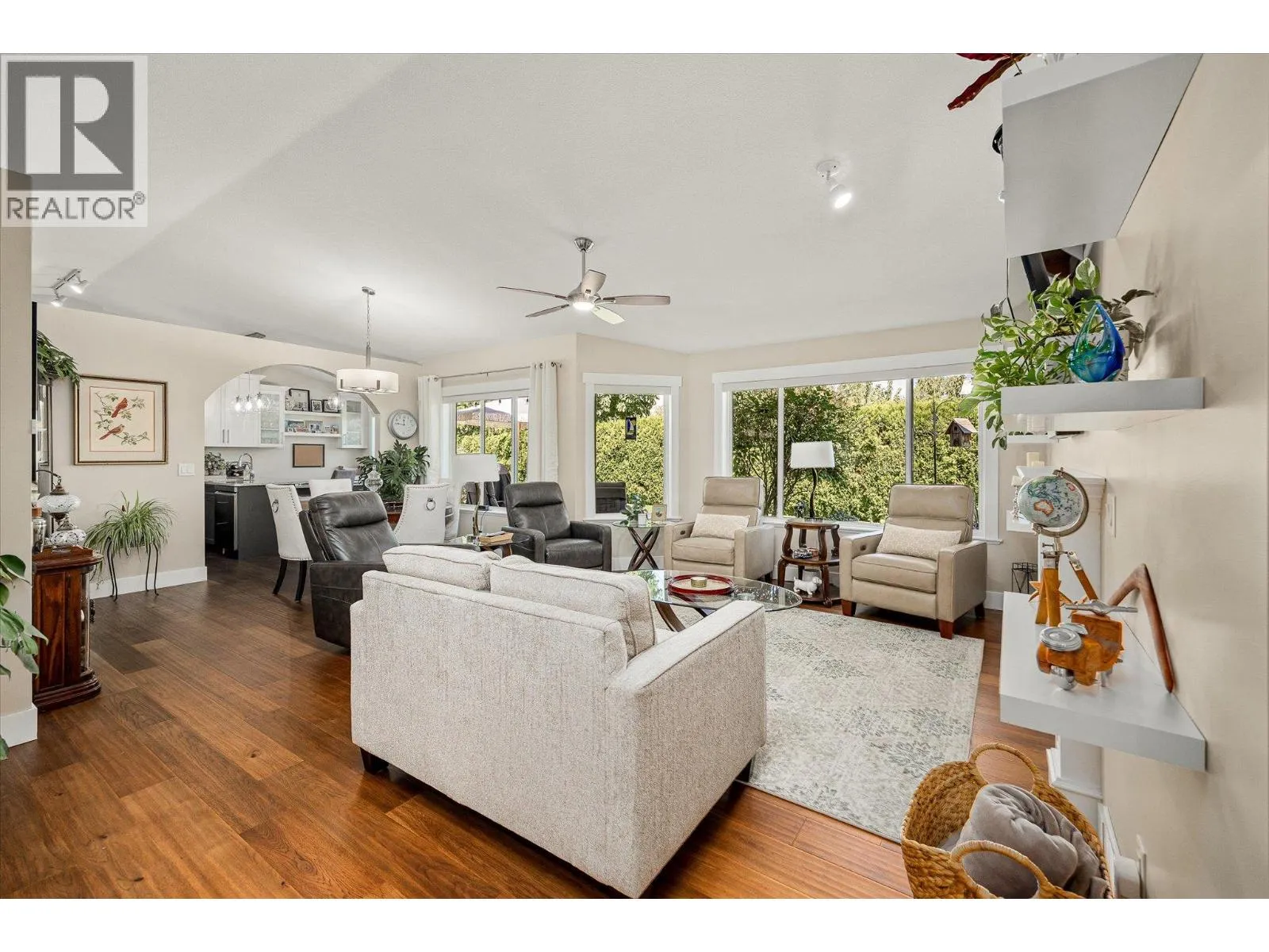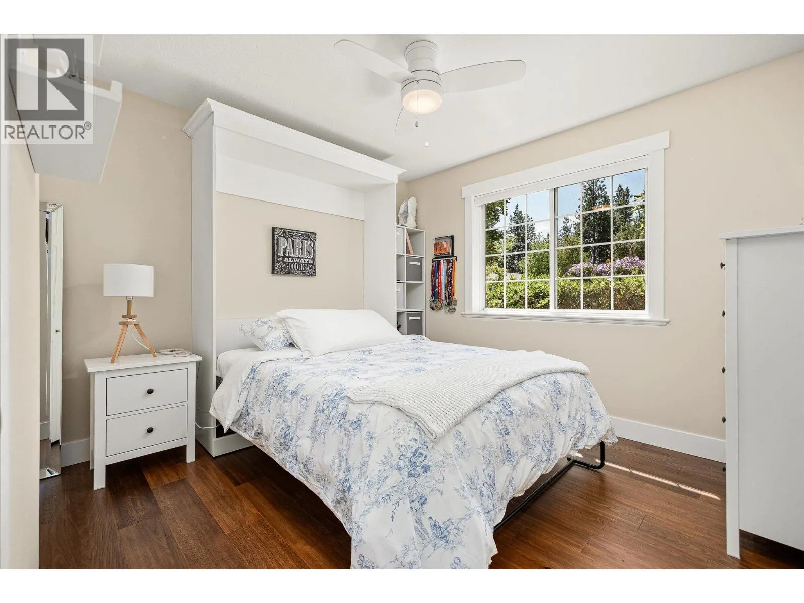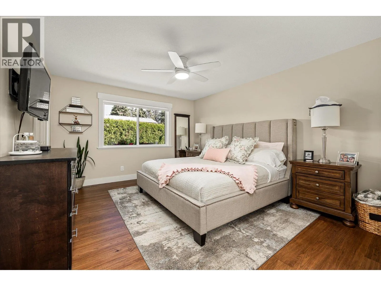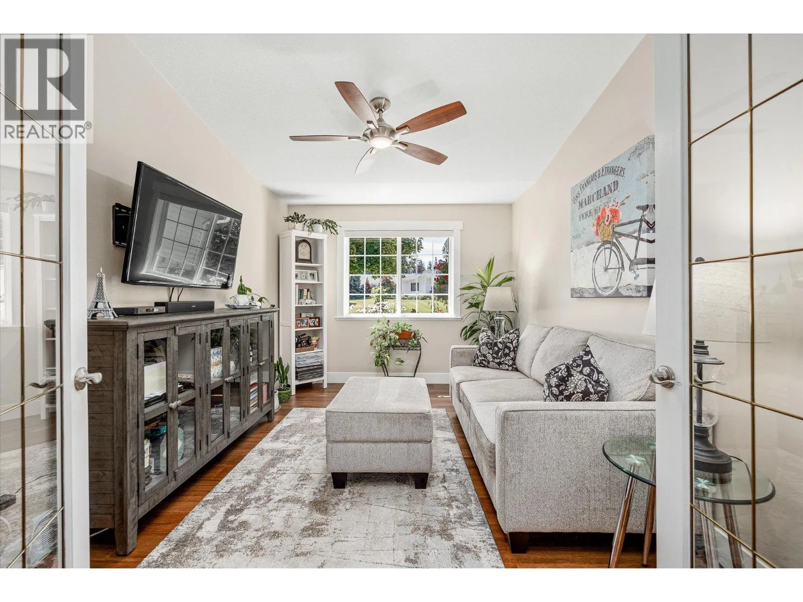 Welcome to Cedar Ridge Estates â a serene 55+ community designed for comfort, convenience, and connection. This beautifully renovated rancher-style townhome offers over 1,450 sq. ft. of bright, one-level living in a tranquil, park-like setting. With 2 bedrooms, including a spacious primary with an ensuite, plus an oversized den/flex room, this home provides the perfect blend of functionality and flexibility. Step inside to discover an impressive list of upgrades: new Westwood kitchen cabinets with stone countertops, stainless steel appliances, engineered hardwood flooring, updated bathrooms with modern vanities and fixtures, fresh paint, new baseboards and trim, closet organizers, and stylish window coverings throughout. Thoughtful touches, such as a new Murphy bed in the guest room and built-in garage storage, add to the convenience. Enjoy a double garage, RV/boat storage, and a clubhouse for social gatherings. The community is pet and rental friendly (with restrictions) and offers a true lock-and-leave lifestyle. Ideally located just minutes to world-class wineries, farmersâ markets, golf, hiking and biking trails, pristine lake access, and the city centre, this hidden gem is the perfect place to downsize and embrace the Okanagan lifestyle. Move-in ready and waiting for you! (id:27476)