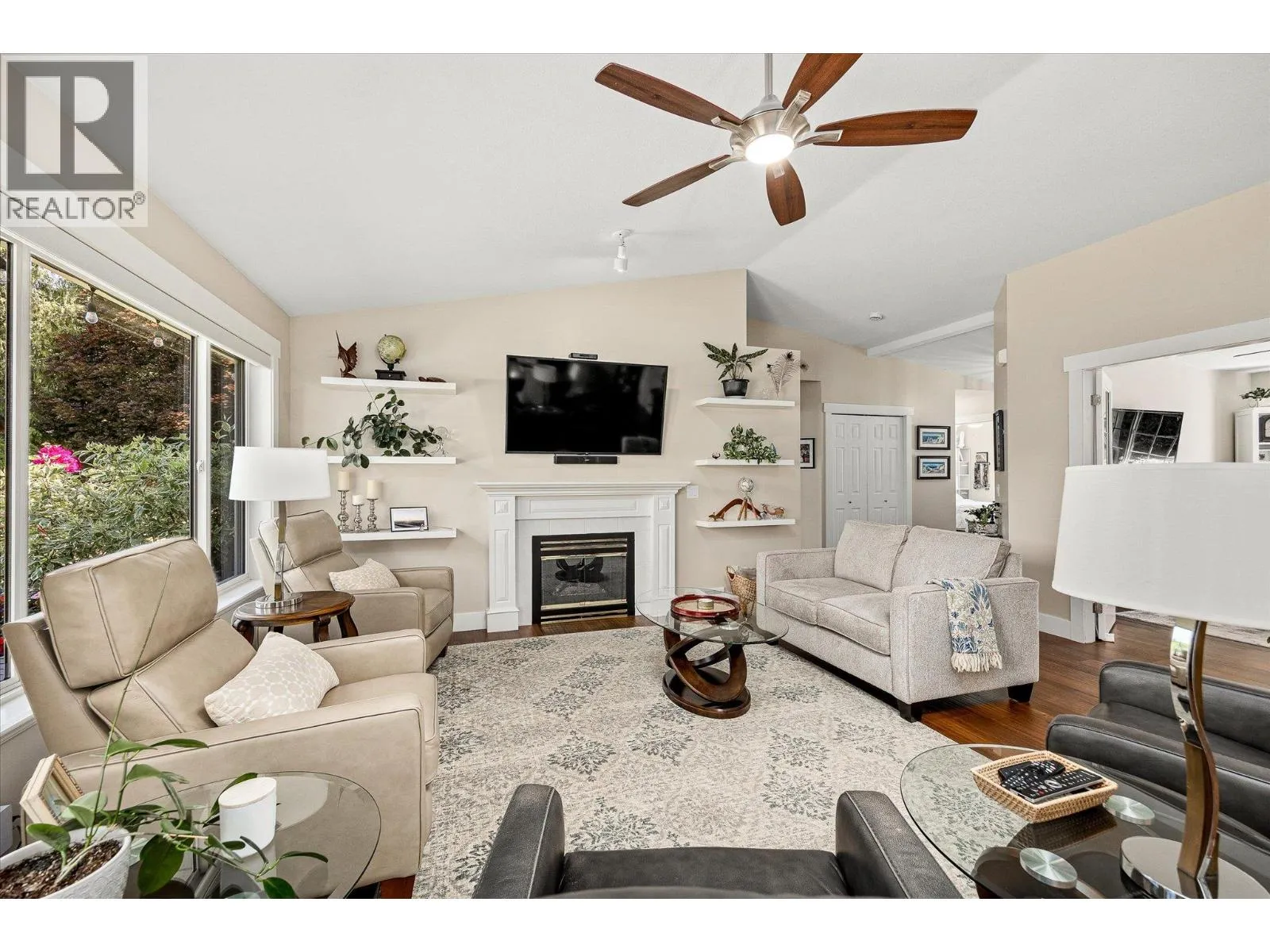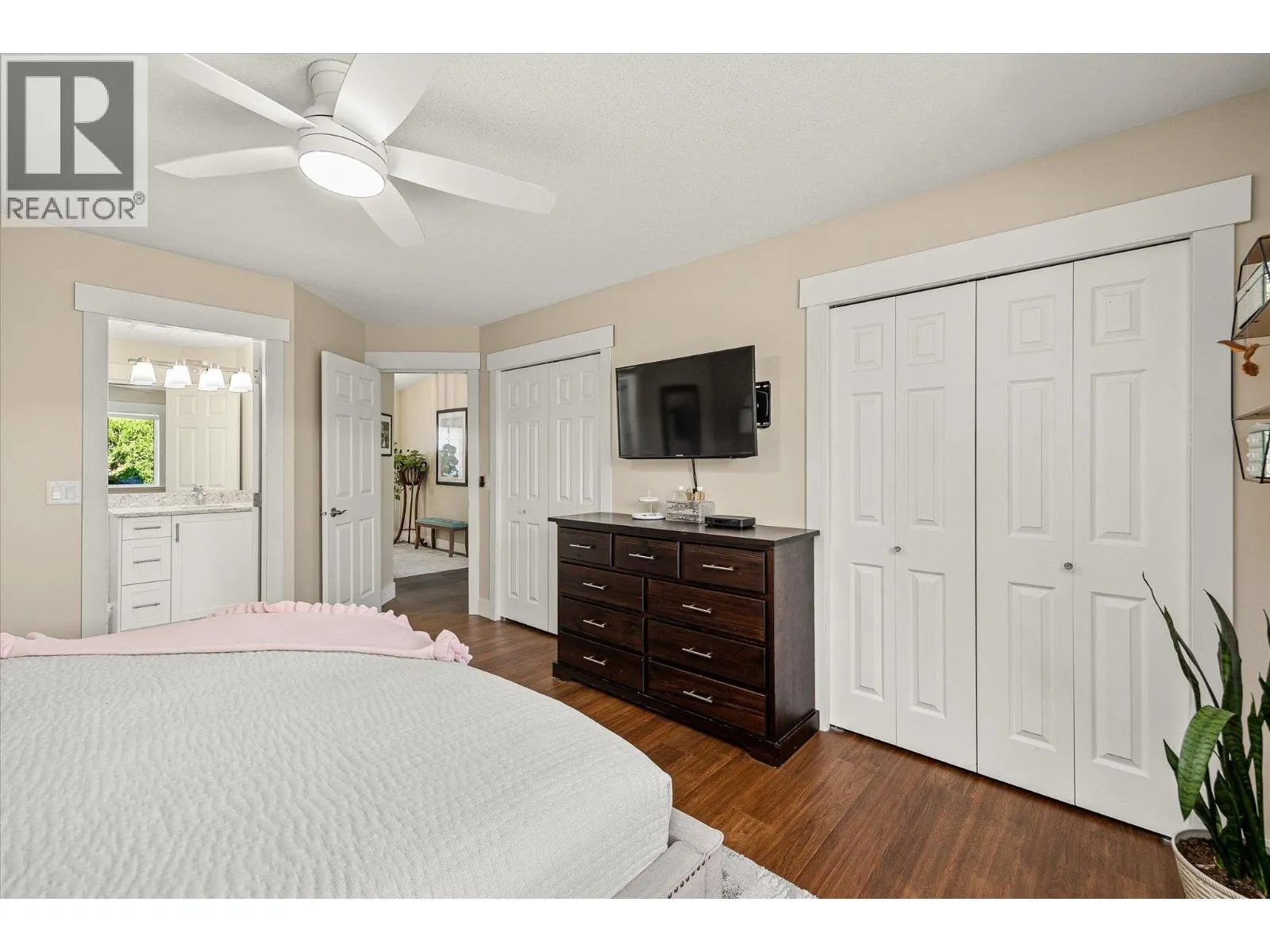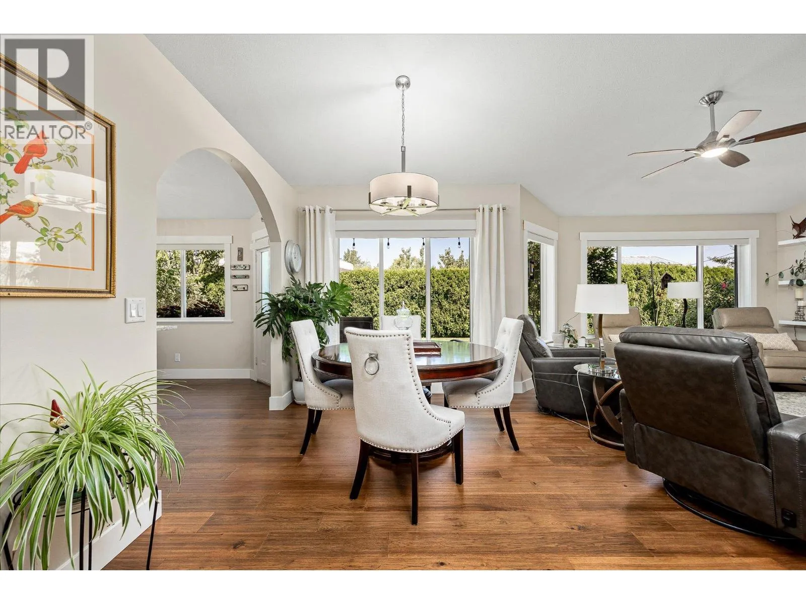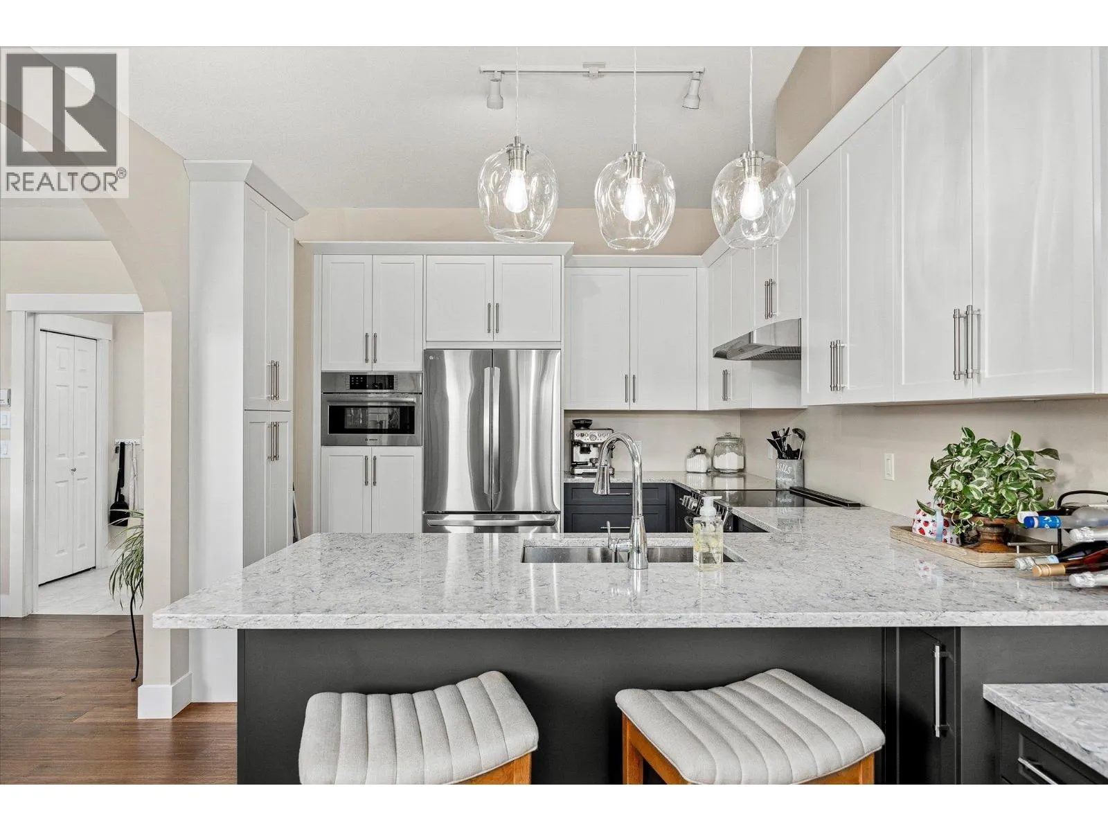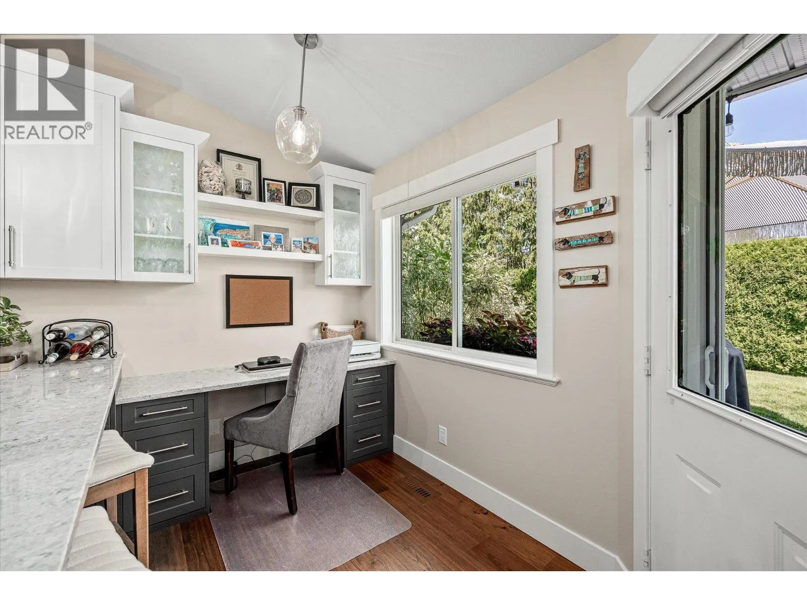 Welcome to Cedar Ridge Estates â a serene 55+ community designed for comfort, convenience, and connection. This beautifully renovated rancher-style townhome offers over 1,450 sq. ft. of bright, one-level living in a tranquil, park-like setting. With 2 bedrooms, including a spacious primary with an ensuite, plus an oversized den/flex room, this home provides the perfect blend of functionality and flexibility. Step inside to discover an impressive list of upgrades: new Westwood kitchen cabinets with stone countertops, stainless steel appliances, engineered hardwood flooring, updated bathrooms with modern vanities and fixtures, fresh paint, new baseboards and trim, closet organizers, and stylish window coverings throughout. Thoughtful touches, such as a new Murphy bed in the guest room and built-in garage storage, add to the convenience. Enjoy a double garage, RV/boat storage, and a clubhouse for social gatherings. The community is pet and rental friendly (with restrictions) and offers a true lock-and-leave lifestyle. Ideally located just minutes to world-class wineries, farmersâ markets, golf, hiking and biking trails, pristine lake access, and the city centre, this hidden gem is the perfect place to downsize and embrace the Okanagan lifestyle. Move-in ready and waiting for you! (id:27476)