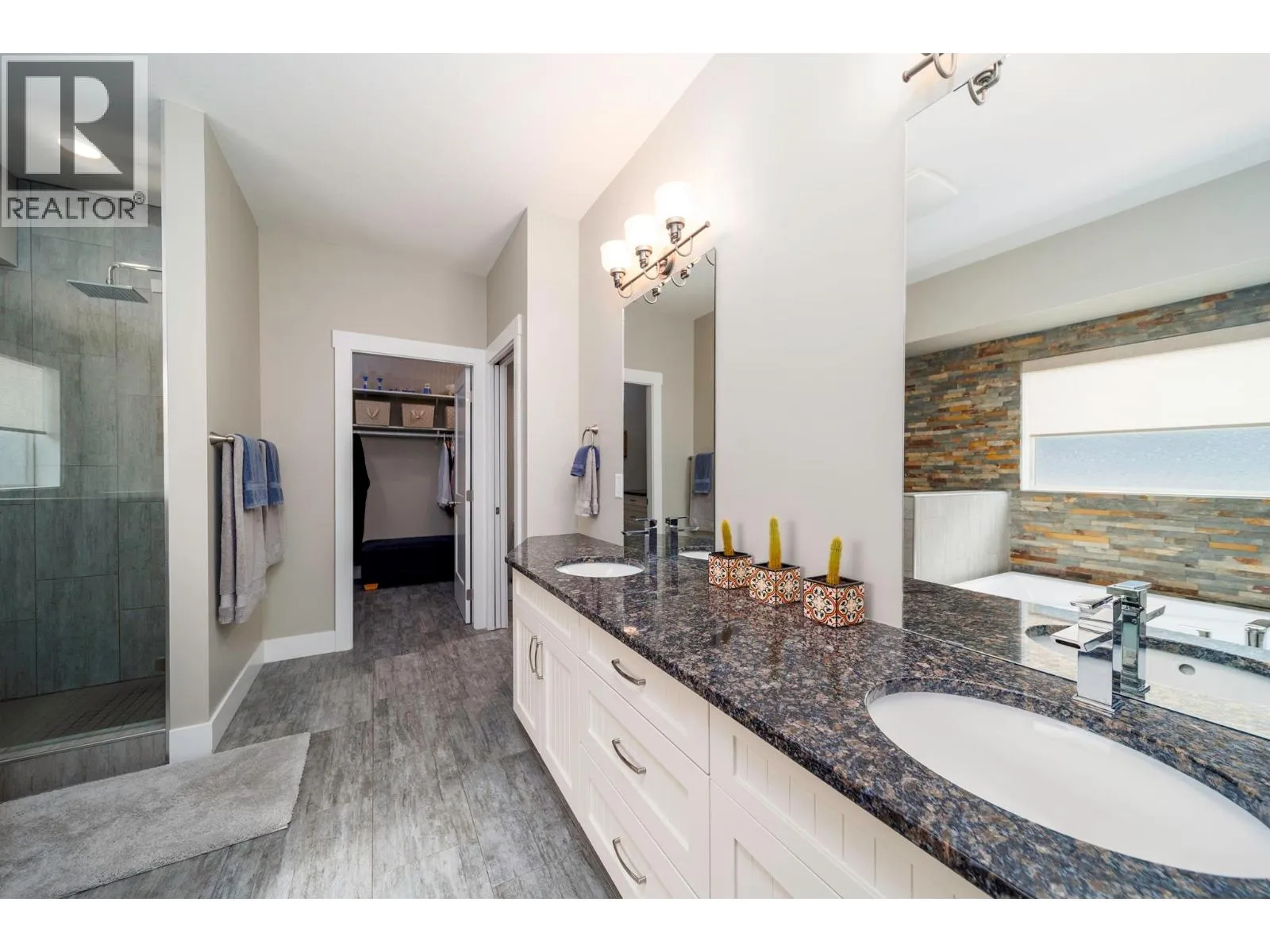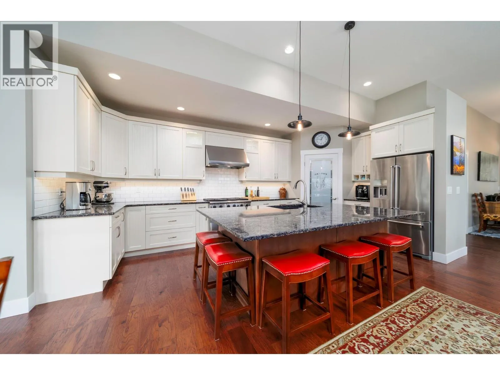 Welcome to an executive retreat in the prestigious Lakes communityâwhere elegance meets everyday comfort! From the moment you step into the soaring 14-foot foyer, this 4-bedroom, 3-bath residence impresses with its space and sophistication. The open-concept design flows seamlessly, highlighted by a custom mantel fireplace and walls of windows that fill the home with natural light. At its heart, the chefâs kitchen is both stylish and functional, featuring a 6-burner gas range, oversized island with breakfast bar, wine fridge, granite countertops, timeless cabinetry, and walk-in pantry. Whether entertaining or enjoying a quiet evening in, the covered patioâcomplete with gas hookupâoffers the perfect setting for outdoor dining or morning coffee. The primary suite is a private sanctuary with deck access, while the spa-inspired ensuite pampers with a soaker tub, rainfall shower, heated floors, dual vanities, and custom walk-in closet. The walk-out basement is designed for relaxation and entertainment, boasting a spacious rec room, two additional bedrooms, full bath, and flexible space for office or storage. Outside, low-maintenance xeriscaping blends beauty with function, featuring drought-tolerant plantings that enhance privacy and appeal. Evenings can be enjoyed fireside with family and friends, while the freshly landscaped front yard ensures lasting curb appeal. Additional features include a double garage with convenient access to the laundry room. (id:27476)