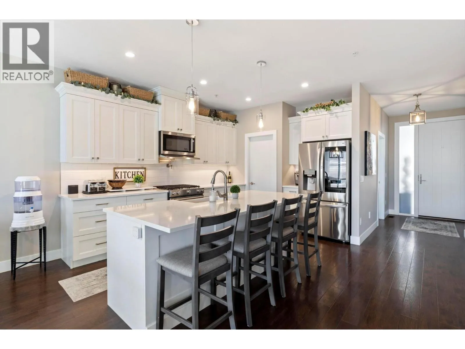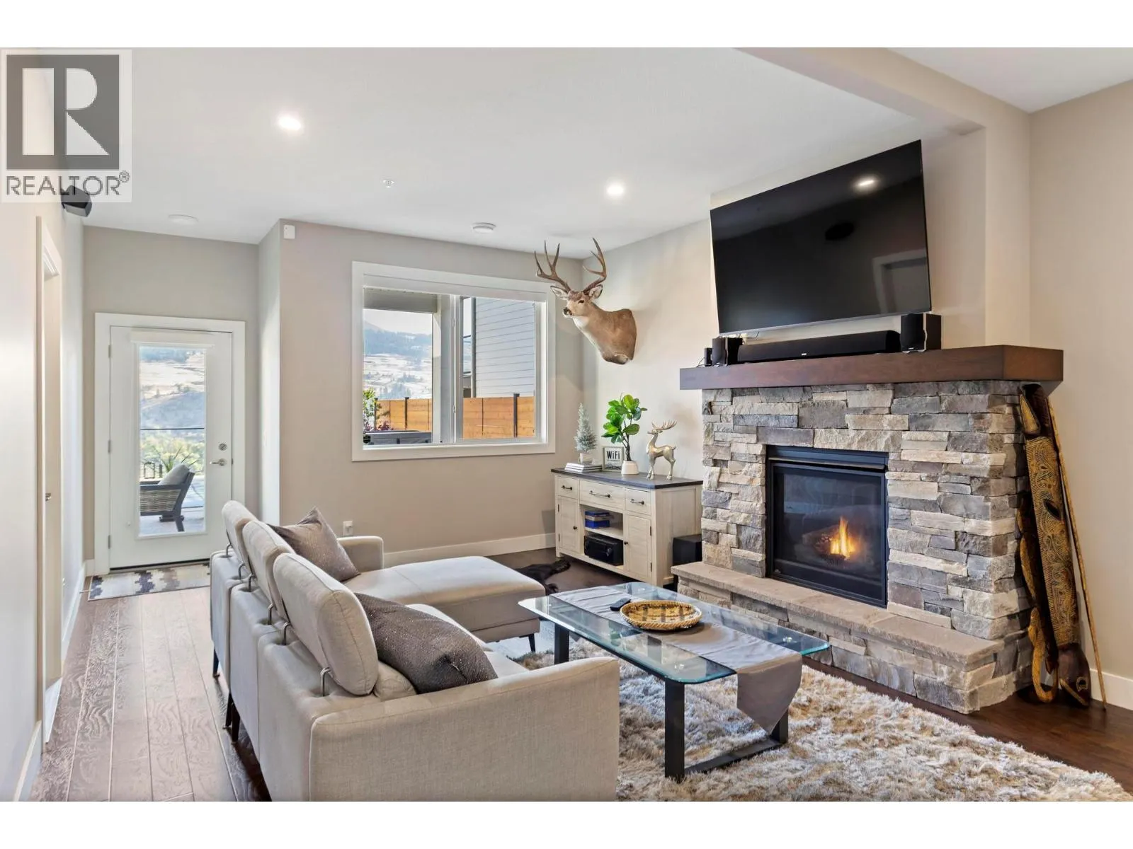 This stunning Lake Country home delivers it all â a 2-bedroom legal suite with proven Airbnb income, breathtaking lake and valley views, and a resort-style backyard oasis that defines the Okanagan dream. Offering over 3,040 sq ft of modern living, this 6 beds and 4 baths 2019-built walkout rancher blends elegance and flexibility for families and investors alike. The bright, open-concept main level showcases soaring ceilings, quartz countertops, hardwood floors, and a double-sided fireplace shared between the living room and primary suiteâwarmth and sophistication in perfect balance. The chefâs kitchen features stainless steel appliances, a large island, and seamless flow to the expansive upper deck, where youâll enjoy incredible lake and valley viewsâthe perfect spot for morning coffee or evening wine. Step outside to pure luxury: over $250,000 invested in a complete backyard transformation featuring a heated saltwater pool, hot tub, and three firepits across multiple tiersâincluding a lower yard with an intimate firepit lounge. All surrounded by professional landscaping and ambient lighting for unforgettable evenings. Downstairs, the beautifully finished 2-bedroom legal suite offers exceptional flexibilityâoperate it as a lucrative Airbnb or provide comfortable extended-family living. With RV and boat parking, an epoxy-finished garage, and the option to purchase fully furnished, this home captures everything the Okanagan lifestyle promises! (id:27476)