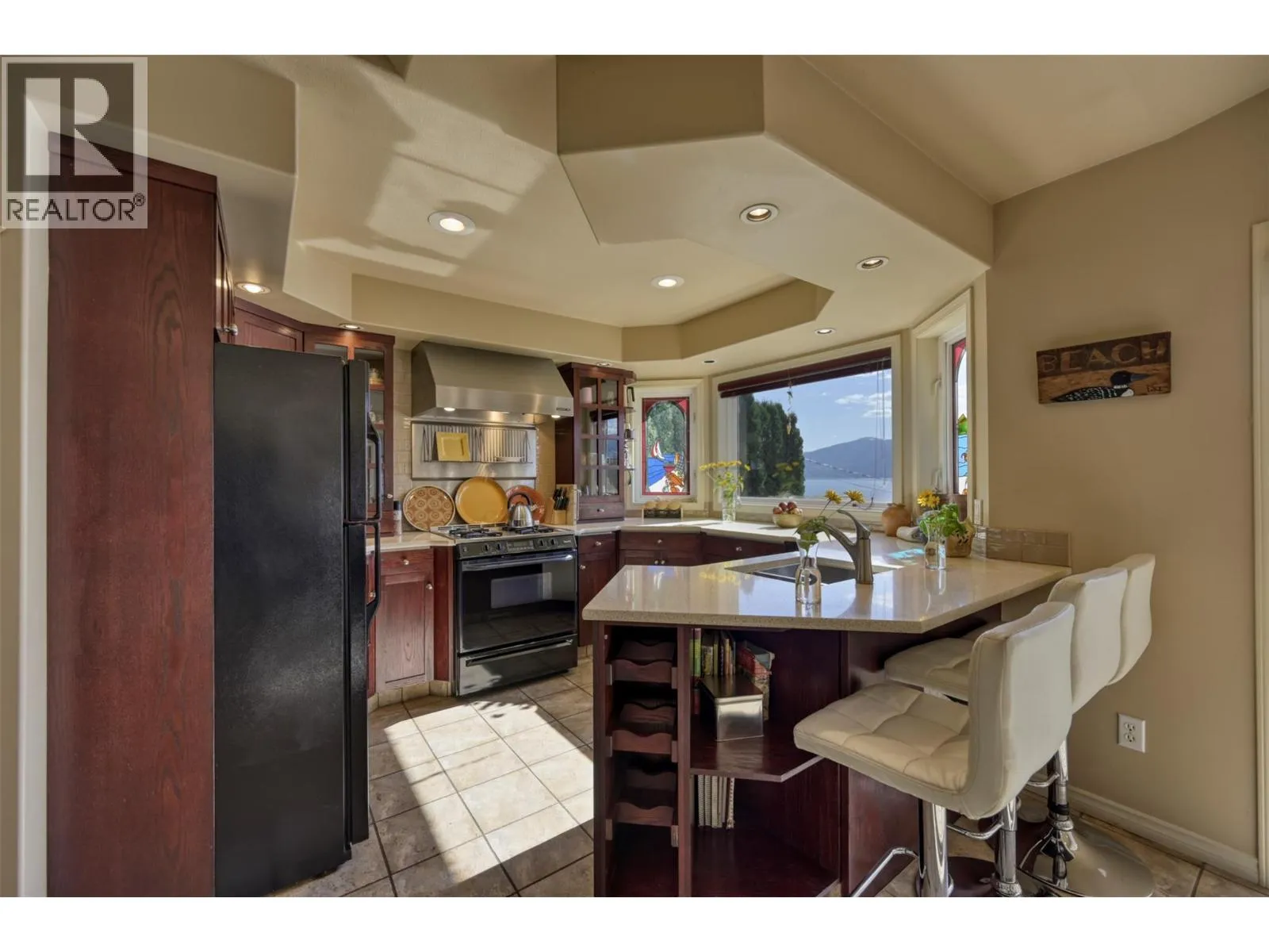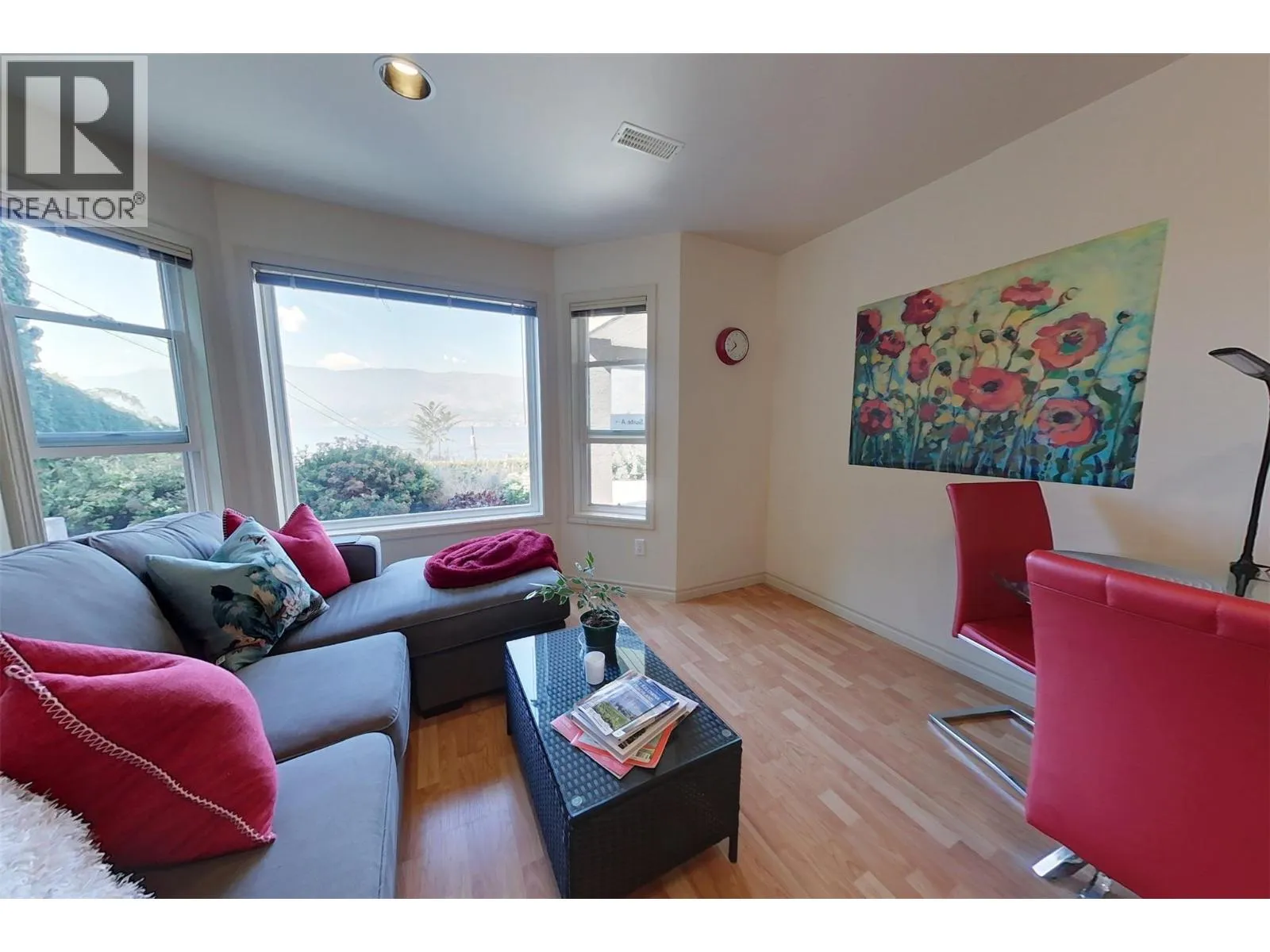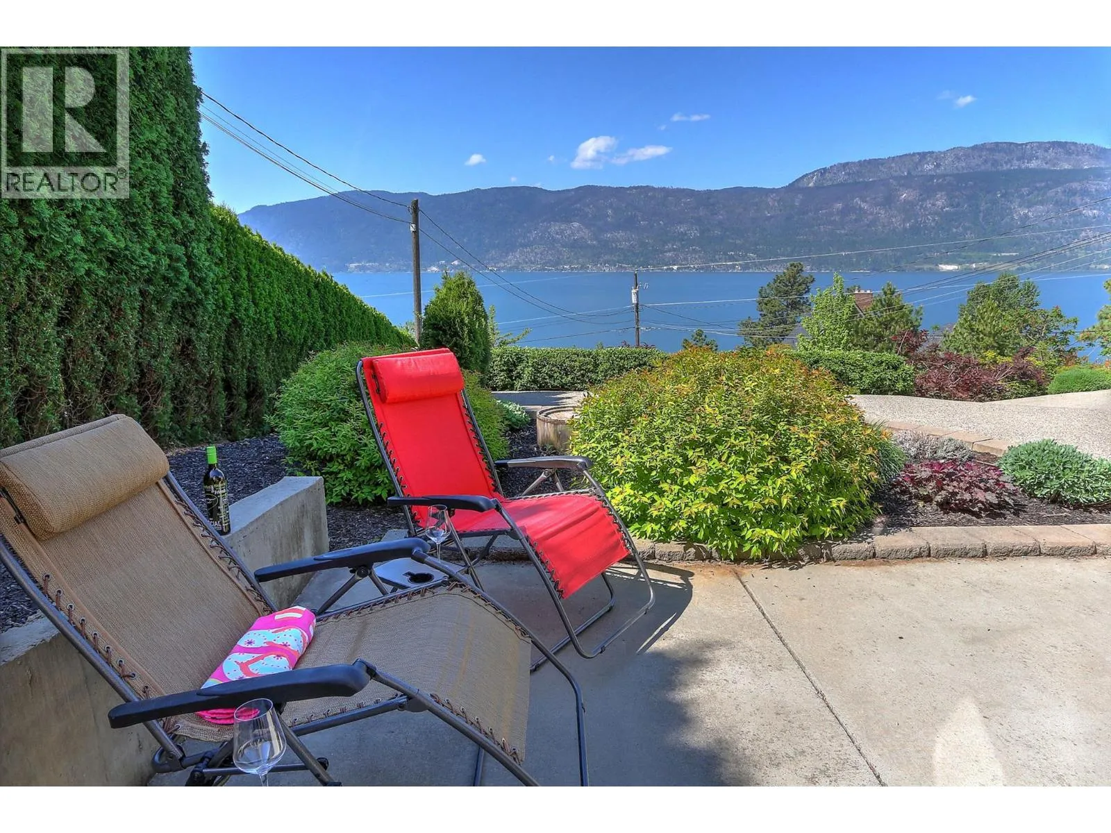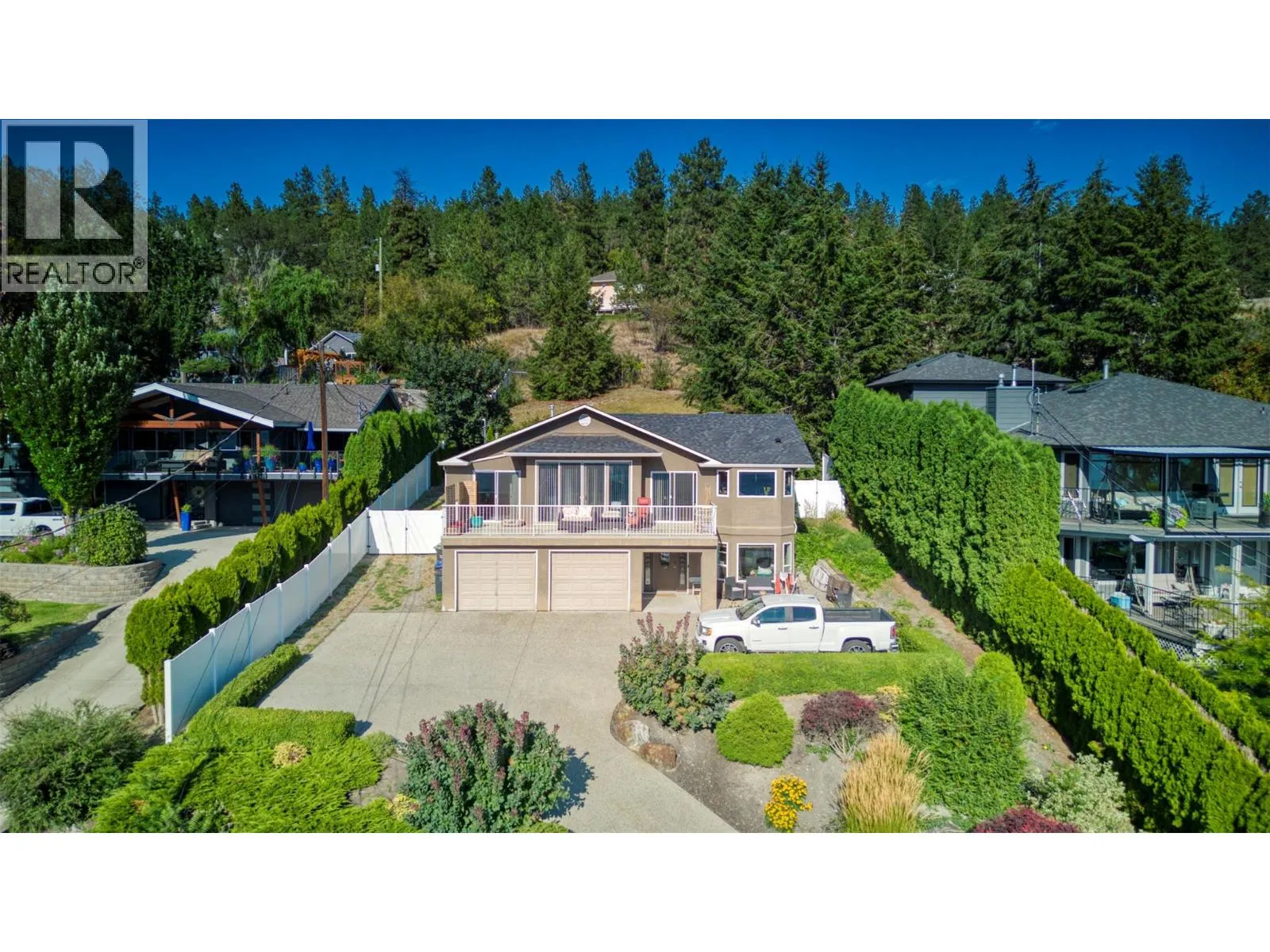 Lakeside Living with Stellar Views. Experience the unparalleled beauty and wholesome lifestyle of Okanagan Lake in this turn-key, revenue-generating property. Directly across from the waterfront and a regional district park, this home offers amazing 180 degree panoramic lake views. High-end sales in the immediate area confirm the exceptional value of this sought-after cul-de-sac location, steeped in the nostalgia of ""Pixie Beach."" This primary residence features an open concept living space with two bedrooms on the main level, both with private ensuites. A versatile den/office includes a built-in Murphy bed. The property sits on a .33 acre lot with a large, private fenced yard, offering low-maintenance landscaping and underground irrigation. Practical features include a two-car garage, a rough-in for a gas washer/dryer in the pantry, and a rough-in for a fourth bathroom in the laundry room. It comes ready to move in with all furniture available and appliances included. A bright, grade-level, legal, one bedroom suite with high ceilings offers significant revenue generation, featuring its own separate entrance, private laundry, and dedicated parking space. Embrace an active, peaceful lifestyle with an abundance of nearby amenities and recreation. You're a two minute walk to regional district beach access. Enjoy world-class golf/Indoor Tennis Pickleball at Predator Ridge (20 mins), skiing and mountain biking at Silver Star Mountain (40-60 minutes), or miles of riding on the Rail Trail along Wood and Kalamalka Lakes. Hiking is easily accessible on Spion Kop, and a world-class yoga studio, Invati, is nearby at Turtle Bay. All essential amenities, including Starbucks and a pharmacy, are close by at Turtle Bay Landing. Savour local fare with fruit stands (including the best peaches in the valley) and several wineries within walking distance. This is fantastic lakeside living at its finest. Don't miss this opportunity for a beautiful view home with income. Discover! (id:27476)