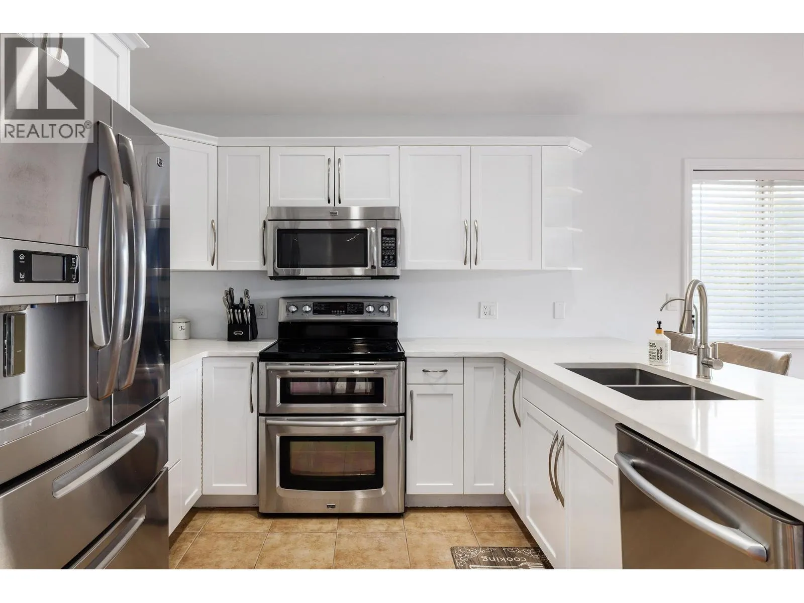 The ideal first home with income potential. Set in the heart of Lake Country, this bright & beautifully maintained home features a flexible 5-bedroom layout with a self-contained 2-bedroom suite perfect for first-time buyers seeking a mortgage helper or families needing space for extended or visiting family. The main level offers three bedrooms on one floor, a spacious open-concept design with vaulted ceilings, & mountain views. A gas fireplace centers the living room, flowing seamlessly into the dining area & a freshly updated kitchen with repainted white shaker cabinetry, granite countertops, stainless steel appliances, & a breakfast peninsula ideal for casual dining. Step outside to the covered deck to enjoy morning coffee or sunsets overlooking the landscaped yard. The primary suite includes a walk-in closet & 4-piece ensuite, while two additional bedrooms & a full bath complete the level. The bright lower-level suite offers a separate entrance, full kitchen, dining area, cozy gas fireplace, & direct walkout to a covered patio & fenced backyard. Recent updates include fresh paint , refinished kitchen cabinets and new carpet, ensuring a move-in-ready home with nothing left to do. Additional features include two laundry areas, ample storage, a double garage with built-in shelving, & RV/boat parking. Located in a peaceful Lake Country community near schools, shops, trails and wineries, this home perfectly blends comfort, versatility, & long-term value. (id:27476)