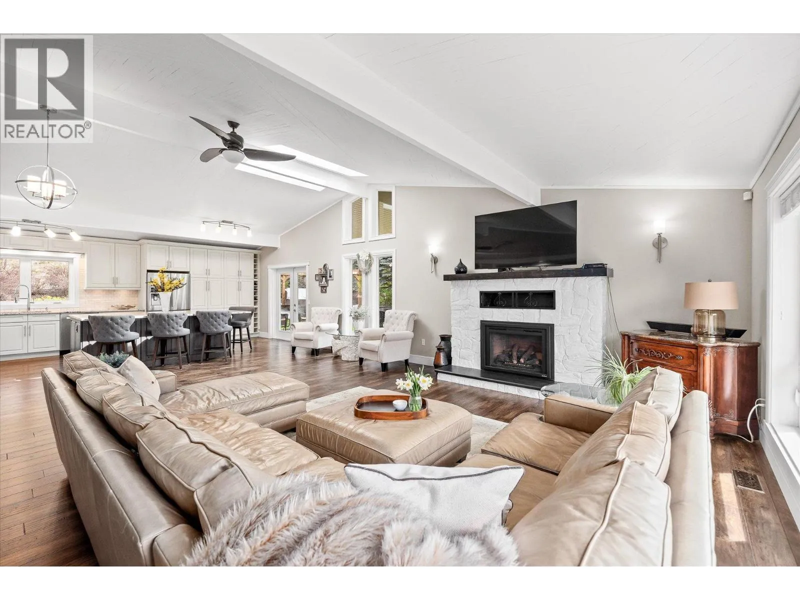A rare chance to own a fully renovated home on over 11 acres, perfectly combining polished design with everyday functionality. The property backs onto crown land and offers the potential to purchase up to three adjoining five acre parcels, opening the door to a much larger private compound. Inside, the home has been reimagined into a modern rancher with basement, featuring vaulted ceilings that flood the space with natural light. The kitchen is a true standoutâbright and functional, with clean white cabinetry and plenty of counter and storage space. It flows effortlessly into the main living area, creating a layout thatâs intuitive and great for both gatherings and day-to-day life. The central living space feels grounded yet open, anchored by a fireplace and large windows that bring the outside in. Two sizeable shops are already built and ready for use, with ample parking and access for trailers, toys, or heavy equipment. The property itself is gated, landscaped, and offers excellent privacy without sacrificing access to amenities. Just minutes away is OâRourkeâs new wineryâset to become one of the most iconic destinations in the countryâalong with Coral Beach, 50th Parallel Winery, Predator Ridge, and the waterfront. Vernon, Kelowna, and the airport are all within a 20-minute radius. Acreages with this level of finish, usable land, and future potential donât come up often, especially in a location this central. (id:27476)