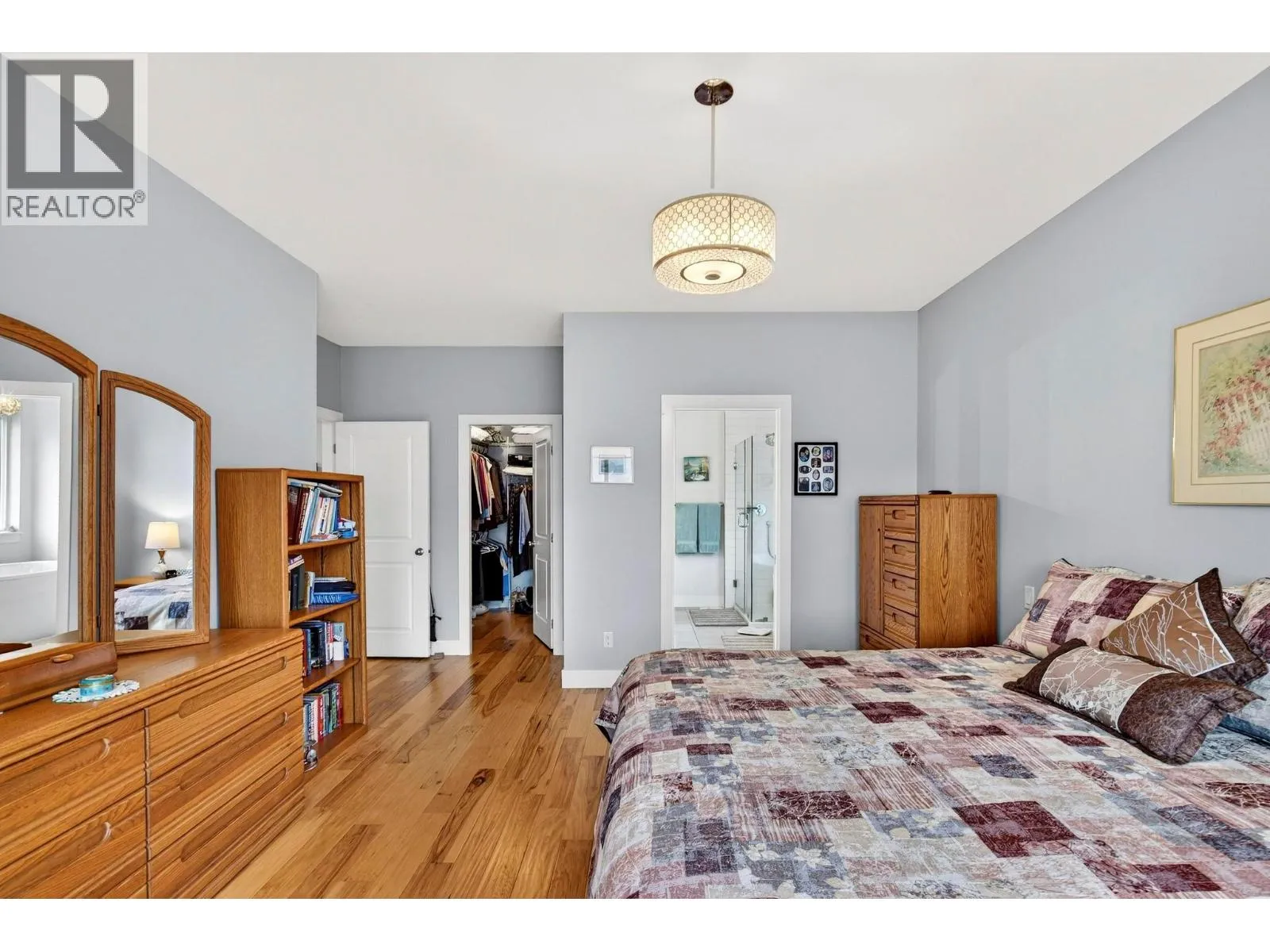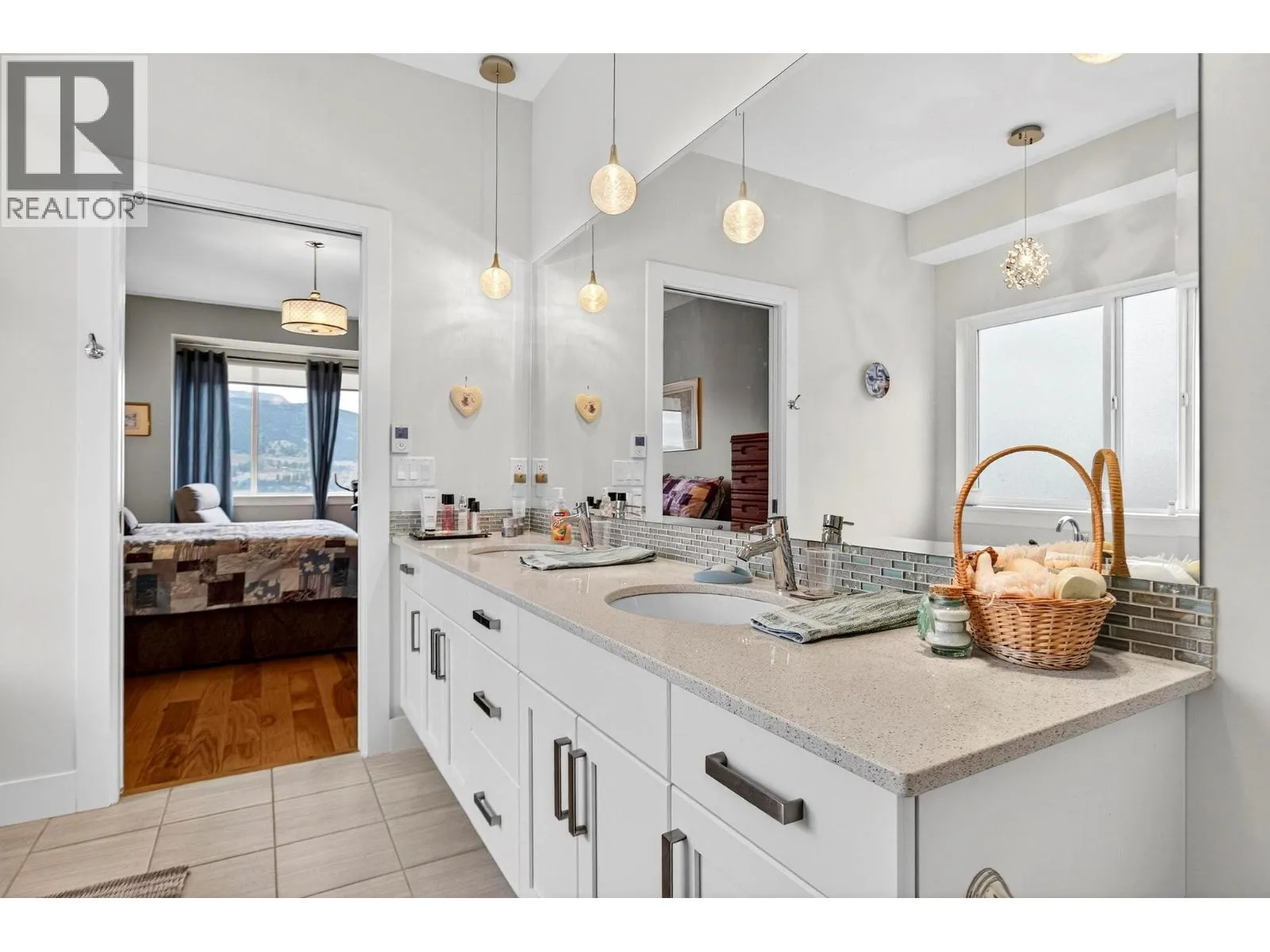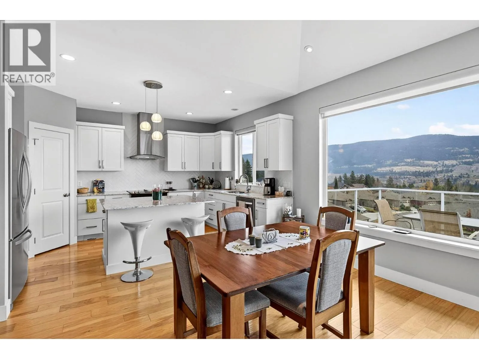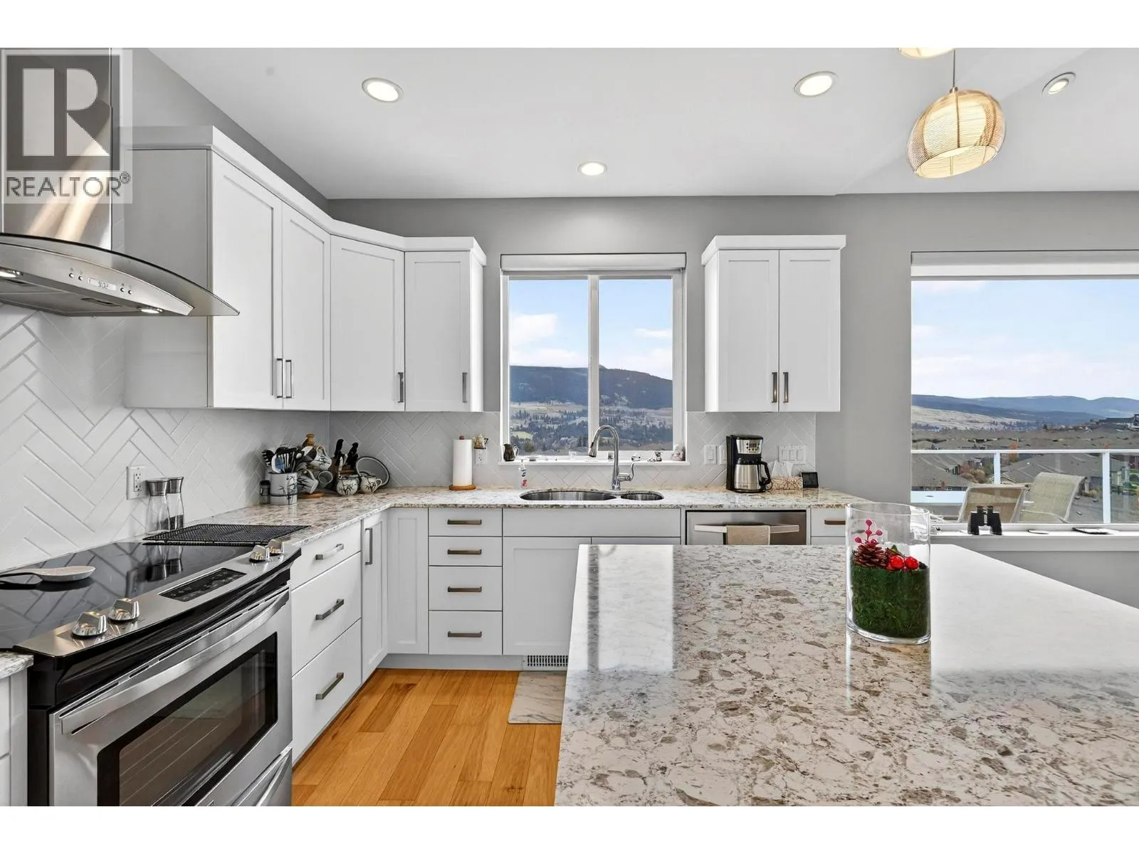 Welcome to THE LAKES, one of Lake Countryâs most desirable neighbourhoods. This well-kept walkout rancher on sought-after Lake Hill Drive offers lovely valley views and a bright, comfortable layout ideal for families. The main level features 2 bedrooms and 2 full bathrooms, including a spacious primary suite with a soaker tub, separate shower, double vanities, and heated tile floors. The open-concept main living area is designed for everyday comfort, with a functional kitchen offering a center island with seating, stainless steel appliances, and plenty of cabinet space. The dining area opens directly onto a large, sun-filled patio, perfect for summer BBQs and outdoor entertaining. The walkout lower level adds excellent flexibility with 2 additional bedrooms, a full bathroom, and generous family/rec space, and workshopâideal for guests, teenagers, hobbies, or a media room. Easily suitable. Additional features include ample storage, a double garage, and easy access to nearby parks, walking trails, and the conveniences of Lake Country. (id:27476)