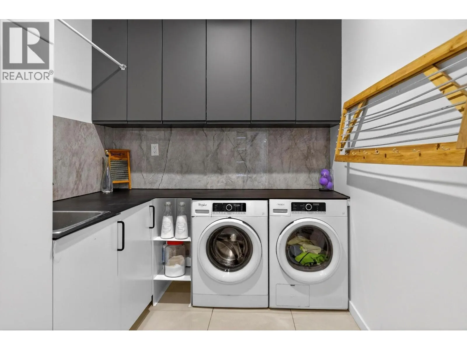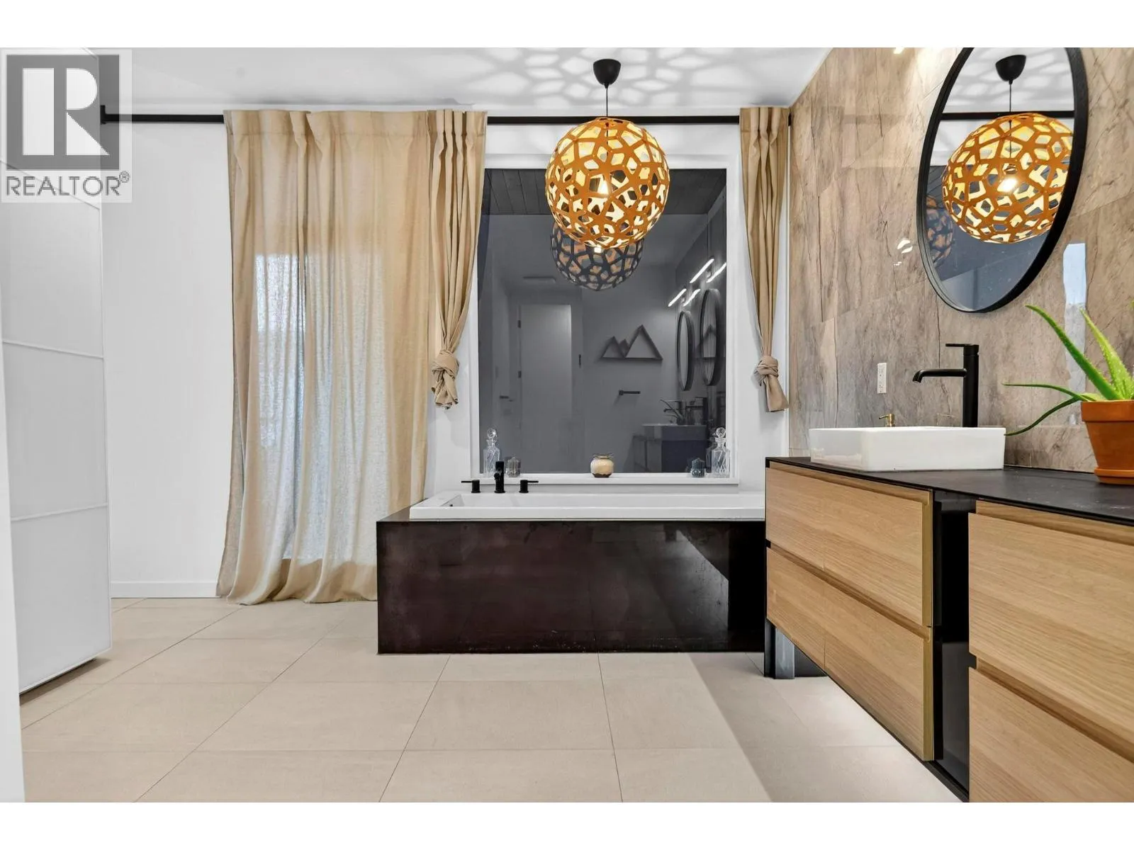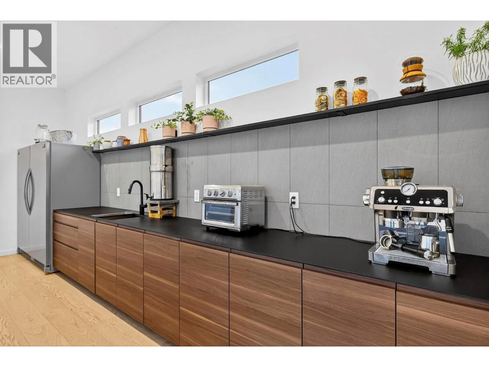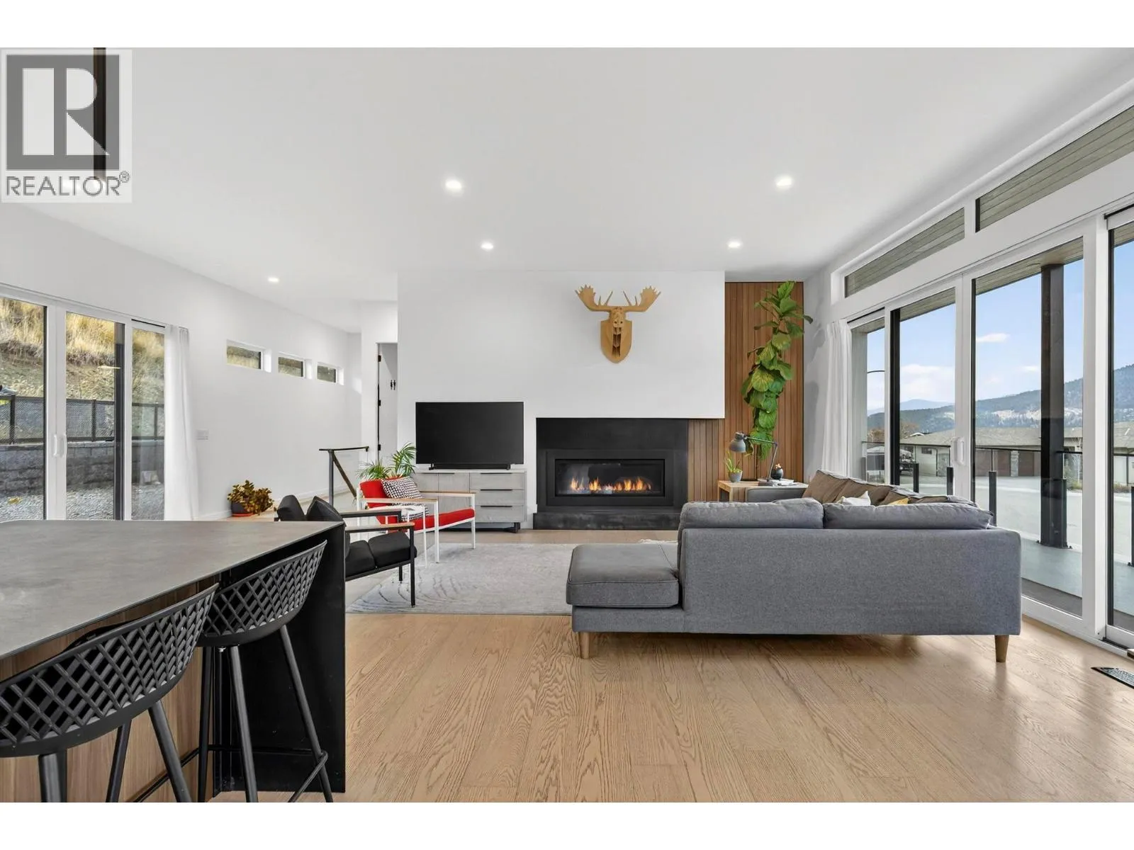 A designerâs dream with show-stopping lake views, this modern 3,000 SQ FT masterpiece sits in the heart of Oyama - one of the Okanaganâs most coveted lake communities. Just a 3-minute walk to Kaloya Park and Kalamalka Lake, youâre steps from beaches, trails, and endless recreation. Surrounded by both Wood & Kal Lake and close to local favourites like Oyama General Store, Pane Vino, Gatzke Orchard, and Folktale Cidery, this location delivers the ultimate Okanagan lifestyle. Inside, luxury and intention take centre stage. 10 ft ceilings, oversized sliding patio doors, and architectural detailing create natural light and flow throughout. The gourmet kitchen features custom steel countertops and a full butlerâs pantry, opening into an airy main living space with seamless indoor-outdoor connection. The home offers 3 bedrooms + office and 3 full bathrooms, including a stunning primary suite with heated bathroom floors and an acoustic-treated ceiling - designed for both comfort and calm. Sitting on a rare, flat 12,000 SQ FT double lot, the outdoor potential is unmatched. Enjoy a level walk-out yard from the main floor with room for a pool and 1,000 SQ FT of wrapped patio space spanning three sides of the home. Additional features include a 900+ SQ FT triple garage with extended bay (perfect for a boat or full-size truck), split-zone heating and cooling, cedar soffits, retaining walls, and sliding exterior doors in every bedroom. Modern Okanagan livingâelevated in every way. (id:27476)