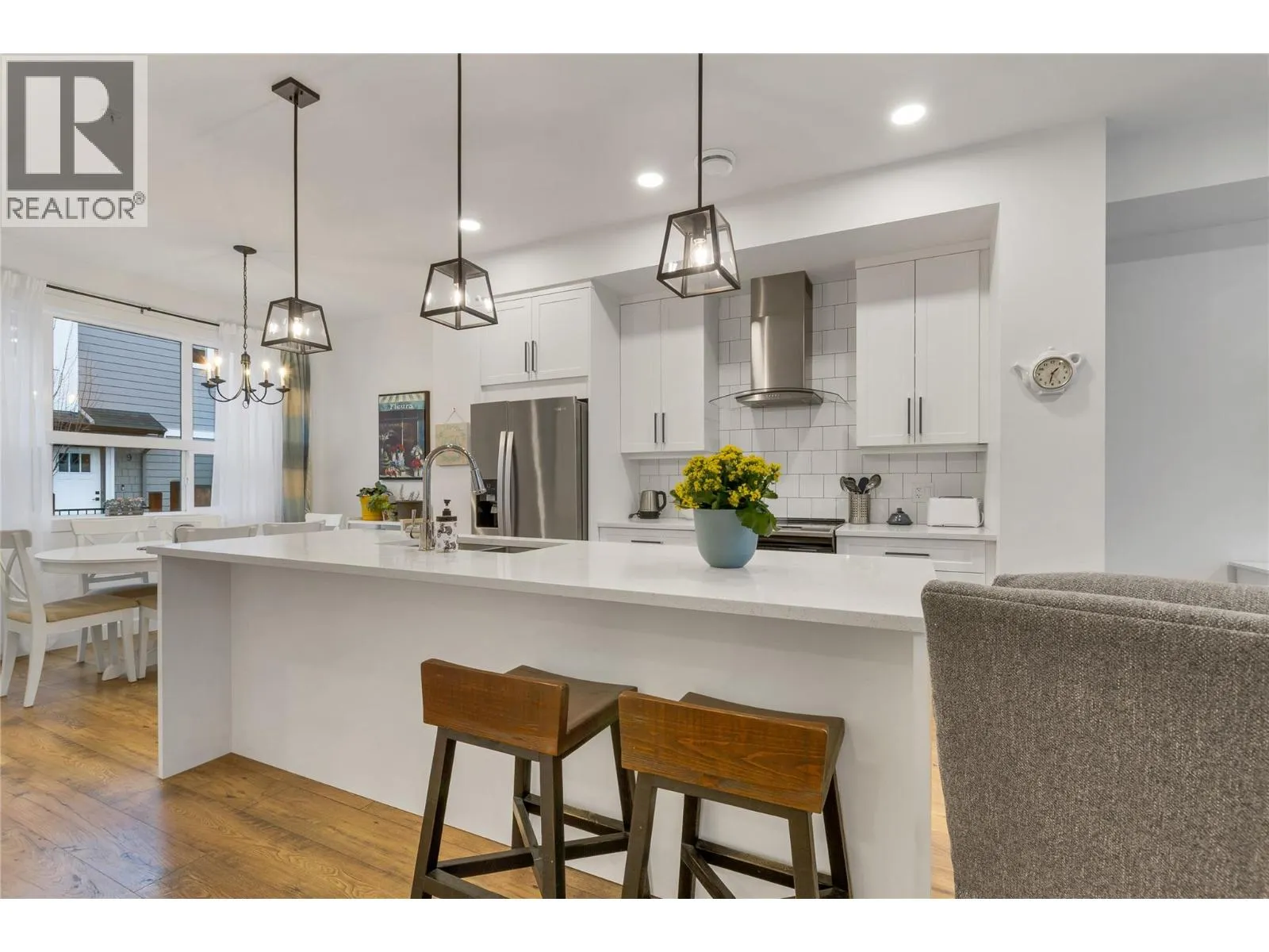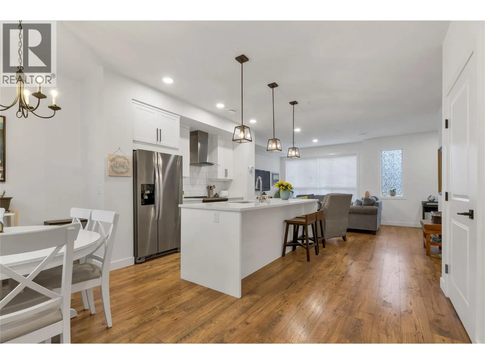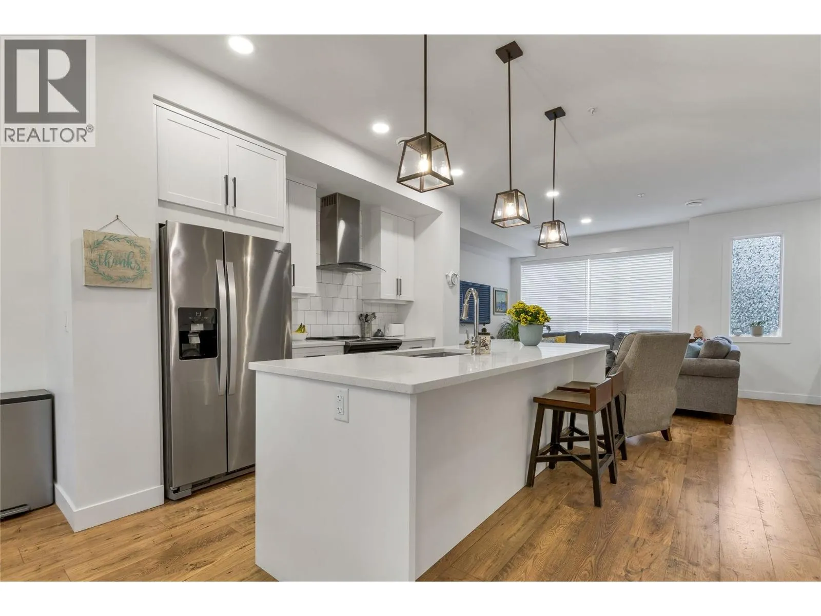 This bright end unit townhome offers an exceptional blend of space, comfort, and convenience in the heart of Lake Country, and is being offered under assessed value. Featuring three bedrooms plus a den and three bathrooms, this modern home is perfect for anyone looking for quality and comfort in a fantastic community. Located in the desirable Oceola Landing, you will enjoy being within walking distance to Wood Lake, local shopping, and several nearby wineries. Okanagan Lake, Wood Lake, and Kal Lake are all just minutes away, providing endless opportunities for recreation throughout the year. The location also offers quick access to both Kelowna and Vernon, only 20 and 15 minutes away, as well as a short 15 minute commute to UBCO and Kelowna International Airport. Quality features include Hardie board siding, full concrete walls between units for enhanced soundproofing and privacy, quartz counters and a ceiling sprinkler system for added safety. Outdoors, the fenced patio provides a private space to relax or entertain. Parking is abundant with a double car garage plus two additional driveway parking spots. Oceola Landing is pet friendly, allowing two furry friends with no size or breed restrictions, and is just a two minute drive from the Pelmewash Parkway dog beach, a fantastic bonus for pet owners. With its outstanding location, thoughtful design, and impressive list of features, this townhome presents a wonderful opportunity to settle into the Lake Country lifestyle. (id:27476)