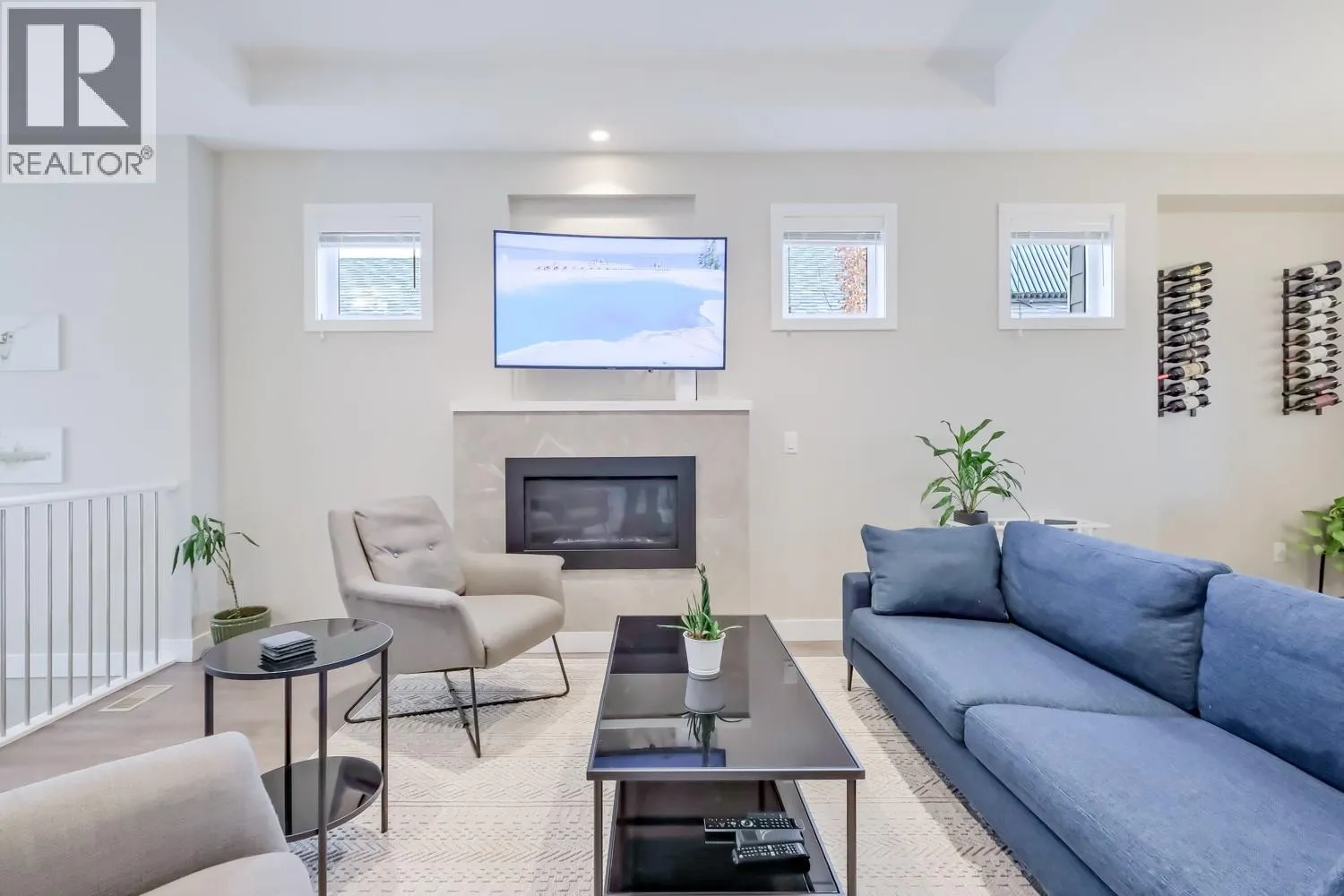 Welcome home to this luxurious half duplex nestled in one of Lake Countryâs most desirable neighbourhoods. Offering stunning mountain and orchard views, this beautifully designed home delivers upscale living with thoughtful details throughout with NO STRATA FEE. Step inside to a bright, open main level featuring 9' ceilings, custom blinds, and durable vinyl plank flooring. The inviting living and dining area is anchored by a cozy gas fireplace, perfect for relaxing evenings. The gourmet island kitchen impresses with quartz countertops, soft-close cabinetry, stainless steel appliances including a gas range and built-in microwave and direct access to a large covered patio for seamless indoor/outdoor living. The main level primary suite is a true retreat, complete with scenic views, a dual vanity ensuite, and a spacious walk-in closet. The lower level is an entertainer's dream, offering a true theater room, expansive rec room, wet bar, full sized laundry room, spacious bedroom, and a full bathroom. Walk out to the covered second patio featuring a saltwater hot tub, perfect for year round enjoyment. Outside, the low-maintenance, fully fenced backyard has a designated fire pit area and plenty of room to relax. Hot water on demand, EV charger and new A/C system ensures comfort through the summer. Located just minutes from everyday amenities, scenic nature trails, the Lake Country wine route, Okanagan Rail Trail, UBCO, and Kelowna International Airport, this home truly has it all. (id:27476)
