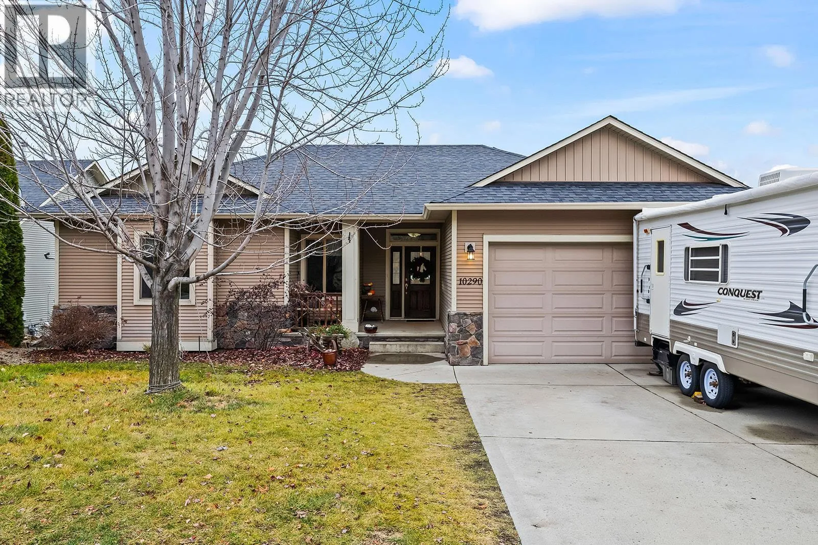 Welcome to 10290 Teresa Road, a beautifully designed 4-bedroom walkout rancher in the heart of Lake Country East, offering picturesque valley views, family-friendly living, and endless potential. Step inside the main level to find 3 spacious bedrooms, thoughtfully laid out for privacy and comfort. The primary suite shares no walls with the other bedrooms and features a generous walk-in closet and a bright 4-piece ensuite bathroom. The living room serves as the centerpiece of the home, showcasing sweeping valley vistas and providing a warm, inviting place to gather in front of the fireplace. The walkout basement is a standout feature, offering its own separate entrance, it is fully suite-ready for in-laws, guests, or income potential. This level offers a large 1-bedroom layout with a cheater 4-piece ensuite, plus an expansive recreation room stretching the entire width of the home, approximately 49 feet in length. Whether youâre envisioning a full secondary suite, a home theatre, gym, or multi-purpose family zone, this space can accommodate it all. Outside, the sloped lot enhances the exceptional views and provides a pool-sized fully fenced space, making it perfect for outdoor living, entertaining, or future landscaping dreams. Located in highly sought-after Lake Country East, this home sits in a warm, welcoming neighbourhood close to excellent schools, parks, and all the amenities families appreciate. (id:27476)