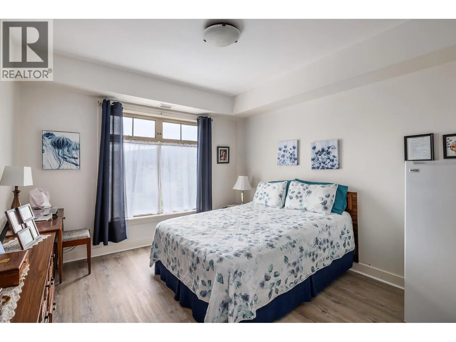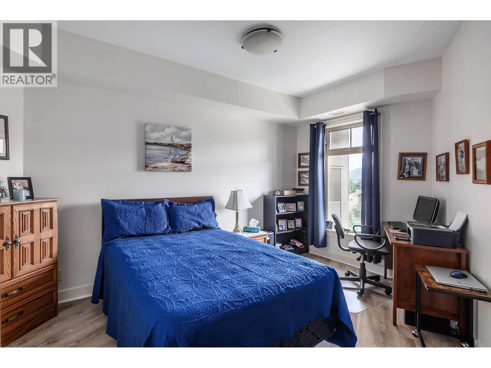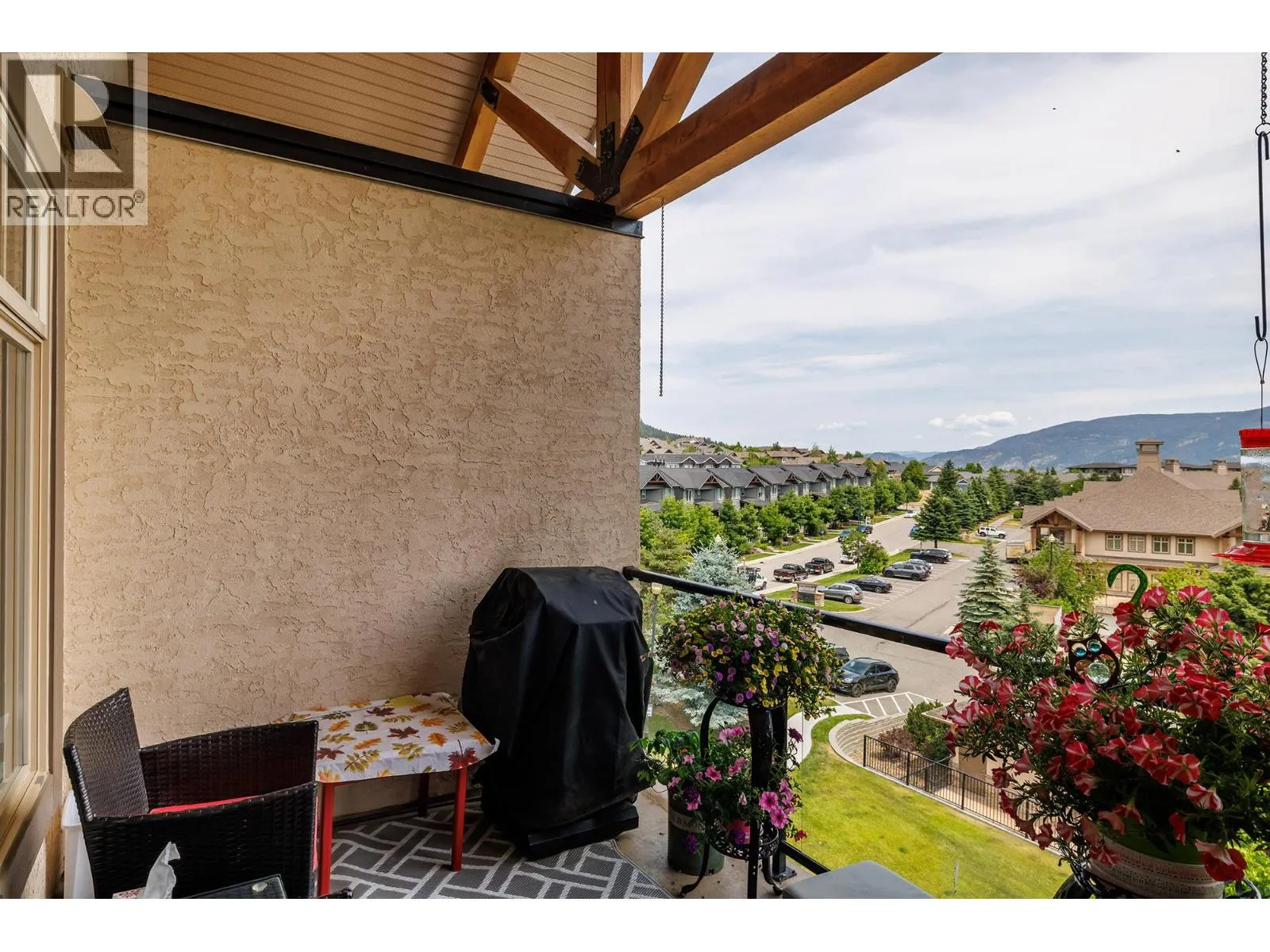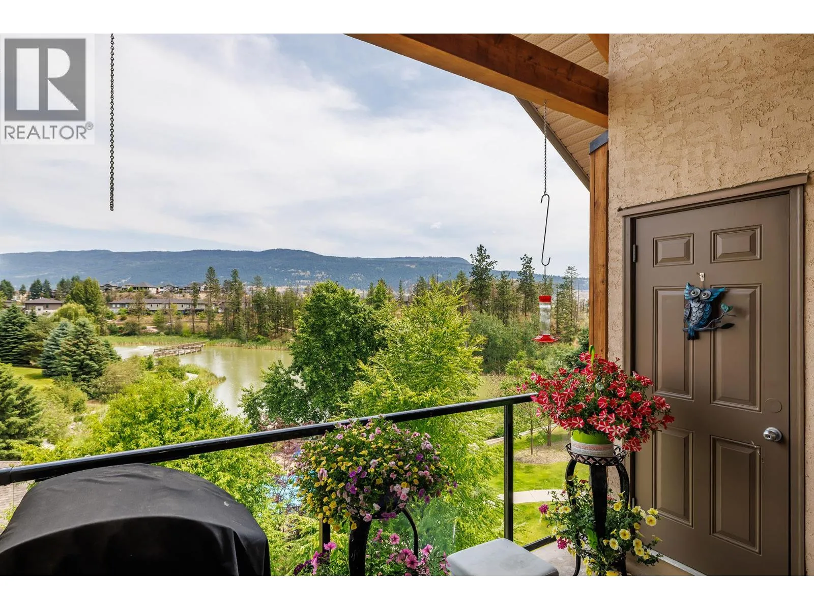 Contemporary and timeless design at Sitara on the Pond's top floor backing onto Pollards Pond. This 2 bed, 2 bath Lake Country condo boasts a cool neutral palette, large windows framing picturesque pond, pool, and mountain views. Featuring newer stainless steel appliances, pantry, cozy gas fireplace, newer vinyl plank flooring and private patio. The primary bedroom features an ensuite and walk-in closet & ample storage. Central heating and cooling provide year-round comfort. Take advantage of amenities like a pool, hot tub, pool table, and relax in the lounge with library and fireplace. Explore nearby walking, hiking, and biking trails while relishing the rural feel with urban conveniences close by. Underground parking, bike storage, storage unit, in-suite laundry and pet-friendly atmosphere provides the perfect blend of serenity and convenience. (id:27476)