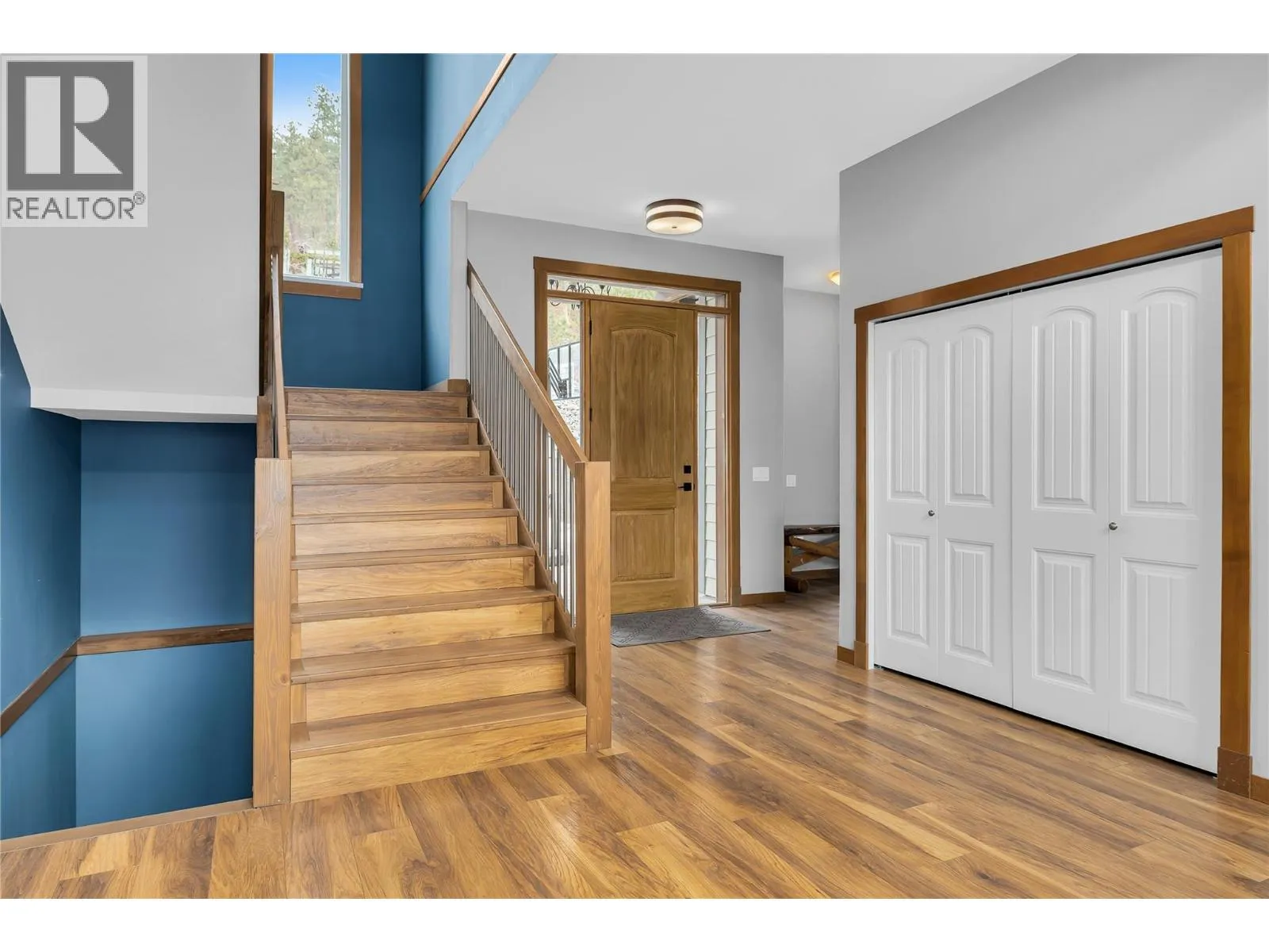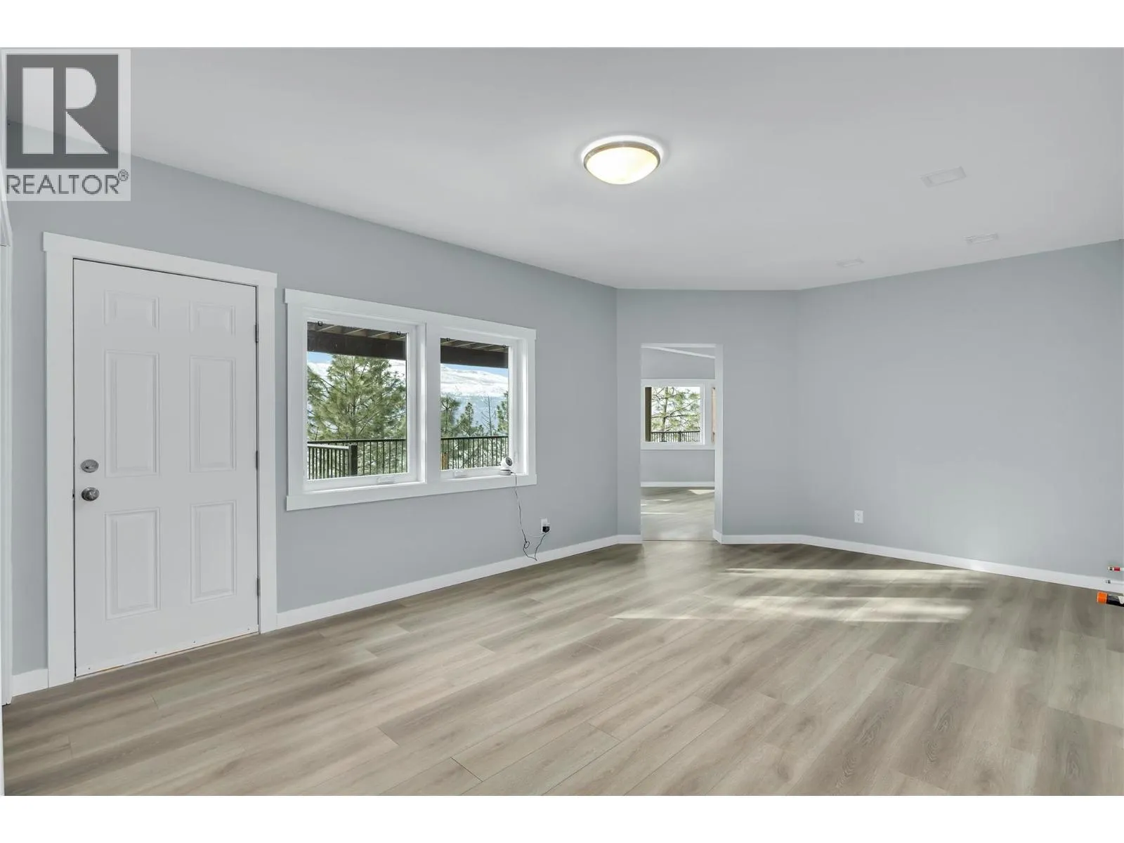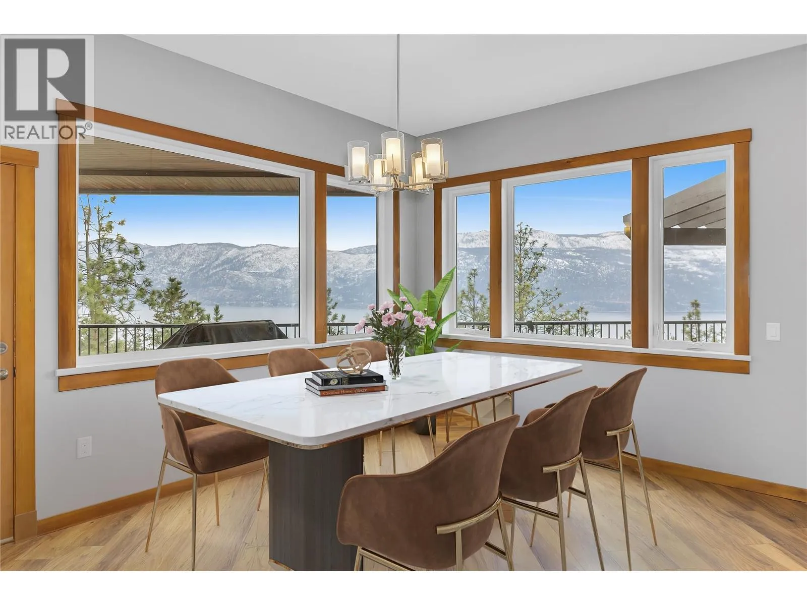 INVESTOR ALERT! Nestled in the prestigious community of Carrâs Landing, this residence offers breathtaking 180-degree views of Okanagan Lake and a peaceful, private setting and over 5,200 square feet of thoughtfully designed living space. The grand, vaulted ceilings create an airy and inviting atmosphere, while the open-concept living, dining, and kitchen area is tailor-made for entertaining. A stunning stone gas fireplace serves as the focal point, and the kitchen boasts high-end stainless steel appliances and ample space for gatherings. Upstairs, the primary suite is a true retreat, complete with a private lake-view balcony, spa-inspired ensuite, and an oversized walk-in closet. Three additional bedrooms on this level provide flexibility for family living. The walkout lower level offers endless potentialâin-laws, adult children, guest suites, AIRBNB, and endless rental opportunity. Still have room left over for entertainment haven. Multiple patios across different levels showcase stunning views of the lake and surrounding forest. A triple-car garage-turned-workshop can easily be restored for full vehicle parking. Located just minutes from renowned wineries, pristine beaches, schools, and the airport, this private one-acre sanctuary is an outdoor enthusiastâs dream, with instant access to hiking, biking, and ATV trails on Spion Kop Mountain. Experience serenity, adventure, with the right location and room for it ALL!! Offered well below BC Assessment, this is a rare chance to secure a highly valuable property at an exceptional price point (id:27476)