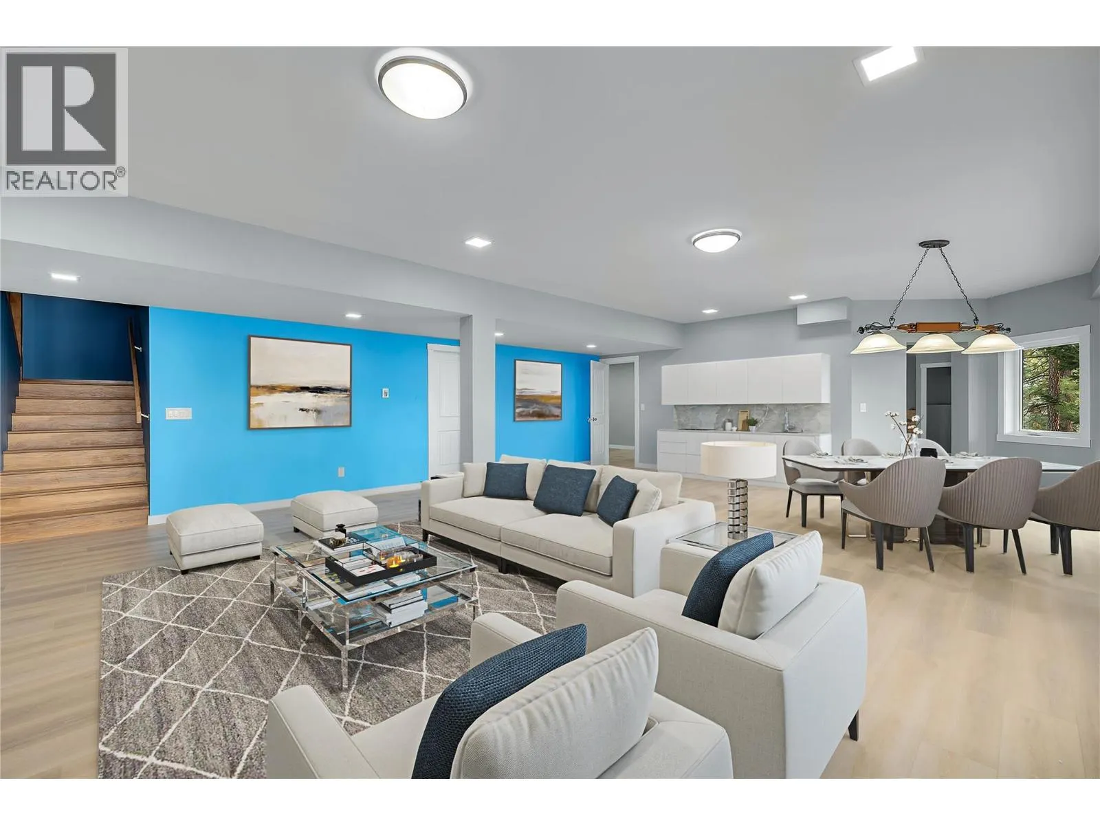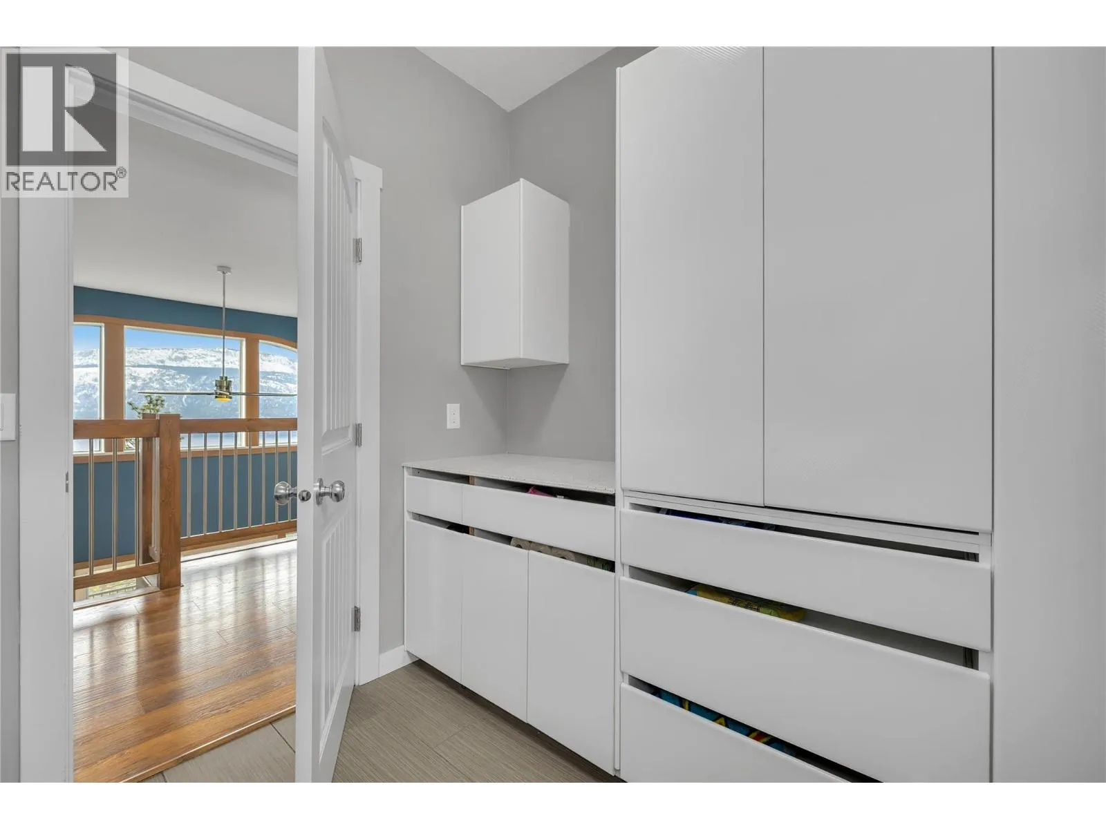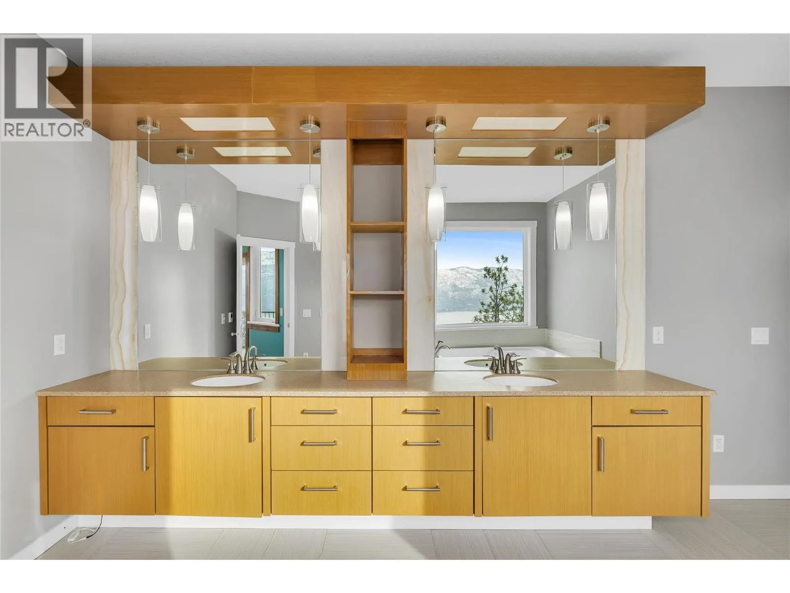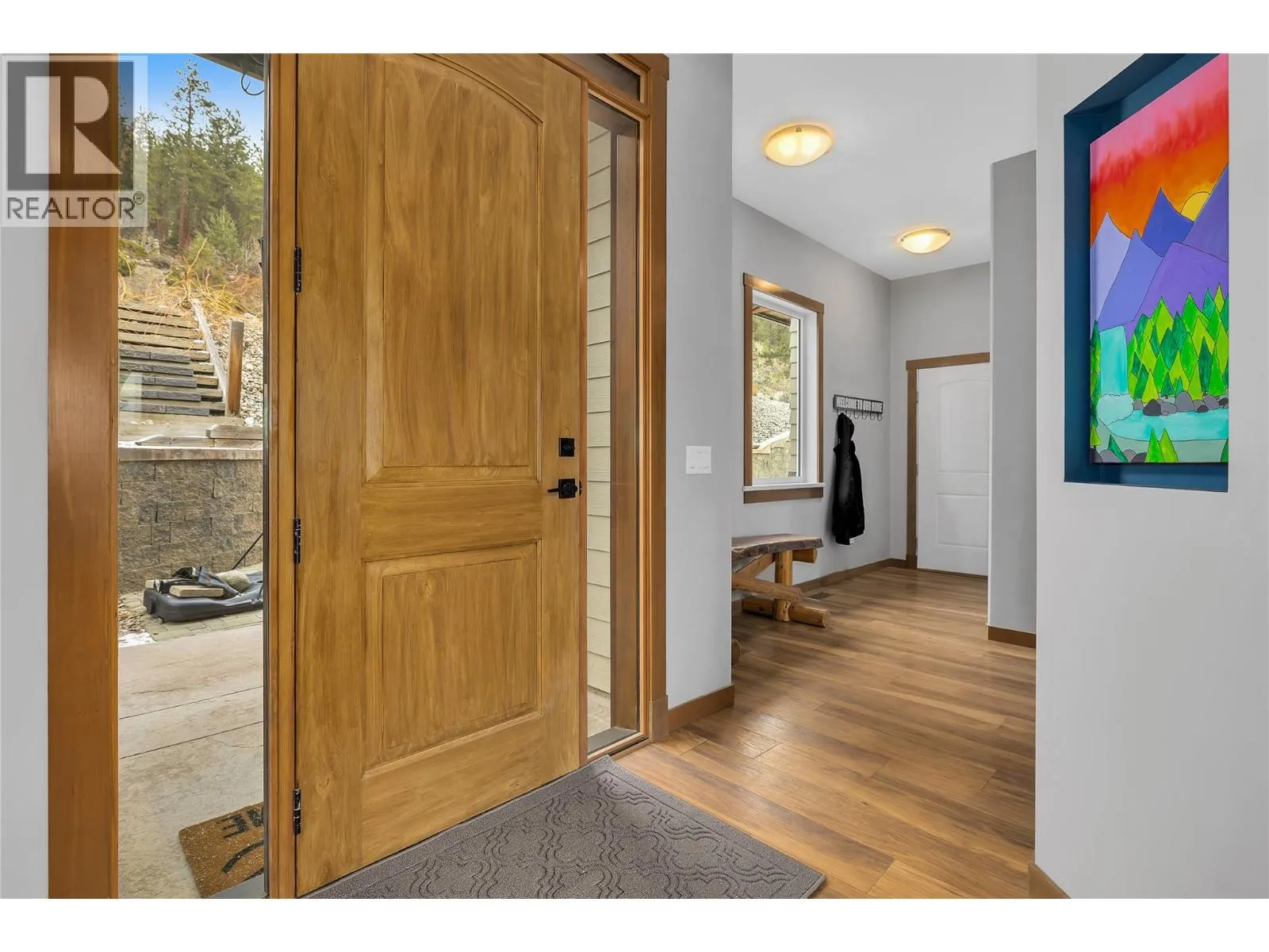 INVESTOR ALERT! Nestled in the prestigious community of Carrâs Landing, this residence offers breathtaking 180-degree views of Okanagan Lake and a peaceful, private setting and over 5,200 square feet of thoughtfully designed living space. The grand, vaulted ceilings create an airy and inviting atmosphere, while the open-concept living, dining, and kitchen area is tailor-made for entertaining. A stunning stone gas fireplace serves as the focal point, and the kitchen boasts high-end stainless steel appliances and ample space for gatherings. Upstairs, the primary suite is a true retreat, complete with a private lake-view balcony, spa-inspired ensuite, and an oversized walk-in closet. Three additional bedrooms on this level provide flexibility for family living. The walkout lower level offers endless potentialâin-laws, adult children, guest suites, AIRBNB, and endless rental opportunity. Still have room left over for entertainment haven. Multiple patios across different levels showcase stunning views of the lake and surrounding forest. A triple-car garage-turned-workshop can easily be restored for full vehicle parking. Located just minutes from renowned wineries, pristine beaches, schools, and the airport, this private one-acre sanctuary is an outdoor enthusiastâs dream, with instant access to hiking, biking, and ATV trails on Spion Kop Mountain. Experience serenity, adventure, with the right location and room for it ALL!! Offered well below BC Assessment, this is a rare chance to secure a highly valuable property at an exceptional price point (id:27476)