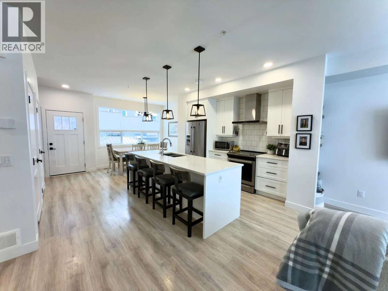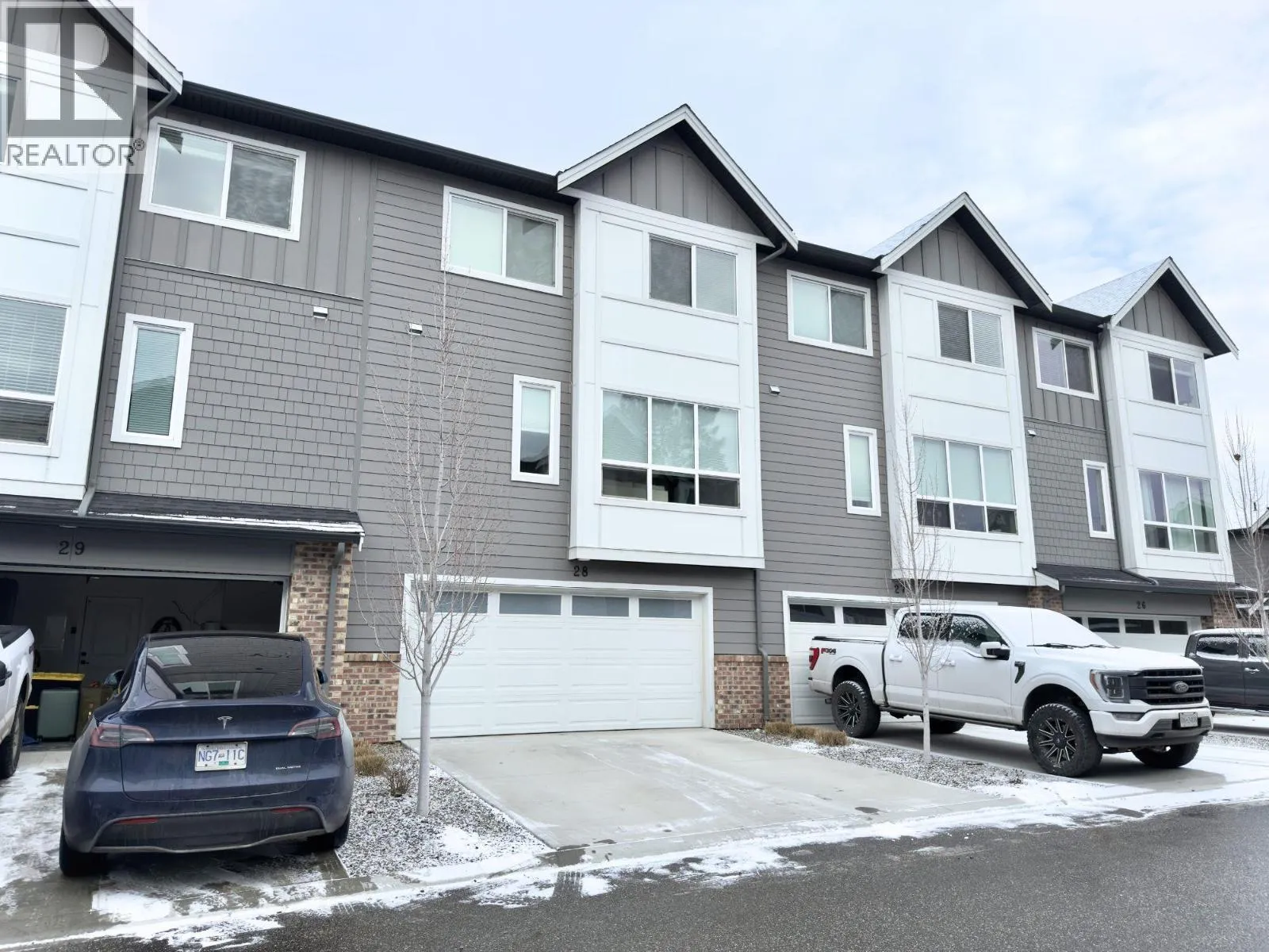 Beautiful, bright, and spacious, this townhome is ideally located in the heart of Lake Country and offers 3 bedrooms, 3 bathrooms, and 1,642 sq. ft. of thoughtfully designed living space. The open-concept main floor features a generous kitchen, living, and dining area, all bathed in natural light from large windows. The stylish kitchen is highlighted by upgraded stainless steel appliances, crisp white cabinetry, and quartz countertops, complemented by a convenient powder room on the same level. Upstairs, youâll find three comfortable bedrooms, including a primary bedroom with an ensuite, along with the added bonus of top-floor laundry. The lower level provides a versatile office or flex space with direct access to the garage. Parking is effortless with a double side-by-side garage and a double driveway, while the outdoor living area offers a private, low-maintenance yard to extend your living space. Oceola Landing is a pet-friendly community allowing two pets of any size, and this home is just minutes from your choice of three lakes, schools, wineries, a health clinic, UBCO, the Okanagan Rail Trail, and the airport. Welcome home. (id:27476)