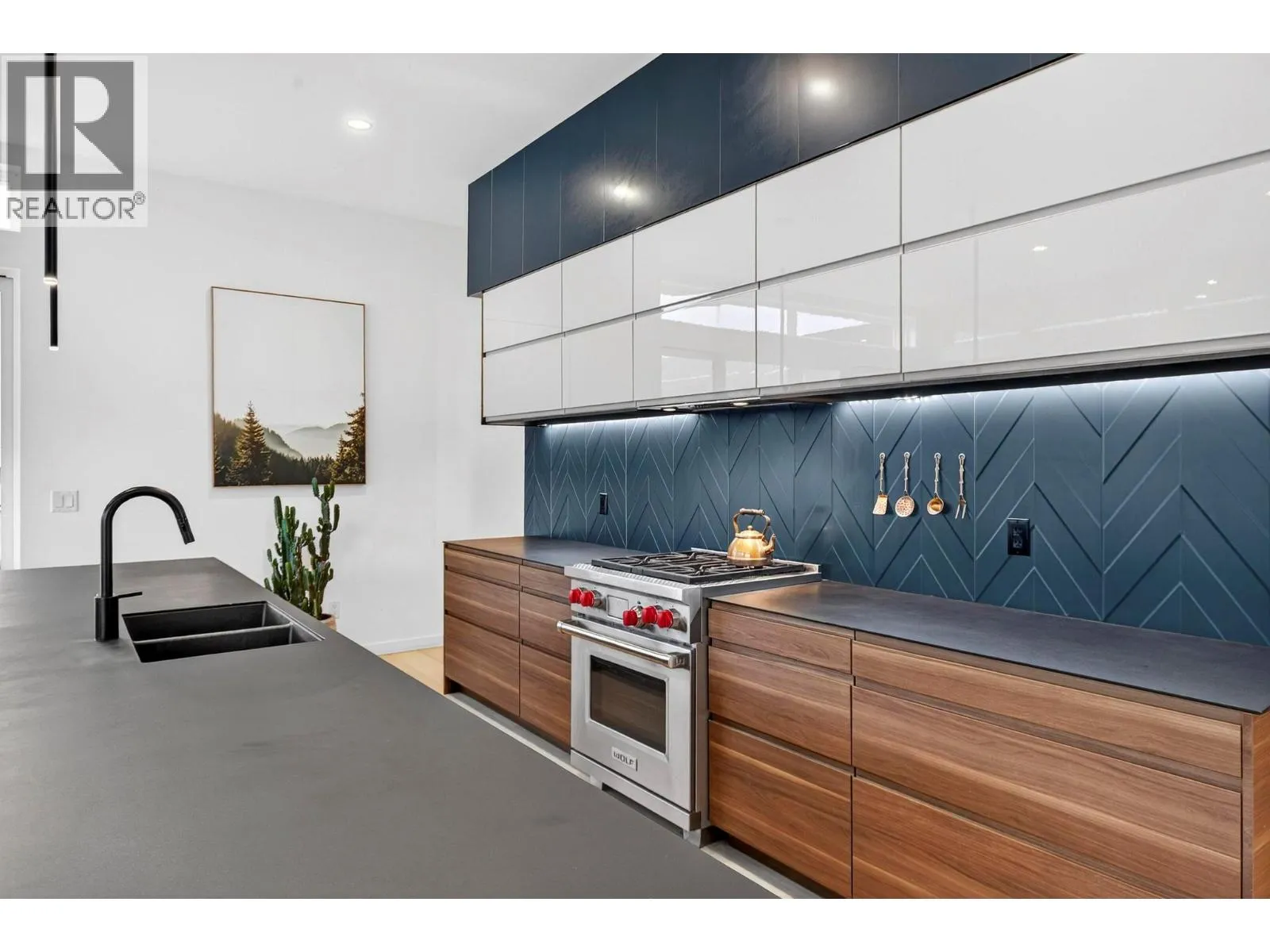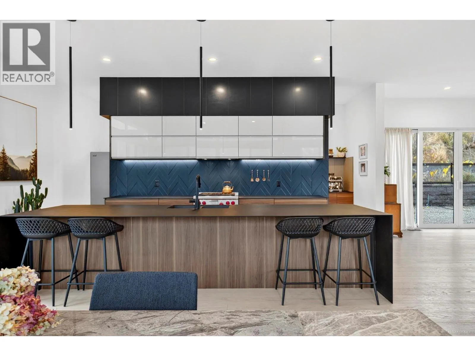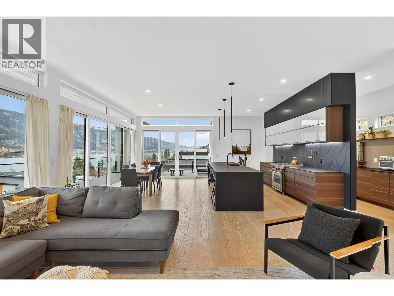 A designerâs dream with show-stopping lake views, this modern 3,000 SQ FT masterpiece sits in the heart of Oyama - one of the Okanaganâs most coveted lake communities. Just a 3-minute walk to Kaloya Park and Kalamalka Lake, youâre steps from beaches, trails, and endless recreation. Surrounded by both Wood & Kal Lake and close to local favourites like Oyama General Store, Pane Vino, Gatzke Orchard, and Folktale Cidery, this location delivers the ultimate Okanagan lifestyle. Inside, luxury and intention take centre stage. 10 ft ceilings, oversized sliding patio doors, and architectural detailing create natural light and flow throughout. The gourmet kitchen features custom steel countertops and a full butlerâs pantry, opening into an airy main living space with seamless indoor-outdoor connection. The home offers 3 bedrooms + office and 3 full bathrooms, including a stunning primary suite with heated bathroom floors and an acoustic-treated ceiling - designed for both comfort and calm. Want even more space? There is room to build an approx. 1000 SQ FT suite above the garage. Sitting on a rare, flat 12,000 SQ FT double lot, the outdoor potential is unmatched. Enjoy a level walk-out yard from the main floor with room for a pool and 1,000 SQ FT of wrapped patio space spanning three sides of the home and 900+ SQ FT triple garage with extended bay (perfect for a boat or full-size truck). Modern Okanagan livingâelevated in every way. (id:27476)