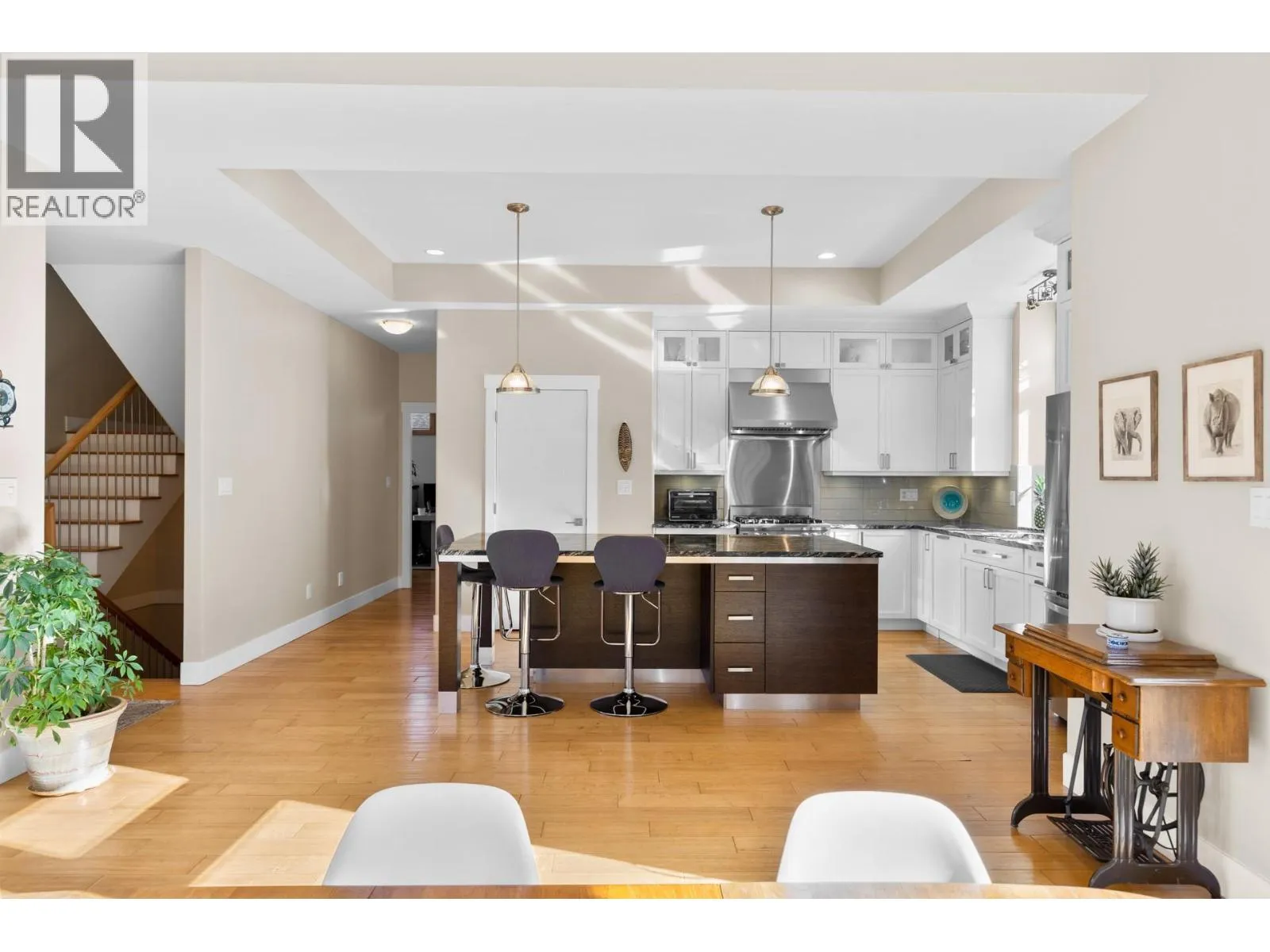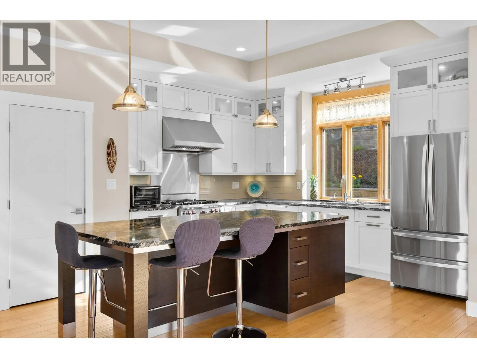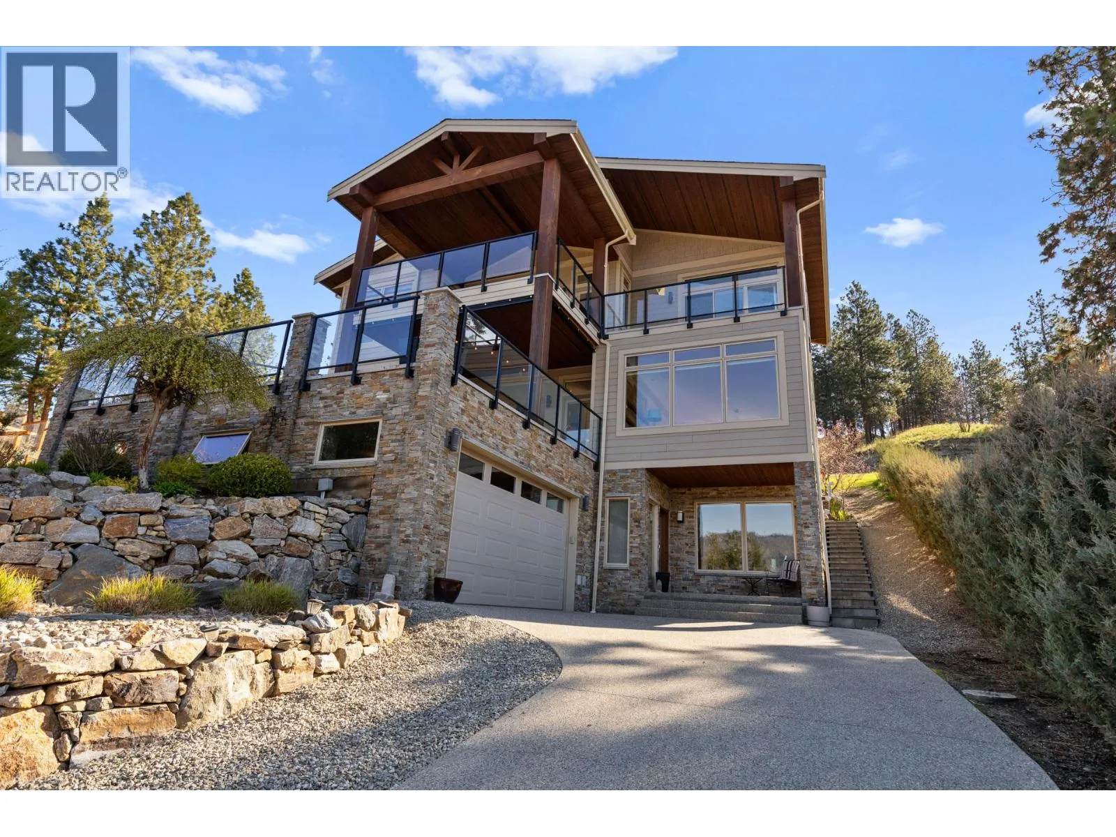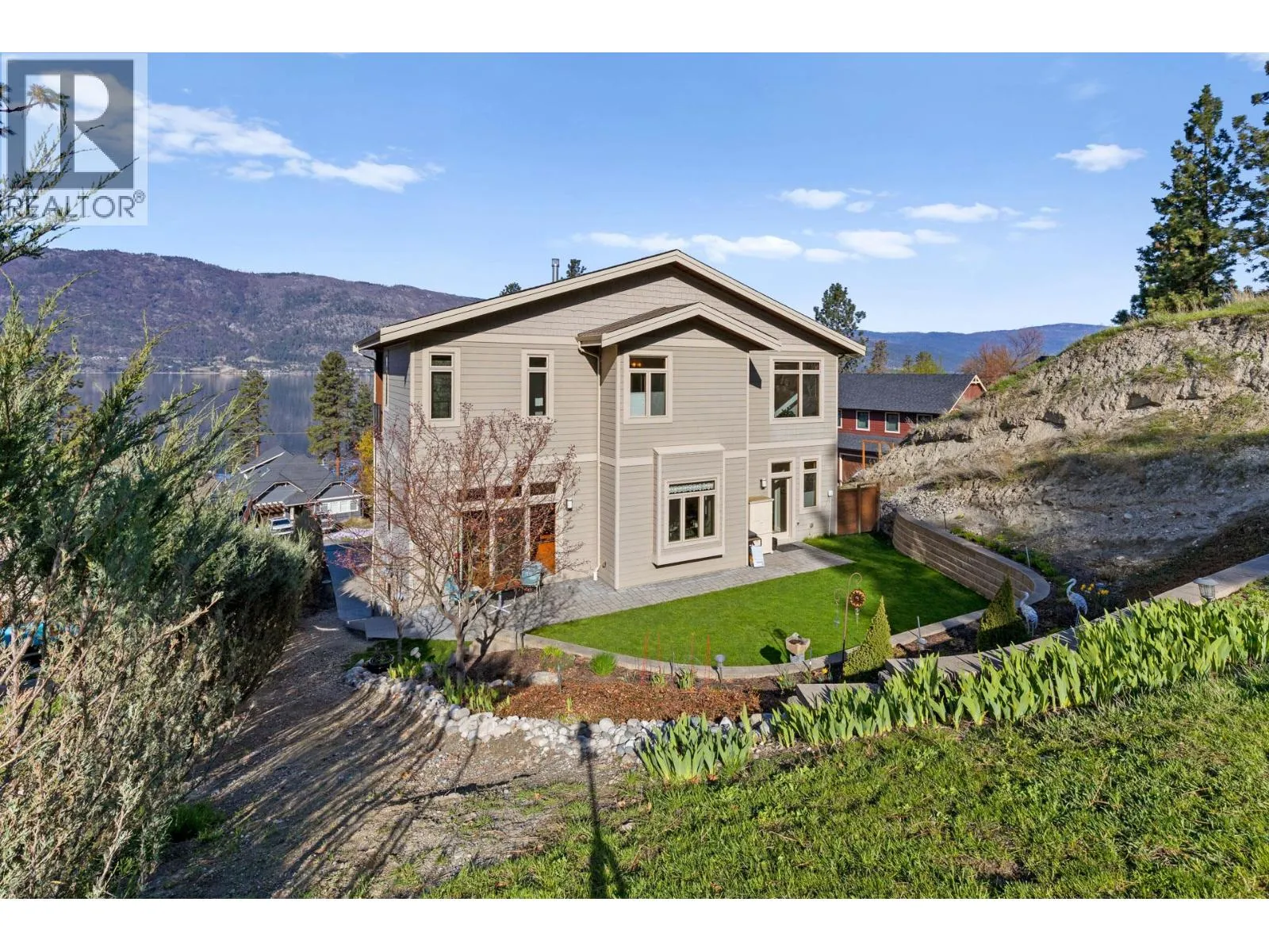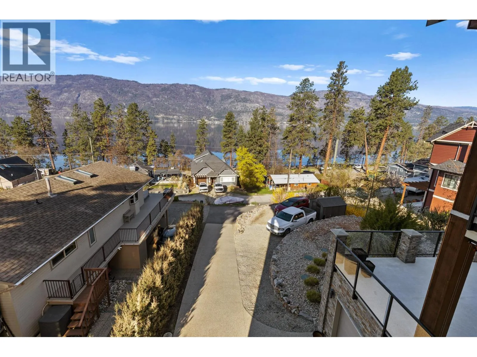 Stunning residence located in the prestigious Okanagan Centre area of Lake Country! With four bedrooms, a media room, an office/den, four bathrooms, and over 3600 square feet on a 1.15 acre lot, this is a turn-key 2014-built home that offers great proximity to the water. Upon entering the property, you are greeted by an abundance of parking that leads you to your oversized double-car garage. Boasting 10' ceilings and engineered hardwood on all levels, almost every room has a spectacular view. The in-floor heated lower level includes a full bedroom, three-piece bathroom, laundry, and a sound insulated media room. The main level offers a spacious kitchen that opens to the dining and living rooms, as well as a large lakeview office space, perfect for those working from home. The kitchen has stainless steel appliances, granite countertops, large island, and a walk-in pantry. The back patio and garden offers a retreat from the afternoon sun and access to a large upper yard and wild space, while the screened front deck offers unparalleled outdoor living directly facing sunsets over Okanagan Lake. Upstairs, the three-bedroom layout is great for families, with two bedrooms serviced by a four-piece bathroom, and a spacious primary bedroom with balcony access and a large five-piece ensuite that includes a soaker tub. The main and upper level decks are both engineered for hot tubs! Okanagan Centre is known for its public lakeshore areas, the boat launch, cafes, wineries, and a quaint community that can't be replicated. (id:27476)