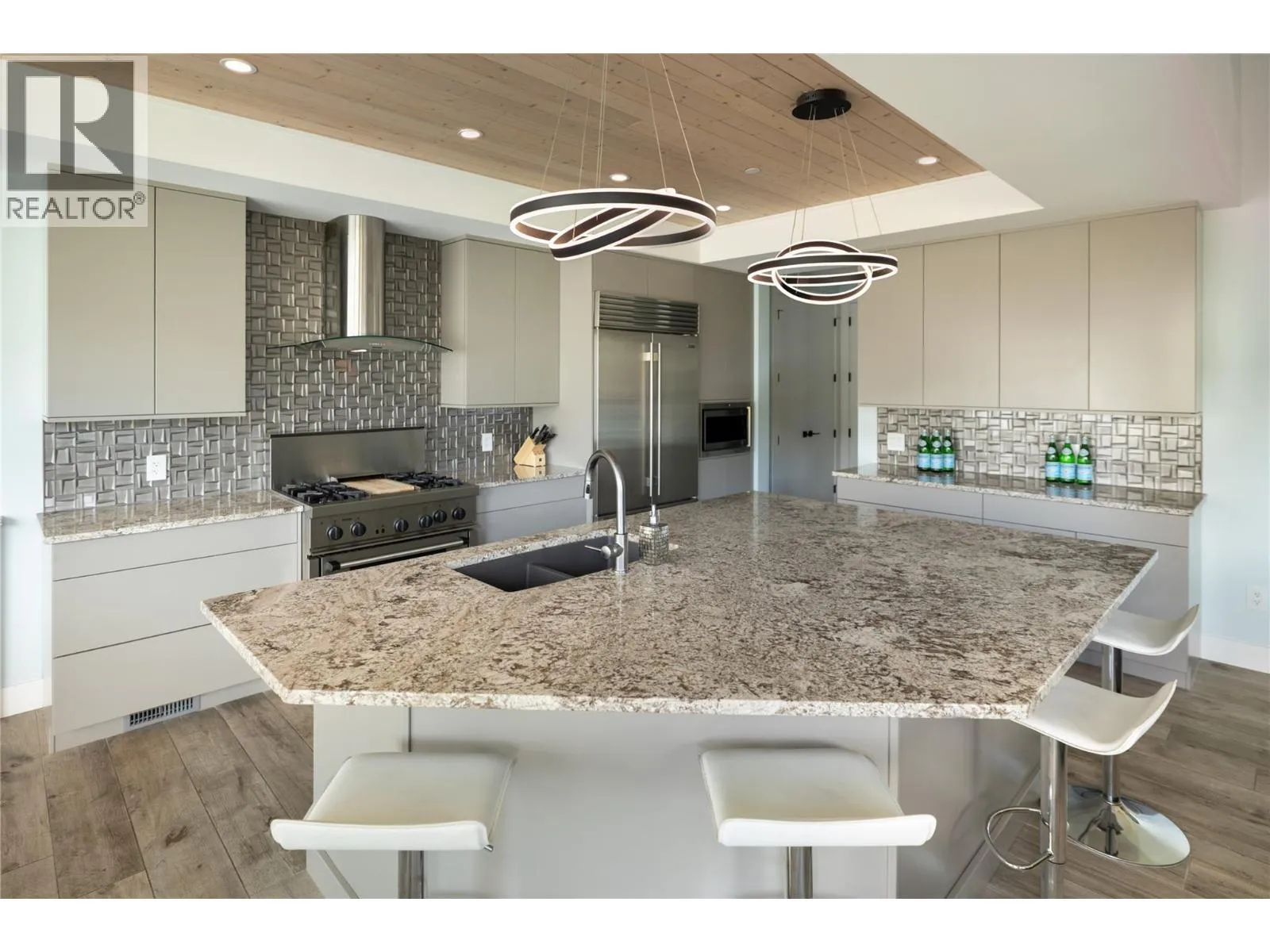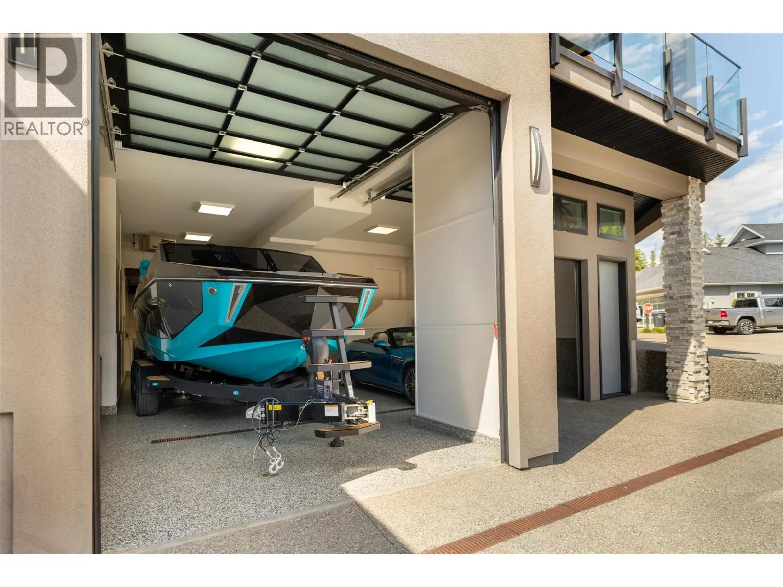 Meticulously maintained & designed for those who live large, this exceptional residence is set within a gated lakefront community complete with a deep-water boat slip, 12,000 lb lift, & a show-stopping seven-car garage built for every toy imaginable. Whether itâs boats, cars, RVs, or adventure gear, this is a true haven for recreational enthusiasts who refuse to compromise. Inside, refined finishes & thoughtful design elevate everyday living. Soaring ceilings, wide-plank ceramic tile flooring, oversized windows, a private elevator, & a rooftop deck ready for unforgettable summer evenings. The chef-inspired kitchen sits at the heart of the home, perfectly positioned for effortless hosting after a day on the lake. The primary suite offers a quiet retreat with custom ceiling details, a walk-in closet, & a spa-inspired ensuite designed to unwind & recharge. Take the elevator up to the rooftop patio, where fire table evenings, lake breezes, & the option for a future summer kitchen (plumbing already in place) set the tone for relaxed luxury. The 1,750 sq.ft. heated garage is in a league of its own! Epoxy finished, commercial-grade doors, hot & cold water, built-in vacuum, drainage, & space for a boat or RV. Think showroom meets workshop, built to support a lock-&-leave lifestyle without sacrificing passion or play. Located within the exclusive Crystal Waters lakefront community, just steps from the turquoise shoreline of Kalamalka Lake, with direct rail trail access & effortless connections to Big White, Silver Star, & Predator Ridge. This is the ultimate retreat for buyers seeking luxury, recreation, & carefree ownership in one of Lake Countryâs most coveted waterfront settings. (id:27476)