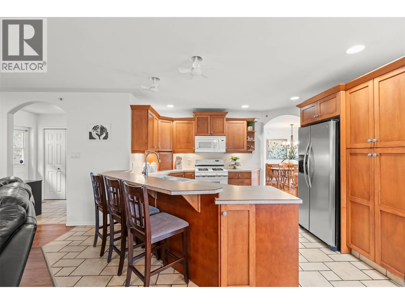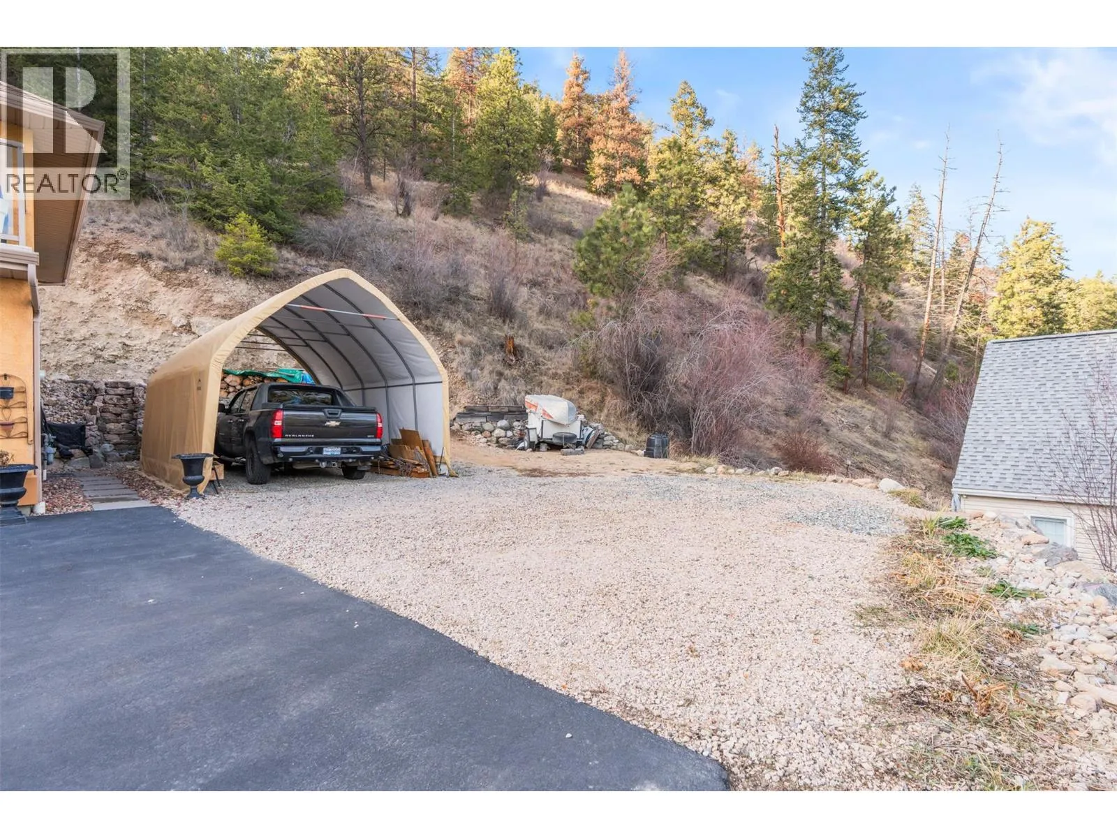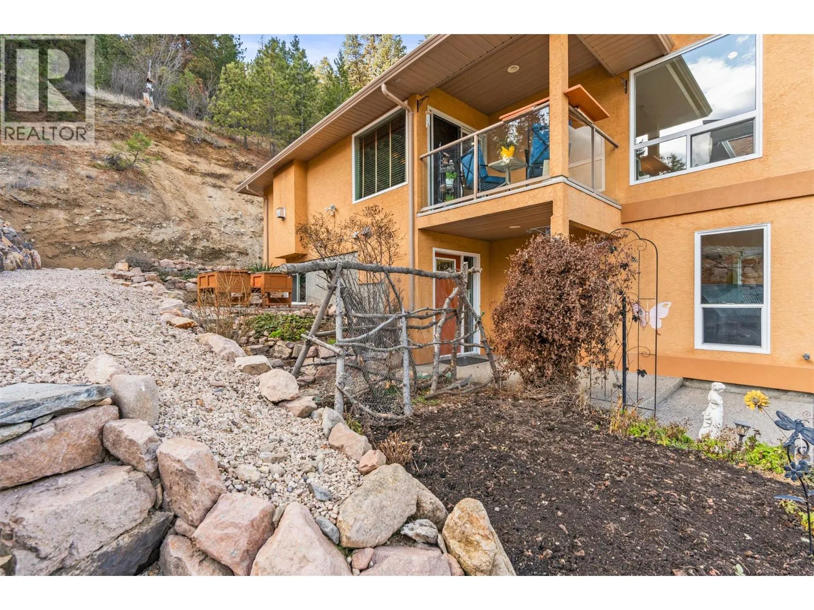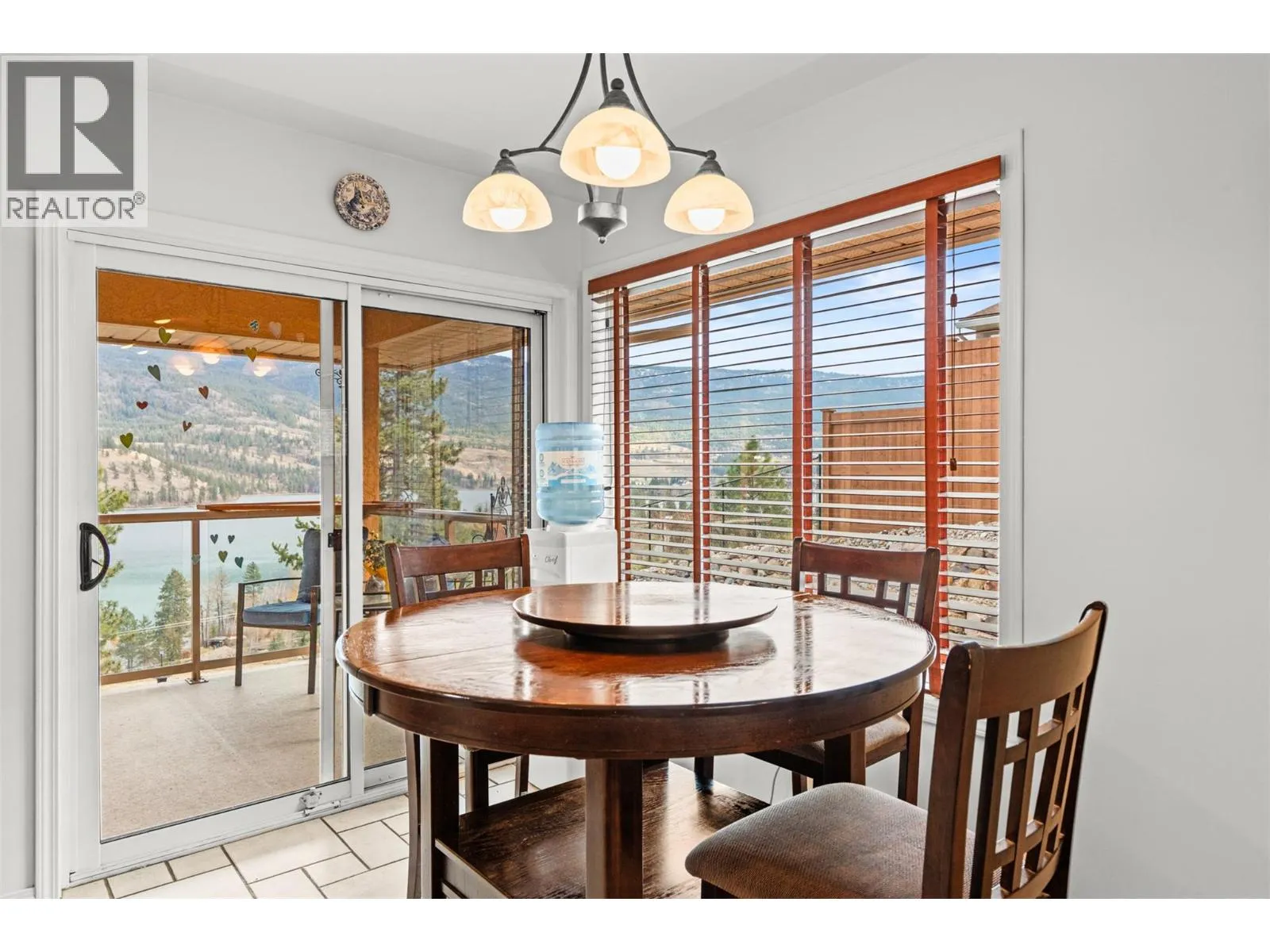 Perched on 5 acres in Lake Country, this beautifully maintained one-owner residence captures breathtaking panoramic views of Kalamalka Lake and offers a rare sense of privacy and tranquility. From the moment you arrive, the long driveway leads you into a welcoming grand foyer on the lower level, with laundry conveniently located nearby, along with a generous storage/workshop area directly off the double garage. The main living space offers an open and inviting layout, featuring a large kitchen that overlooks the family room with a cozy gas fireplace. The formal dining room and living room are framed by oversized windows, perfectly positioned to capture the stunning lake views. Step outside to a large sundeck off the dining room or enjoy the covered deck off the breakfast nookâideal for morning coffee or evening sunsets. The main level includes the primary bedroom with a 4-piece ensuite, also overlooking Kal Lake, plus two additional bedrooms and a full bathroom. A separate entrance leads to a self-contained one-bedroom in-law suite complete with kitchen, living room, bathroom, and beautiful views. For energy efficiency, the home is equipped with two furnacesâgas forced air with central air conditioning, plus an efficient wood-burning furnace. Outside, thereâs ample space for RV parking, storage, and outdoor enjoyment, including a front lawn area with a fire pit. Water is supplied through a private, licensed community co-op system with lake intake and gravity-fed distribution. (id:27476)