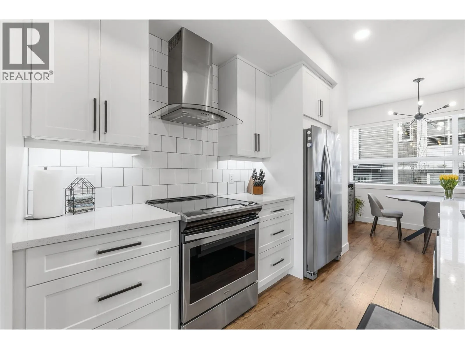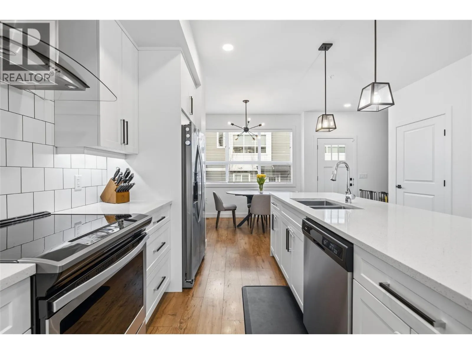 This exceptional end unit townhome shows AAA and is sure to impress you both inside and outside. ""Checking all the boxes"", it includes a PRIVATE YARD (pet friendly), a DOUBLE GARAGE, an amenity rich location and a PERFECT FLOORPLAN. Inside you'll love the open concept design, the numerous windows and the classy finishings. The stunning kitchen offers lots of cabinet + counter space, chic cabinetry, quartz counters and stainless steel appliances, plus beautiful hardware and backsplash. A great dining area compliments the home and an oversize living room provides an ideal space for relaxing after a busy day. Upstairs are 3 spacious bedrooms + 2 washrooms. The primary bedroom has a walk in closet and its own 4 piece ensuite washroom, which includes a double vanity with quartz countertop. For those working from home while still wanting room for family or guests, the additional rooms and bathroom create an ideal living space. Also included on the upper level is the laundry, conveniently close to the bedrooms. The walkout lower/ basement level includes a large storage area (this could work well as a den as there's lot of natural daylight) and easy access to your double garage. Outside you'll fall in love with the picturesque fenced yard. The yard is set up with synthetic lawn on one side (great for kids) and a BIG OUTDOOR LIVING SPACE with room for all your outdoor furniture and a gas hookup to BBQ. Located close to shopping, recreation (Pelmewash Parkway) and public transit. (id:27476)