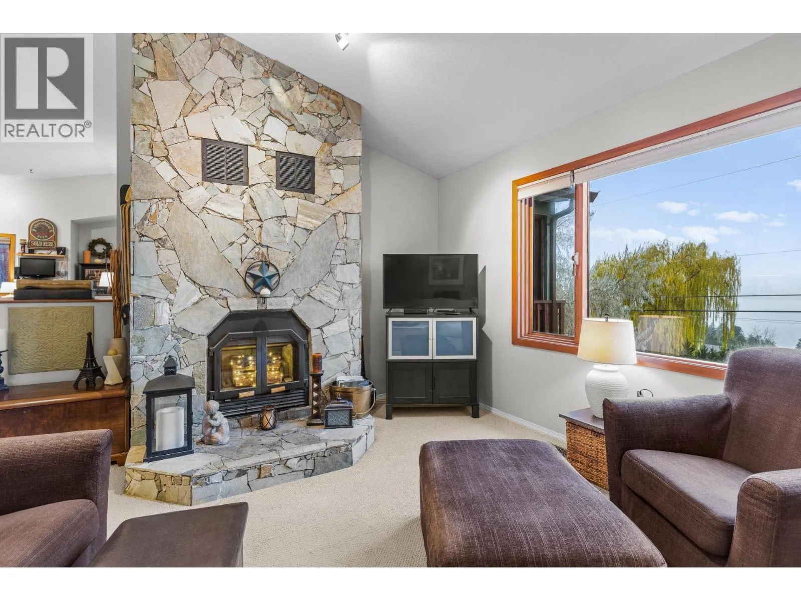 Capture sweeping Okanagan Lake views from this beautifully private 0.988-acre property in the sought-after Carrs Landing area of Lake Country. Offering over 2,100 square feet of comfortable, well-designed living space, this three bedroom + den, two bathroom home blends bright interiors with exceptional outdoor living. The upper level features vaulted ceilings and expansive windows, creating a warm and inviting atmosphere. An enclosed sunroom extends the living space year-round, while the newer oversized deckâwith a gas BBQ lineâprovides the perfect spot to relax, entertain, or add a hot tub. The lower level includes two bedrooms, a den/office that can easily function as a fourth bedroom, a fully renovated 3-piece bathroom, generous storage, and access to the double garage. Upstairs, the spacious primary bedroom offers a walk-in closet and a versatile bonus room, ideal for a future ensuite, dressing area, or private retreat. Set in a quiet, picturesque location just a short walk to the beach and minutes from award-winning wineries such as the OâRourke Family Estate & 50th Parallel, Predator Ridge Golf, Sparkling Hill Spa, and the Kelowna International Airport, this home offers the best of lakeside living in one of the Okanaganâs most desirable communities. A rare opportunity with outstanding views and incredible potential. (id:27476)