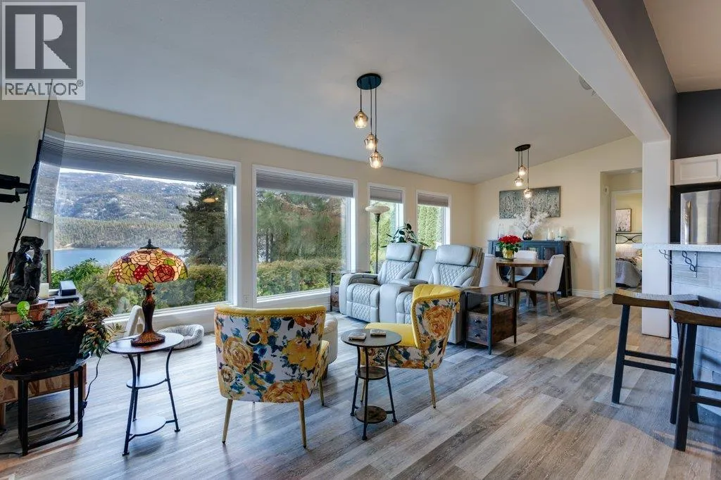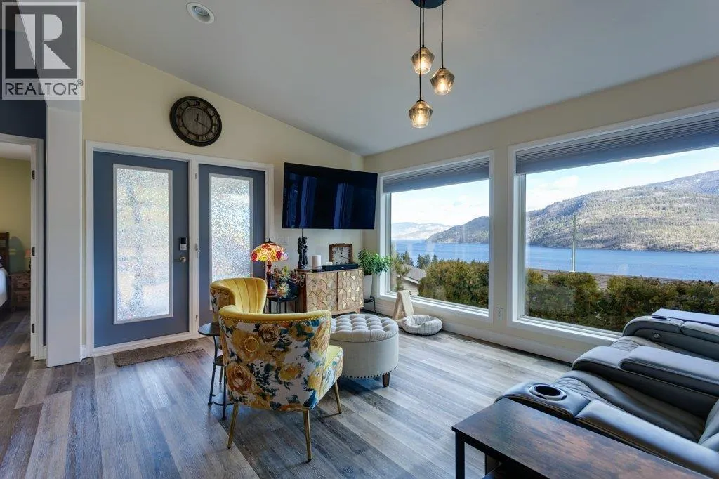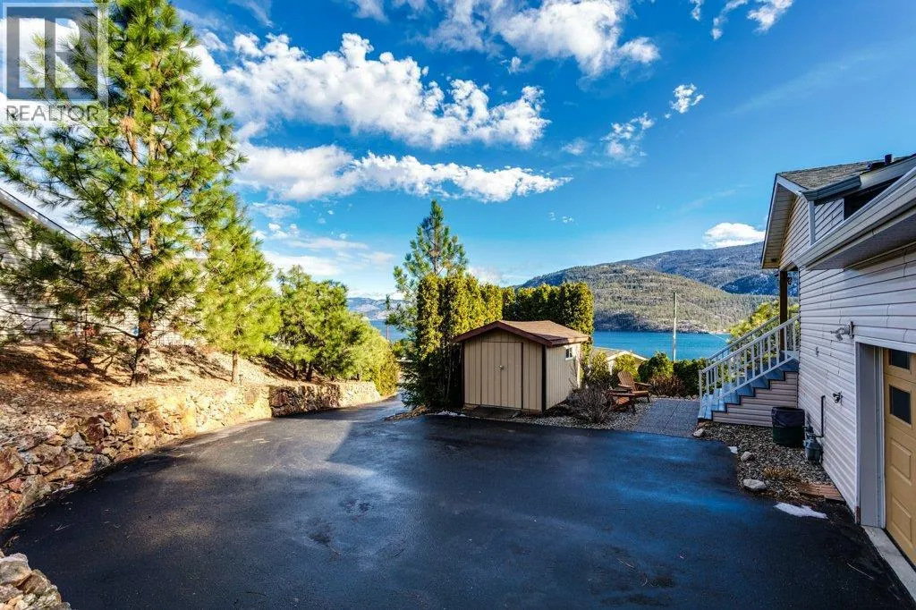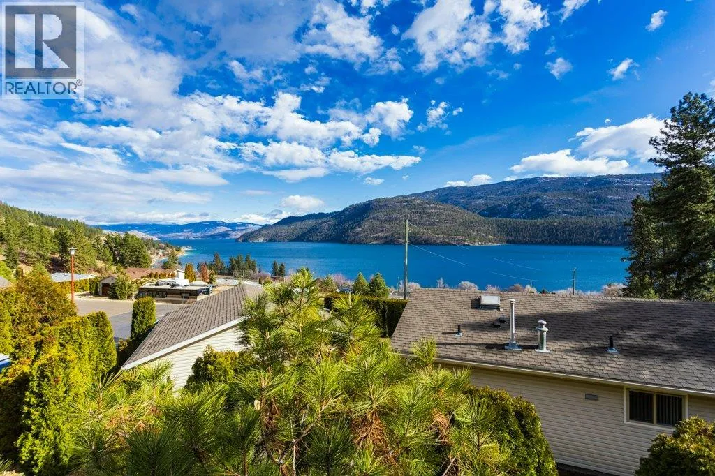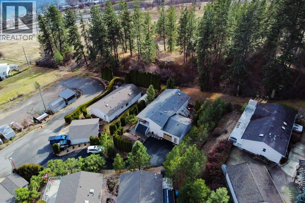 Life, simplified ... Make your move today to the most sought-after manufactured home park in the Central Okanagan - Kal Pine Estates! This friendly, well managed community overlooks the incomparable, stunning, Kalamalka Lake - just 30 minutes north of Kelowna and 20 minutes south of Vernon. Make this 2 bedroom, 2 bath, open concept home your Utopia. Privately nestled into the hillside, this home boasts big, bright windows and vaulted ceilings with unobstructed views from all rooms of the many, magical colours of the lake and the mountains to the east. Undoubtedly, this pristine home is located on the BEST lot in the development! The kitchen features a large island with a breakfast bar and plenty of cabinets, quartz countertops and a walk in pantry. Recent updates include (2019) a high-efficiency furnace, hot water heater, new roof, and new flooring, and (2020) a radon mitigation system. Easily accessible from the garage is a heated (6'4"" crawlspace) basement with concrete floors. An ideal, dry storage solution for all those extras. LOCATION is everything! Beach access and the Okanagan Rail Trail are just across the highway. Skiing, hiking, biking, boating, wine tasting, shopping and other amenities are just a stone's throw away. At the beginning, middle or end of the day you can come home and enjoy the evening views on your large, lake-facing deck or relax in your hot tub and soak your aching muscles after a joyous day on the ski hill. This home is whispering your name... (id:27476)