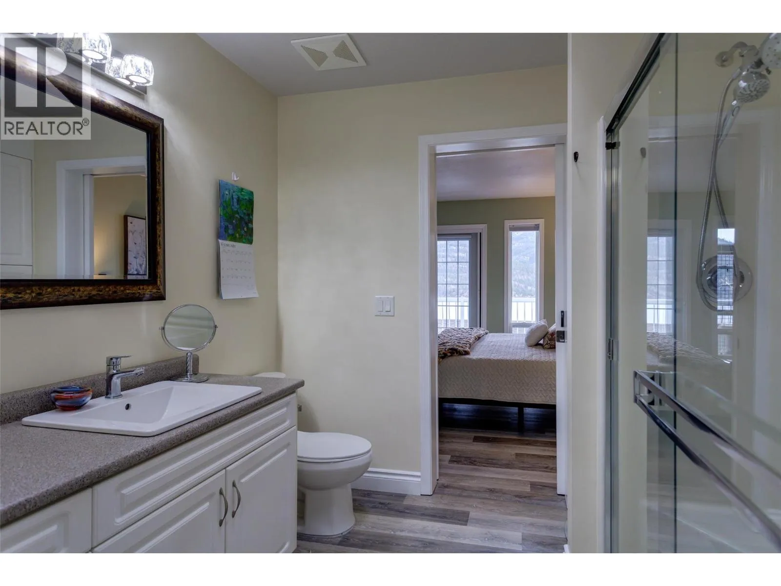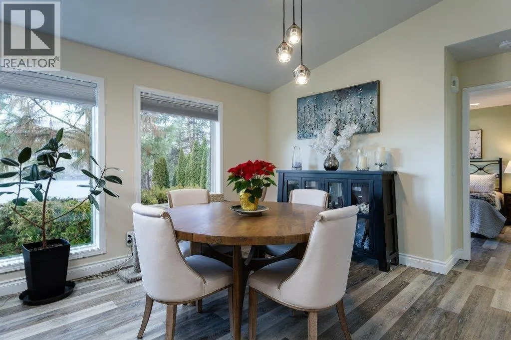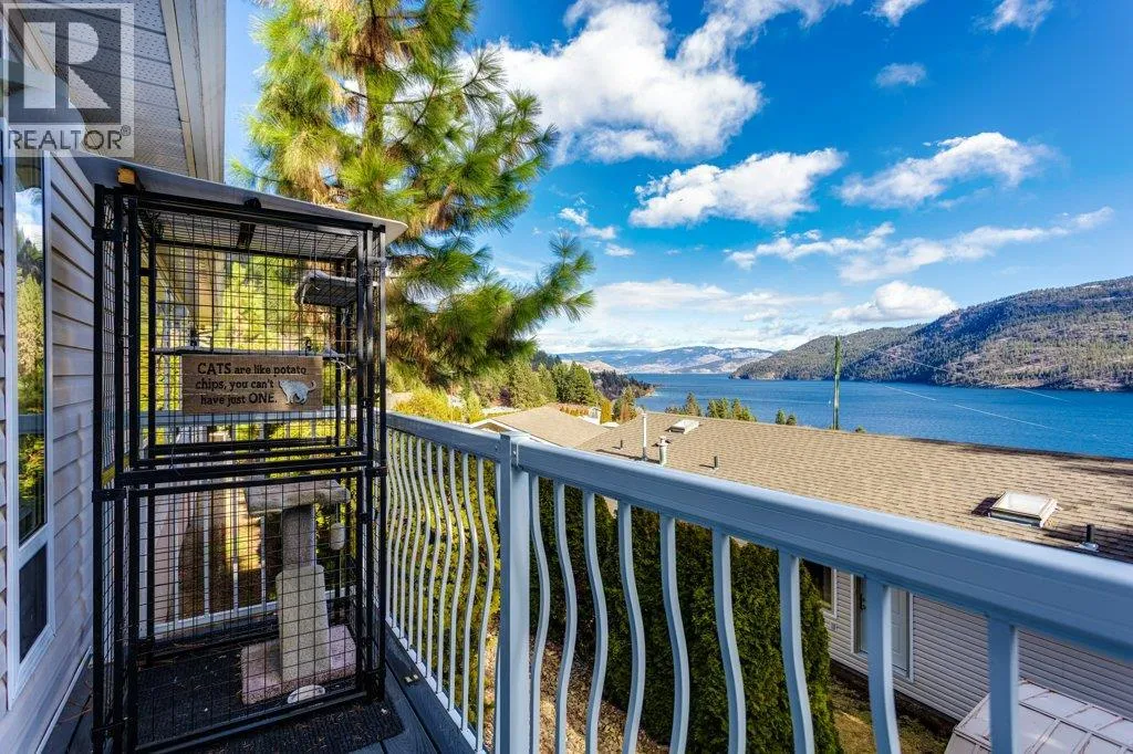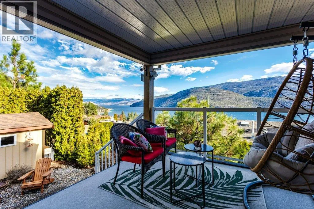 Life, simplified ... Make your move today to the most sought-after manufactured home park in the Central Okanagan - Kal Pine Estates! This friendly, well managed community overlooks the incomparable, stunning, Kalamalka Lake - just 30 minutes north of Kelowna and 20 minutes south of Vernon. Make this 2 bedroom, 2 bath, open concept home your Utopia. Privately nestled into the hillside, this home boasts big, bright windows and vaulted ceilings with unobstructed views from all rooms of the many, magical colours of the lake and the mountains to the east. Undoubtedly, this pristine home is located on the BEST lot in the development! The kitchen features a large island with a breakfast bar and plenty of cabinets, quartz countertops and a walk in pantry. Recent updates include (2019) a high-efficiency furnace, hot water heater, new roof, and new flooring, and (2020) a radon mitigation system. Easily accessible from the garage is a heated (6'4"" crawlspace) basement with concrete floors. An ideal, dry storage solution for all those extras. LOCATION is everything! Beach access and the Okanagan Rail Trail are just across the highway. Skiing, hiking, biking, boating, wine tasting, shopping and other amenities are just a stone's throw away. At the beginning, middle or end of the day you can come home and enjoy the evening views on your large, lake-facing deck or relax in your hot tub and soak your aching muscles after a joyous day on the ski hill. This home is whispering your name... (id:27476)