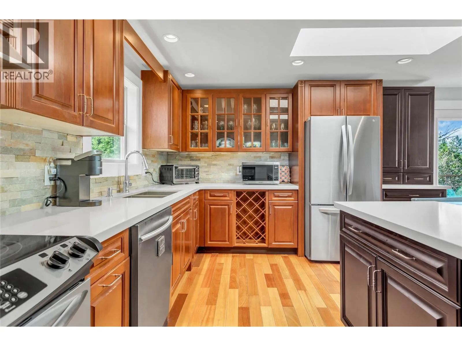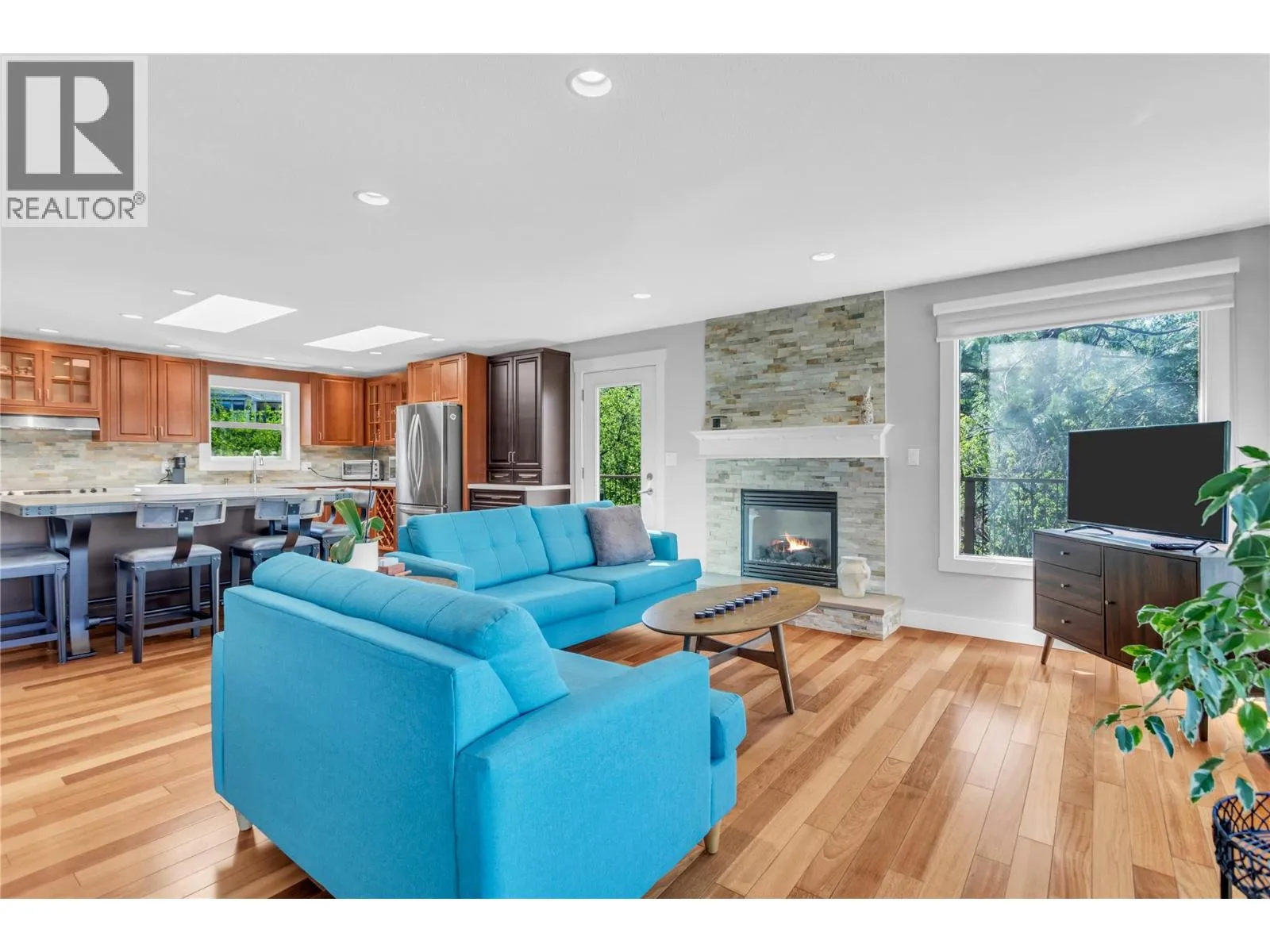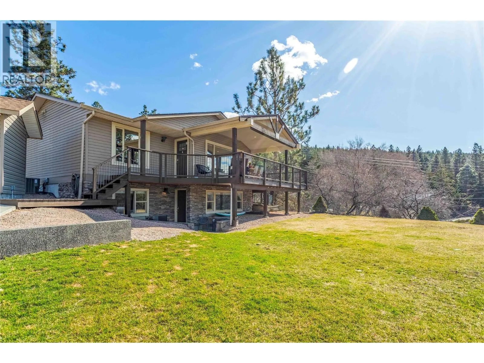 This amazing home set in the tranquility of Carrs Landing. 4-bed, 2-bath home offers breathtaking views in every direction, including stunning lake scenery. The home has a studio in-law suite with Murphy Bed, that was previously licensed for short term rentals. No through road leading to the Maki Coral Beach Trail right trail. The spacious property boasts ample parking for vehicles and recreational toys, an expansive front yard, fully fenced backyard, underground irrigation and a well-constructed storage building for added convenience. Step onto the inviting wrap-around deck and through the front door, where an open-concept living, kitchen and dining area welcomes you. The cozy gas fireplace, set within a stunning stone feature wall, compliments the custom-designed kitchen with quartz countertops and skylights that flood the space with natural light. Spanning over 1,900 sq. ft., this home has been thoughtfully upgraded with a 2019 A/C unit, furnace, and hot water tank, along with a 2016 kitchen renovation and a durable roof installed in 2008. The home is serviced by a treatment plant septic system which is a modern, regulated system designed to treat wastewater to a higher standard than conventional systems. Enjoy the ultimate Okanagan lifestyle with walking distance access to Gable Beach, Coral Beach and 50th Parallel Winery and all the amenities of Lake Country and Vernon. Donât miss out, schedule your private viewing today! (id:27476)
