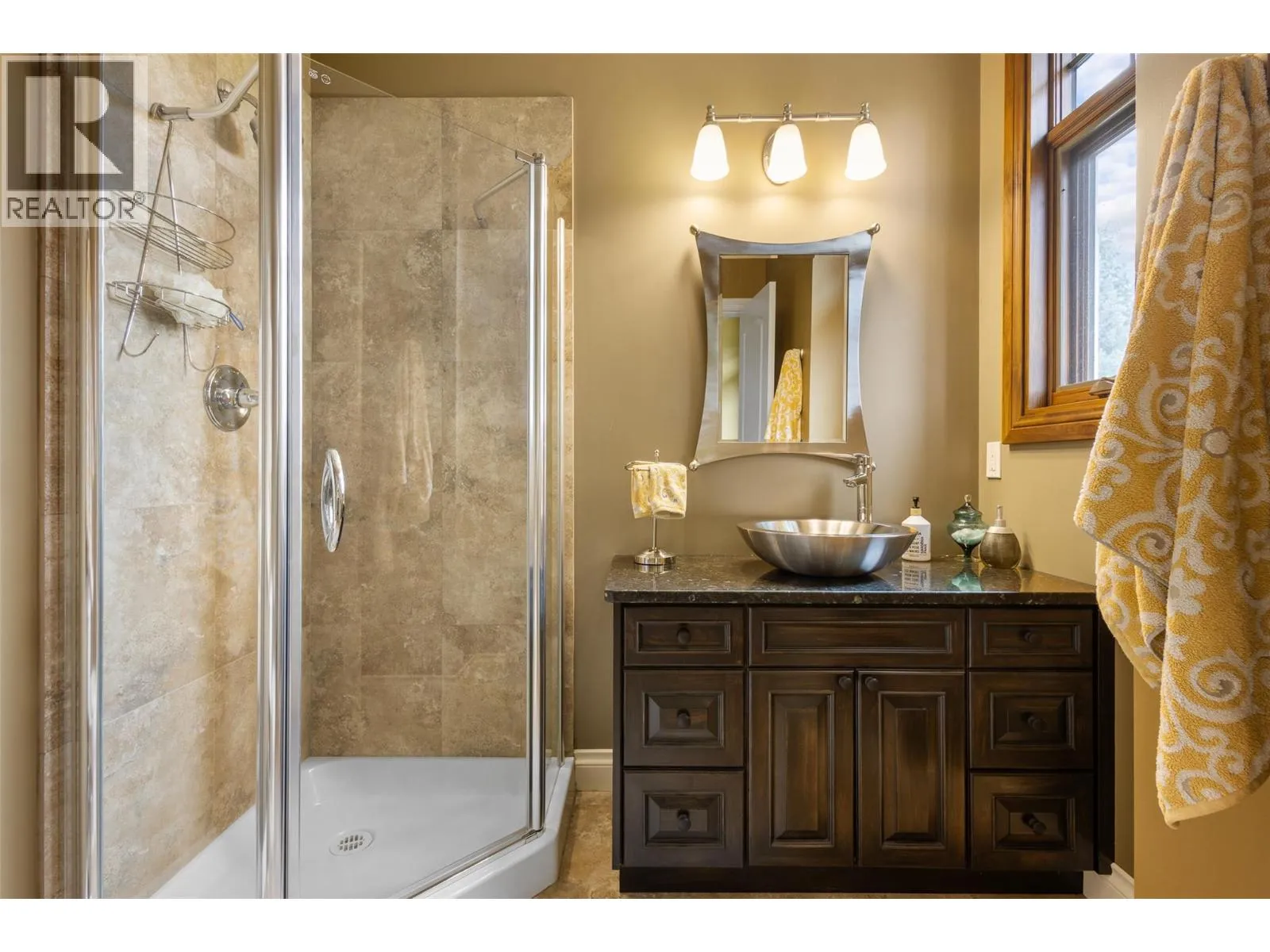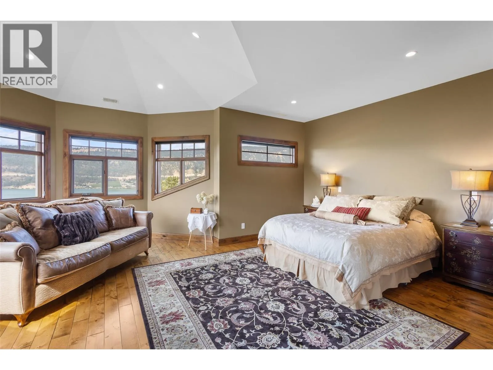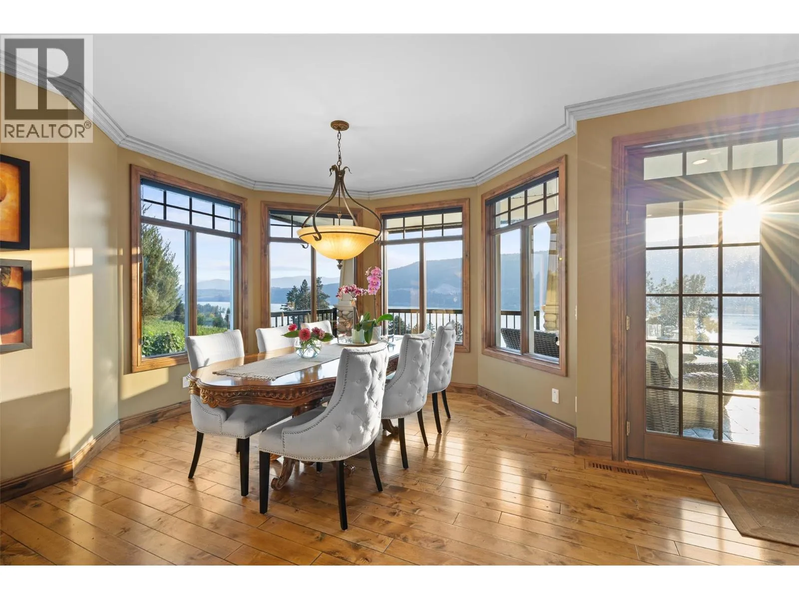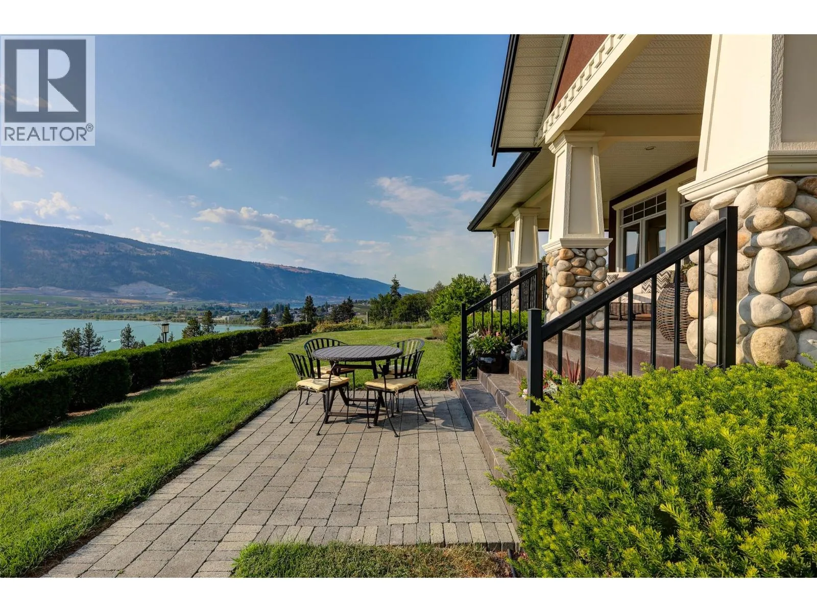 Welcome to an extraordinary custom estate offering over 6,200 square feet of refined living space. Perfectly positioned to capture expansive lake and mountain views, this one-of-a-kind property blends timeless architecture with the beauty and productivity of a thriving orchard. Set on seven manicured acres, the mature cherry orchard features approximately 3,500 Lapin, Staccato, and Centennial cherry trees, originally planted in 2003 and meticulously maintained, offering both lifestyle and income potential. Inside, craftsmanship and quality are immediately evident. Vaulted ceilings, solid wood-framed windows, and a statement fireplace anchor the main living space, while expansive windows frame the breathtaking views beyond. The gourmet custom kitchen is designed to impress, featuring commercial-grade stainless steel appliances, a gas range with pot filler, and a two-tier island ideal for entertaining and everyday living alike. The primary suite on the main level is a private retreat with direct access to the covered deck and views beyond. The spa-inspired ensuite includes dual sinks, a soaker tub, and a glass-encased shower, designed for relaxation and comfort. Upstairs, a loft area with a separate entrance and rough-in for a kitchenette offers excellent potential for a guest suite or B&B accommodation. The fully finished lower level adds versatility with a wine cellar, in-home gym (easily convertible to a media room), and abundant storage. Modern comforts include hot water on demand and thoughtfully designed systems throughout. Car enthusiasts will appreciate the triple attached garage, additional detached workshop for farm maintenance, and an oversized gated driveway with ample RV parking. Privately situated on a quiet road, yet just minutes to shopping, wineries, and schools, this exceptional estate offers the perfect blend of luxury living and agricultural opportunity in a truly breathtaking setting. (id:27476)