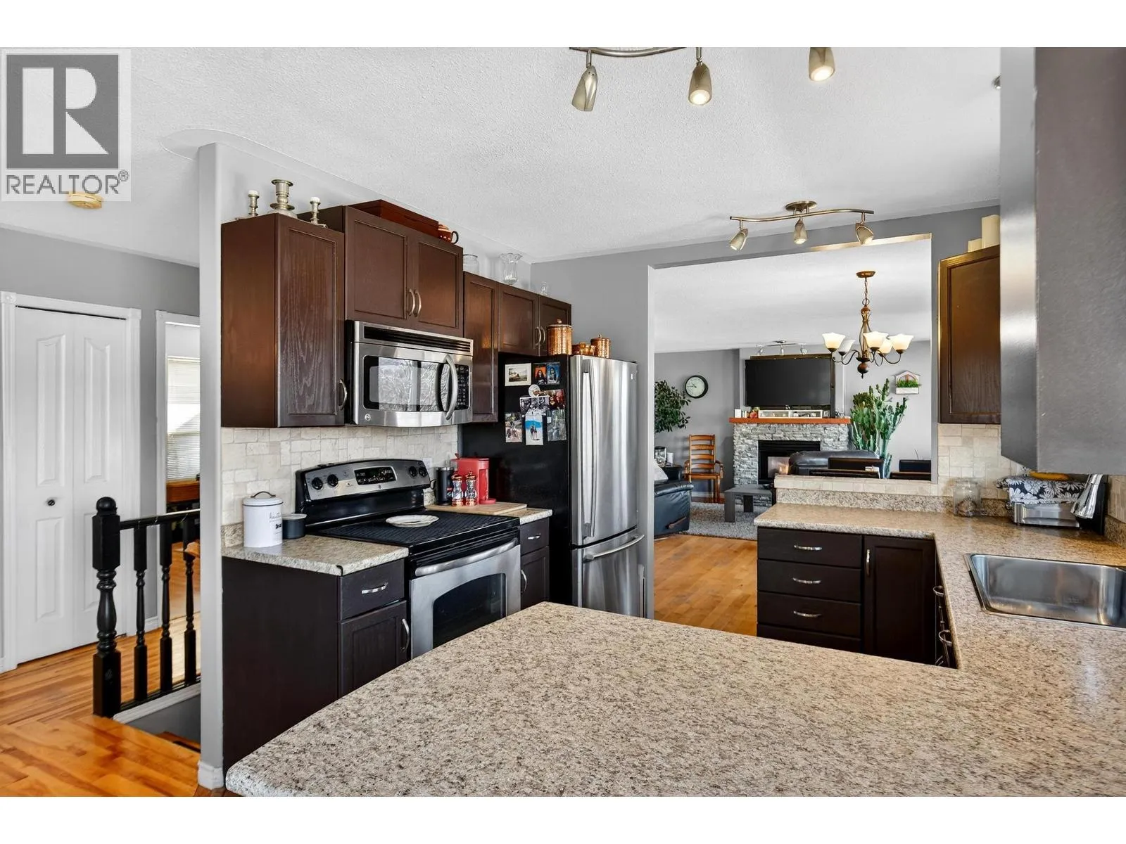 Stunning lake and mountain views paired with a flexible legal suite make this 2300 sq ft walk out rancher on a generous .29 acre lot an exceptional opportunity in Lake Country! Offering 5 bedrooms and 3 bathrooms, this home delivers space and income options with your choice of a 1 or 2 bedroom suite. The layout offers the versatility to be configured to suit your needs, whether for extended family, rental income or additional living space. The bright main level features a sun filled kitchen and living room with expansive windows that capture the views, plus two gas fireplaces and a skylight that enhances the natural light throughout. Downstairs, the legal suite includes a spacious primary bedroom with its own ensuite and walk in closet. A separate rec room with fireplace and additional bedroom in the basement provide extra living space that can be enjoyed by the main level occupants or incorporated into the suite if desired. Step outside to a massive 528 sq ft wraparound deck and multiple outdoor spaces designed for entertaining and relaxing. The fully fenced and irrigated yard includes a firepit area and outdoor shed, and is ideal for kids and pets to run and play. The heated double garage has its own 125 amp electrical panel, and the home offers 200 amp service. Located just minutes from Lake Country amenities, schools, wineries and multiple lakes and beaches, this home combines flexibility, functionality and an unbeatable setting. (id:27476)