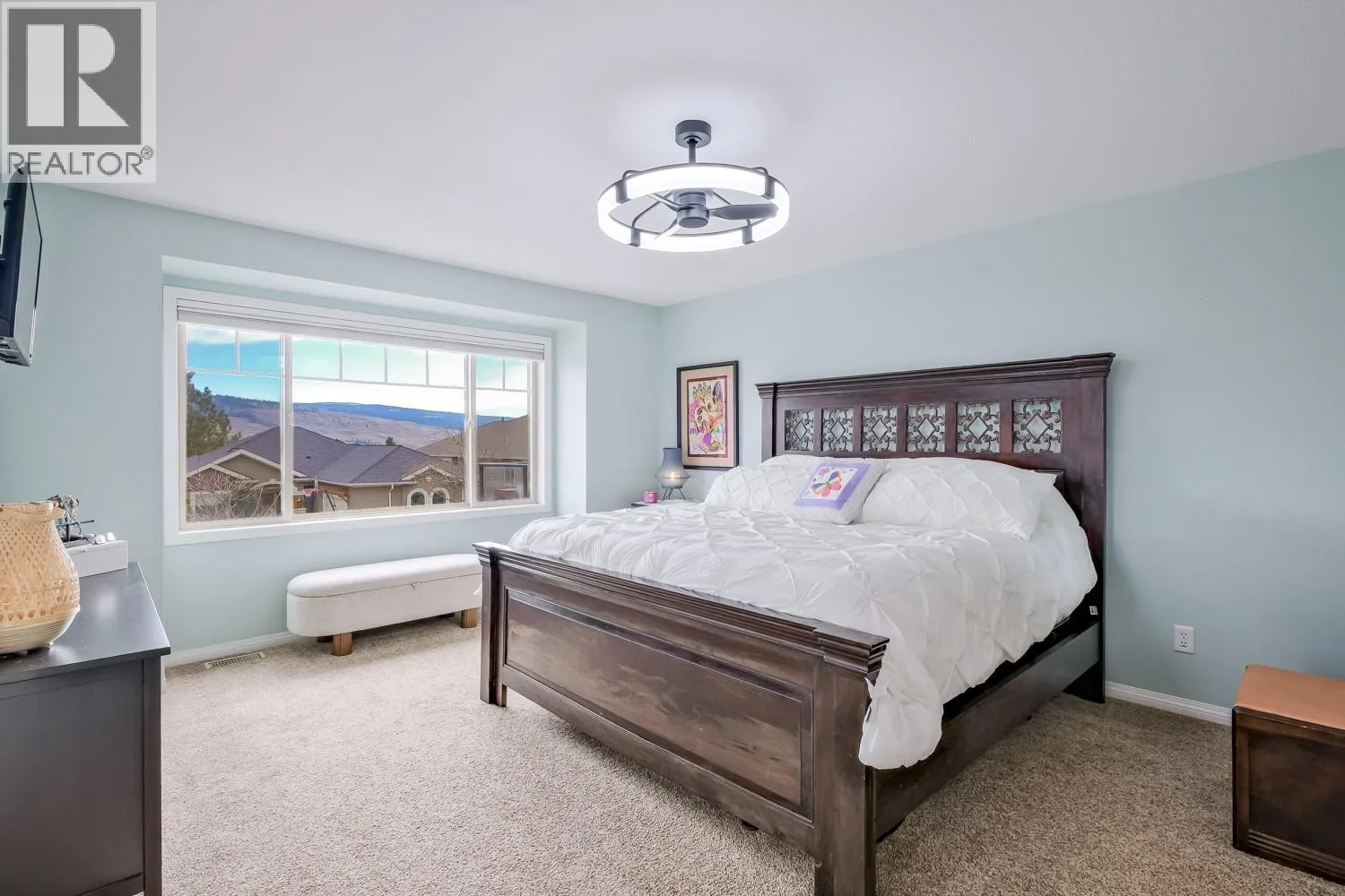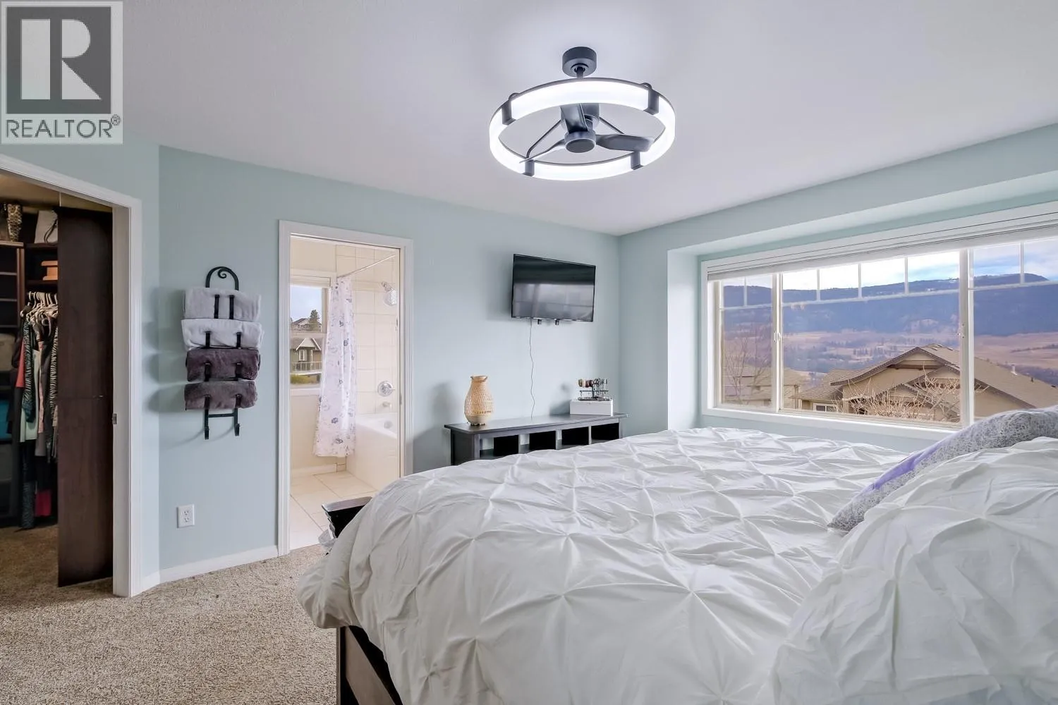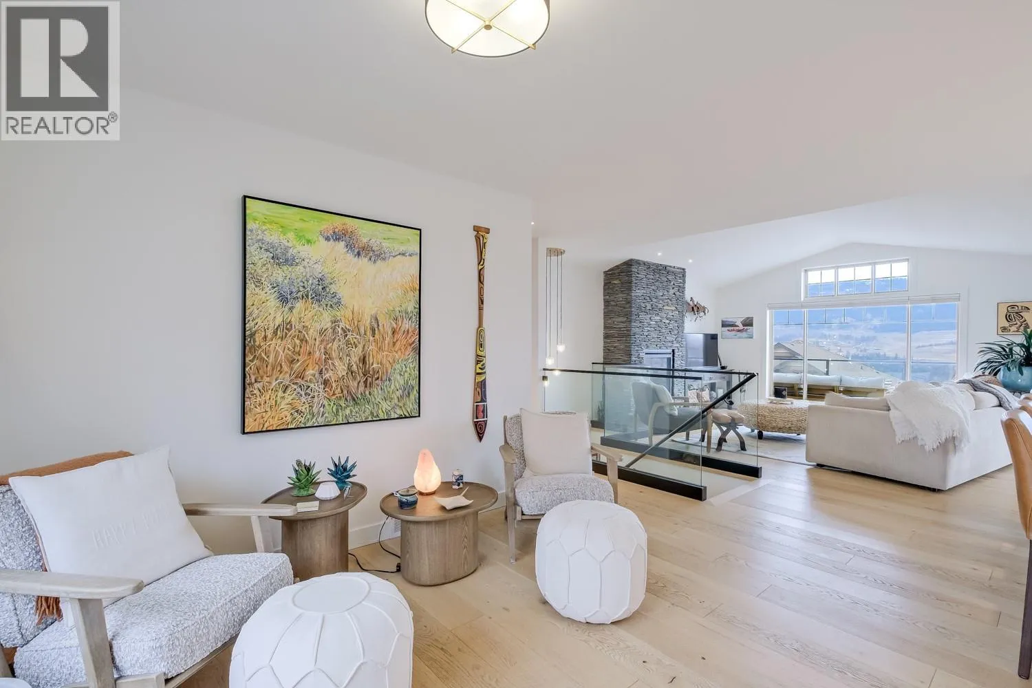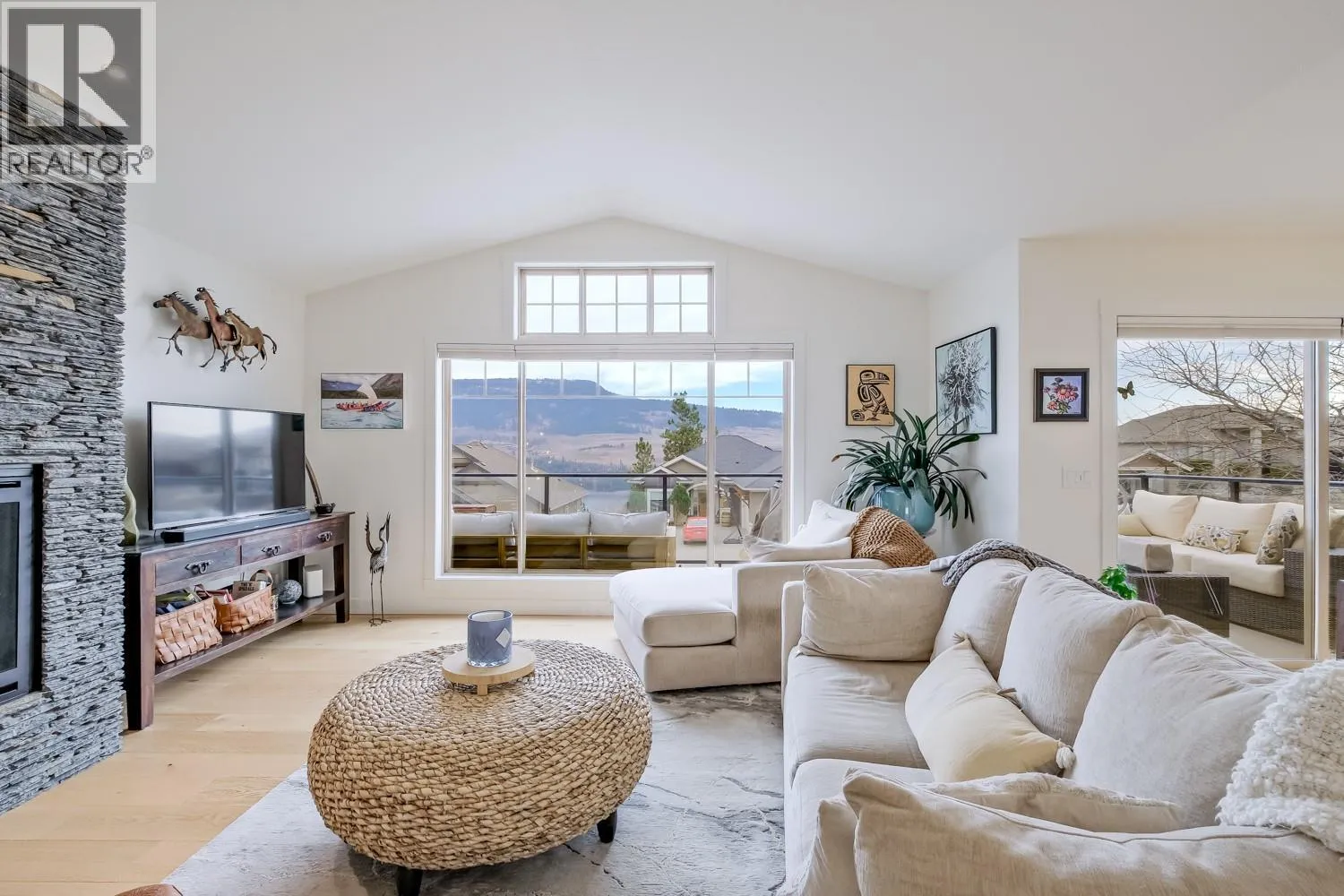 Beautifully updated home with vaulted ceilings and a bright open-concept main level, offering the perfect blend of style and functionality. The stunning kitchen renovation is the heart of the home, featuring custom cabinetry, all new appliances including a gas range and wine fridge, and an impressive 9' quartz waterfall island with abundant storage. The living area showcases the gorgeous oak hardwood, a striking stone gas fireplace, and dimmer lighting to create the perfect ambiance. Large windows fill the space with natural light, while new Hunter Douglas blinds with heat-blocking protection in the living room and primary bedroom enhance comfort and efficiency. Step outside to the front deck with peek-a-boo lake and mountain views, or enjoy the back deck with convenient stairs leading to the large private backyard, complete with a greenhouse (2025). The main home offers 3 beds/2 bath up, plus an additional bedroom on the lower level, providing flexible space for family/guests. A bright and spacious 1 bed suite with separate entrance offers excellent mortgage helper potential. This home has been thoughtfully maintained and upgraded, including new exterior paint (2024), gutter guards (2024), new water softener (2025), newer AC and hot water tank, and a freshly painted double garage (2025) with 220 power. The property also offers suite or RV parking for added convenience. A fantastic opportunity to own a move-in-ready home with income potential and beautiful surroundings! (id:27476)