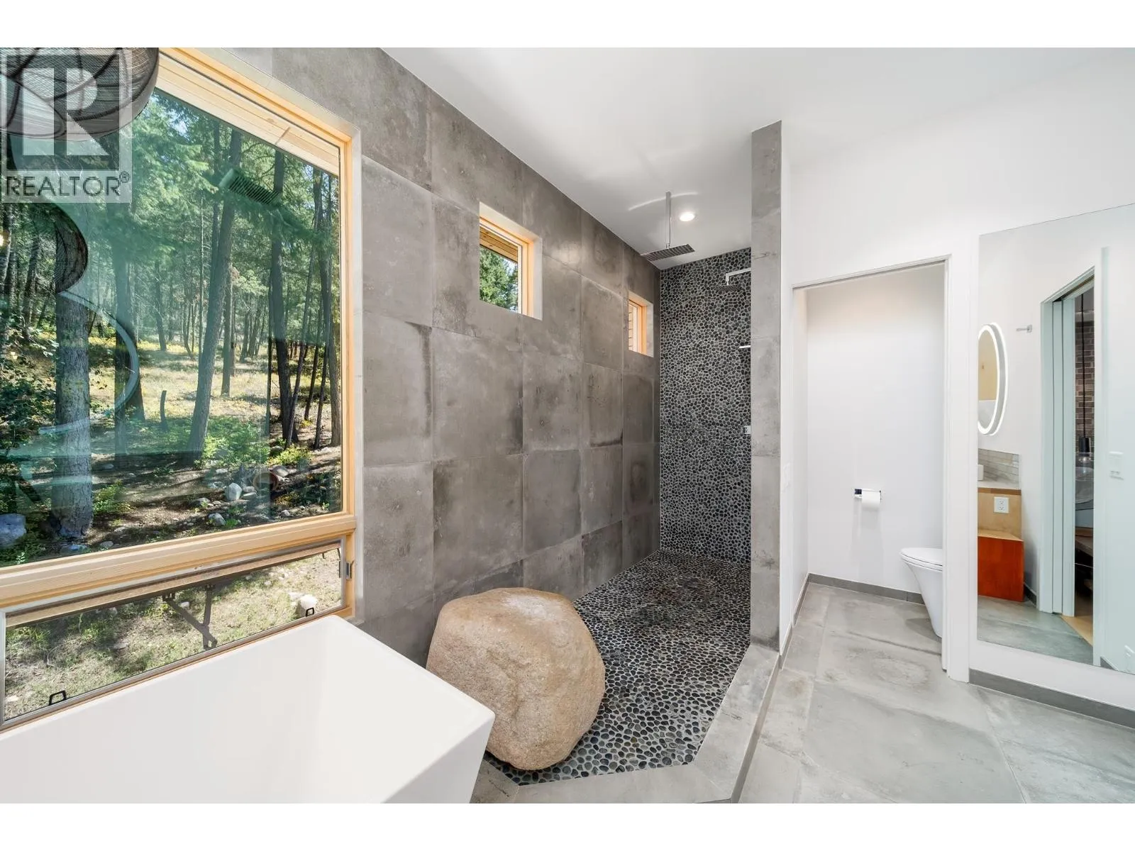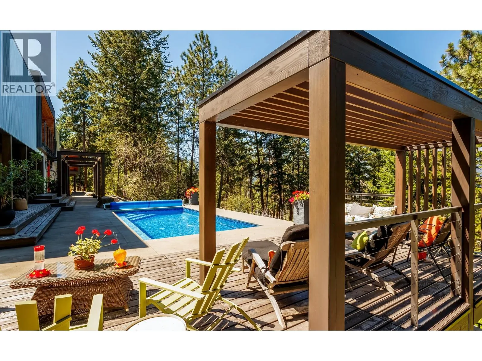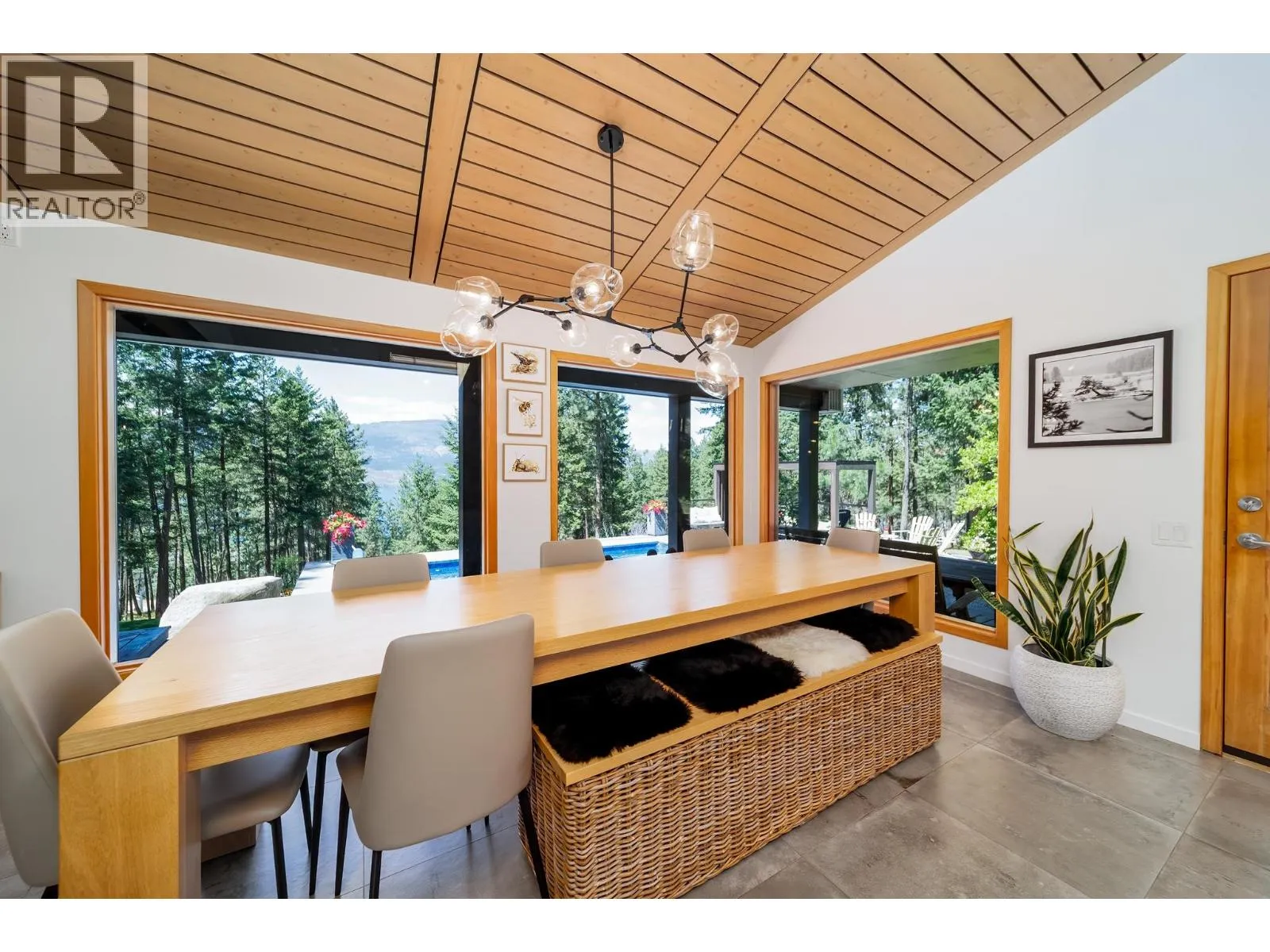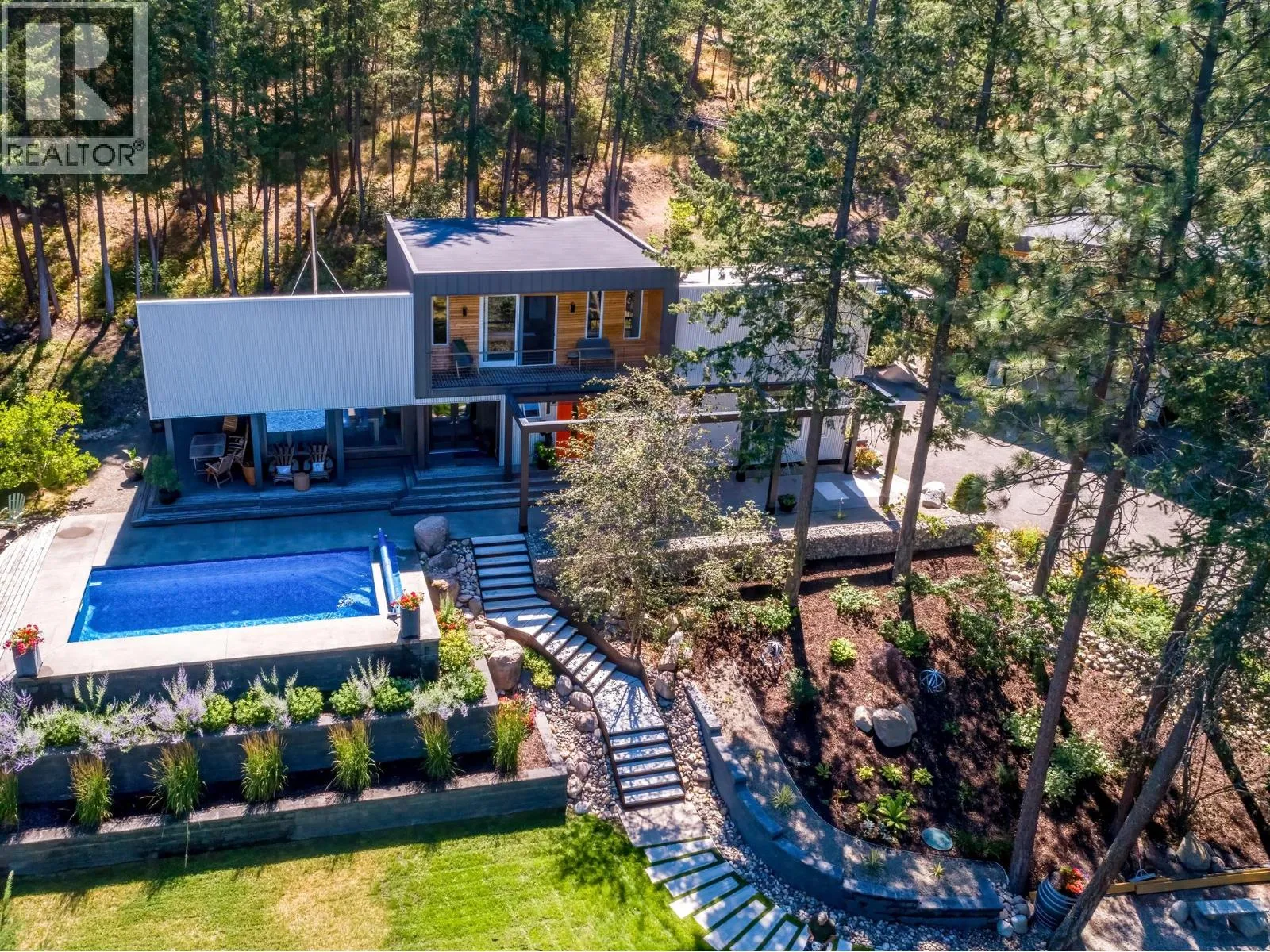A private, park-like 9.35-acre retreat in the sought-after lakeside community of Carrâs Landing. Gated and meticulously maintained, this one-of-a-kind property features a stunning 3-bedroom main home with sleek, modern interior finishing and a European spa-inspired primary ensuite. The architecture blends West Coast, industrial, and contemporary design with expansive windows, curated outdoor spaces, and seamless indoor-outdoor flow. The legal 2-bedroom carriage house above the detached garage offers stylish guest accommodation with a distinct Tofino vibe. Outdoors, enjoy a serene inground pool, intimate garden courtyards, architectural landscaping, and a unique outdoor root/wine cellar â all designed for lifestyle and entertaining. Whether youâre relaxing in the sun, hosting friends, or simply taking in the natural surroundings, this property is a true sanctuary. A rare opportunity to own a legacy estate where privacy, style, and nature converge in one of the Okanaganâs most desirable communities. (id:27476)