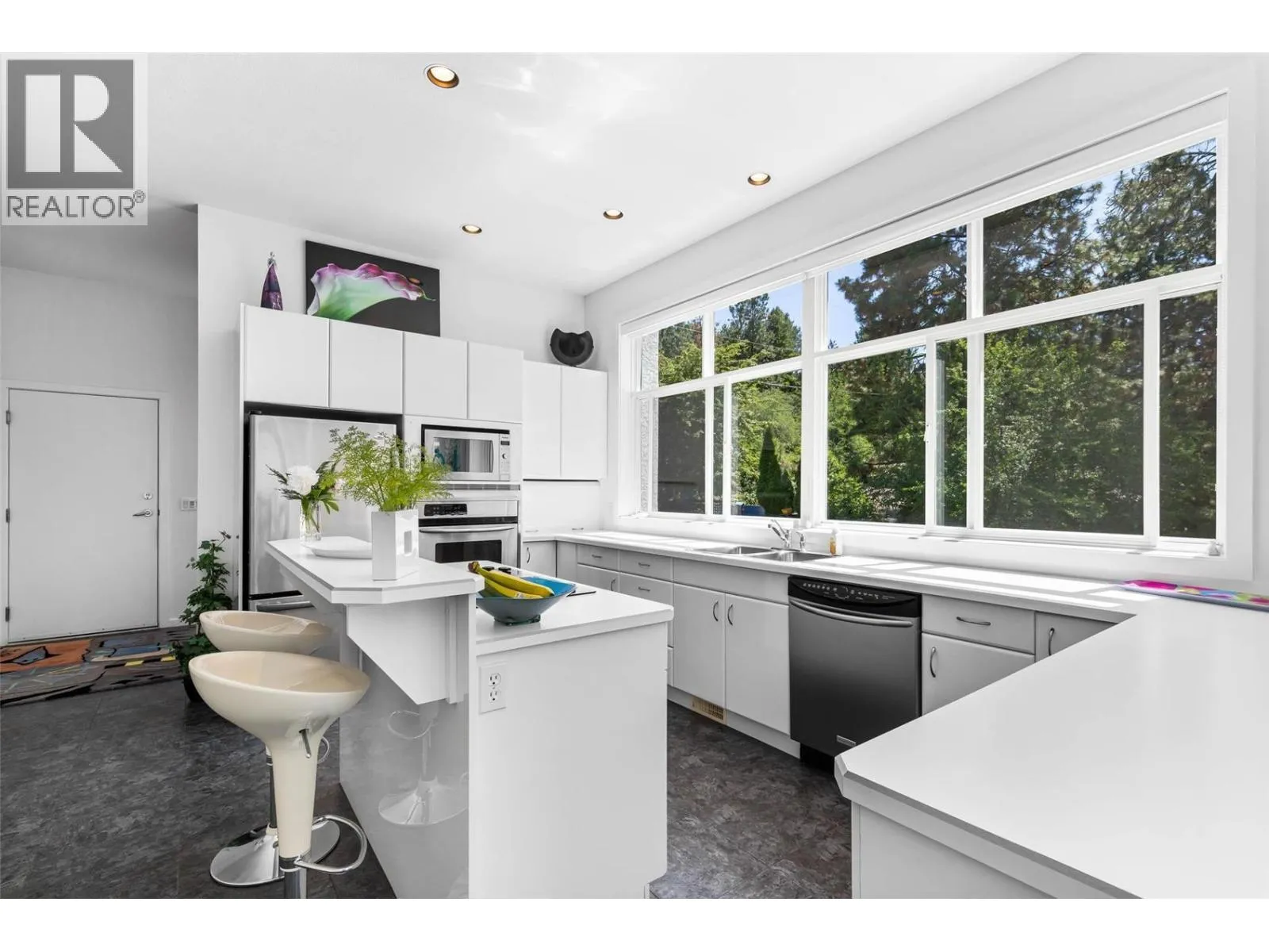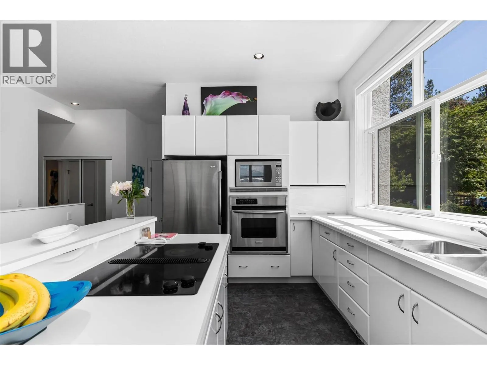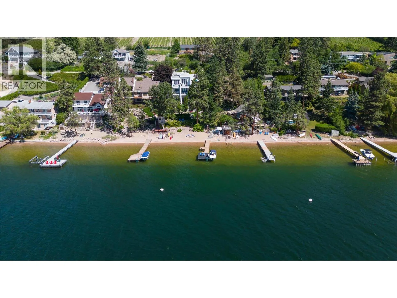 Experience elevated lakeside living in the exclusive Coral Beach community of Carrâs Landing, set within the natural beauty of Lake Country. Offering 75 feet approximately, of pristine shoreline, this exceptional waterfront property invites you to unwind with your own private beach, a dock with boat lift, and seamless access to sun-soaked days on the water. Spanning 2,969 sq. ft. across two beautifully appointed levels, this 4-bedroom, 4-bathroom residence welcomes you with a light-filled foyer where expansive windows immediately frame breathtaking lake views. The main level unfolds into an elegant open-concept living space, where a well-appointed kitchen flows effortlessly into the warm and inviting living room, complete with a cozy fireplaceâperfect for gathering with family and friends. Step onto the expansive, partially covered deck to enjoy a true indoor-outdoor lifestyle, ideal for entertaining or quiet evenings overlooking the water. The main-floor primary suite offers a peaceful retreat, complete with a private ensuite designed for comfort and relaxation. Downstairs, full-height ceilings create a bright and airy extension of the home, featuring additional bedrooms, a spacious family room, and direct access to a generous patio. A beautifully landscaped pathway gently guides you to the shoreline, completing this serene setting. Lovingly maintained by its original owner, the home reflects quality craftsmanship and pride of ownership throughout. A double garage and ample driveway parking add everyday convenience. Located just moments from a boat launch and a short stroll to 50th Parallel Estate Winery, with O'Rourke Family Estate Winery nearby, this is a rare opportunity to own a refined, move-in-ready waterfront retreat in one of Lake Countryâs most coveted locations. (id:27476)