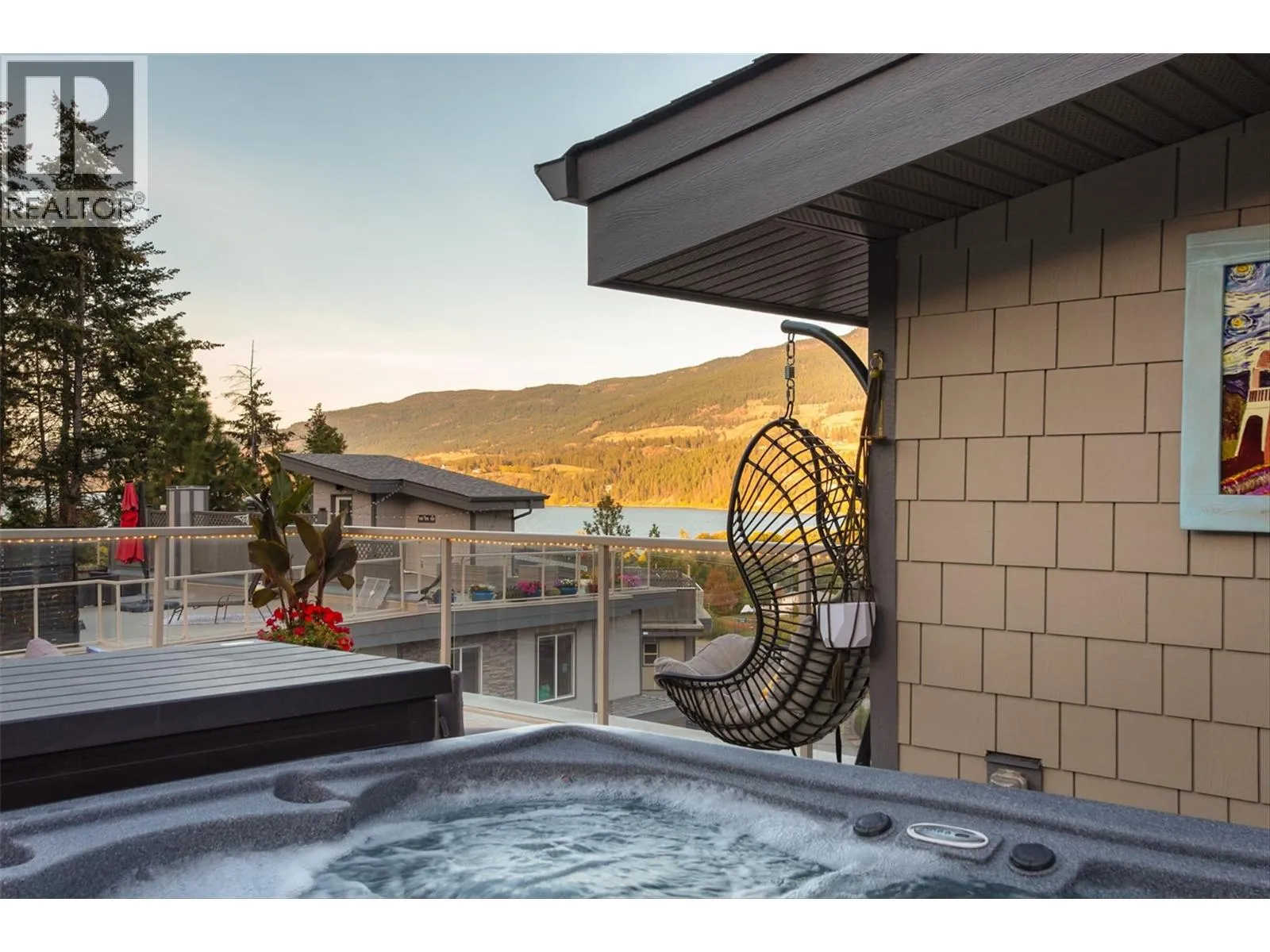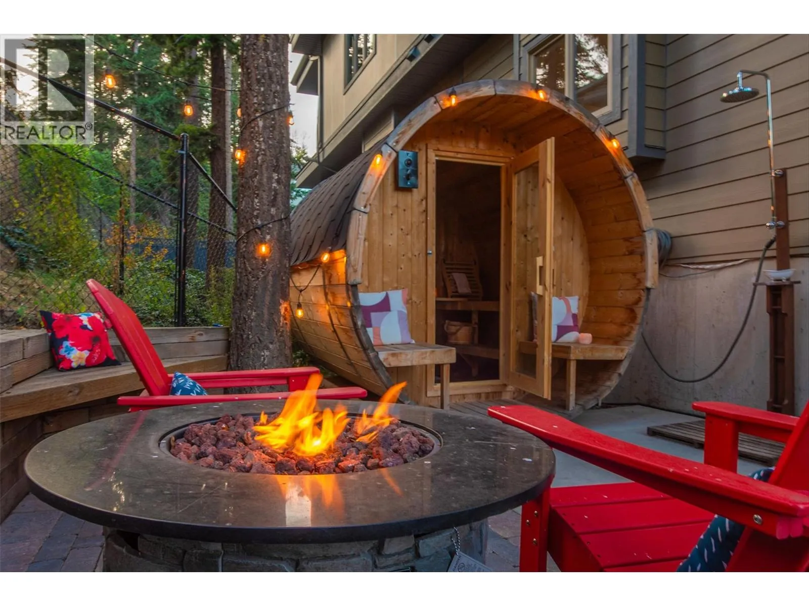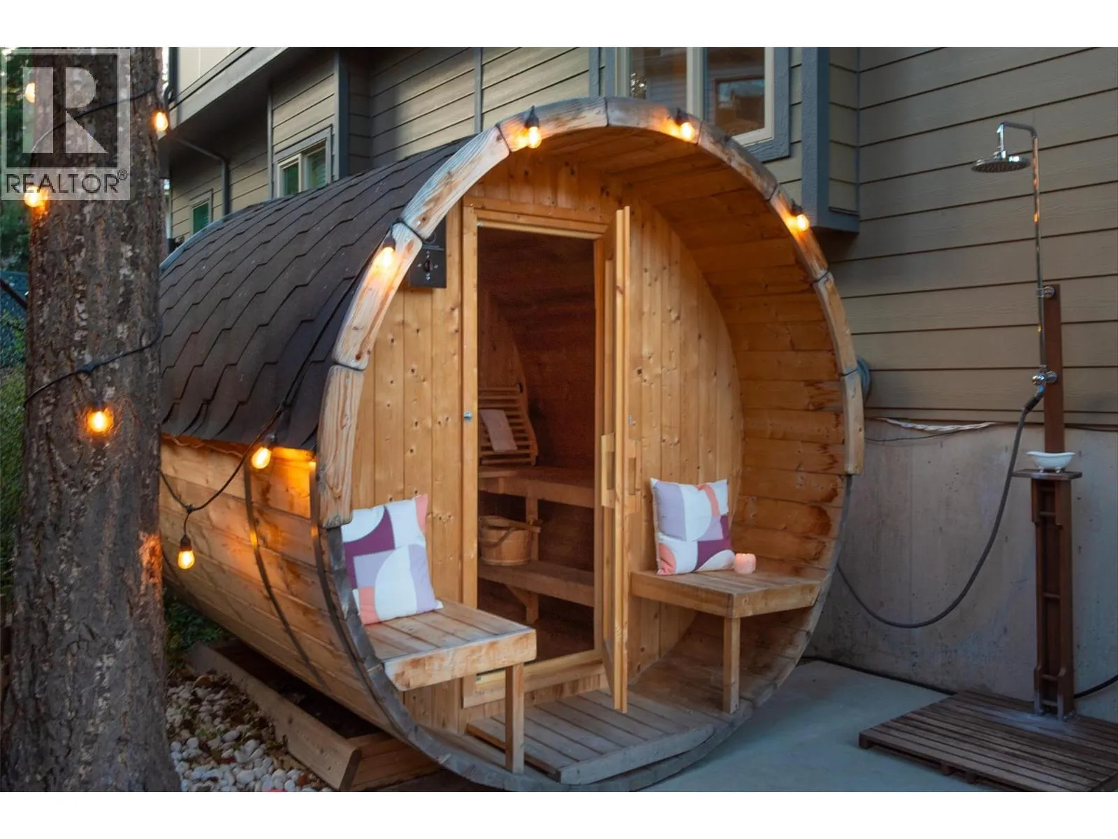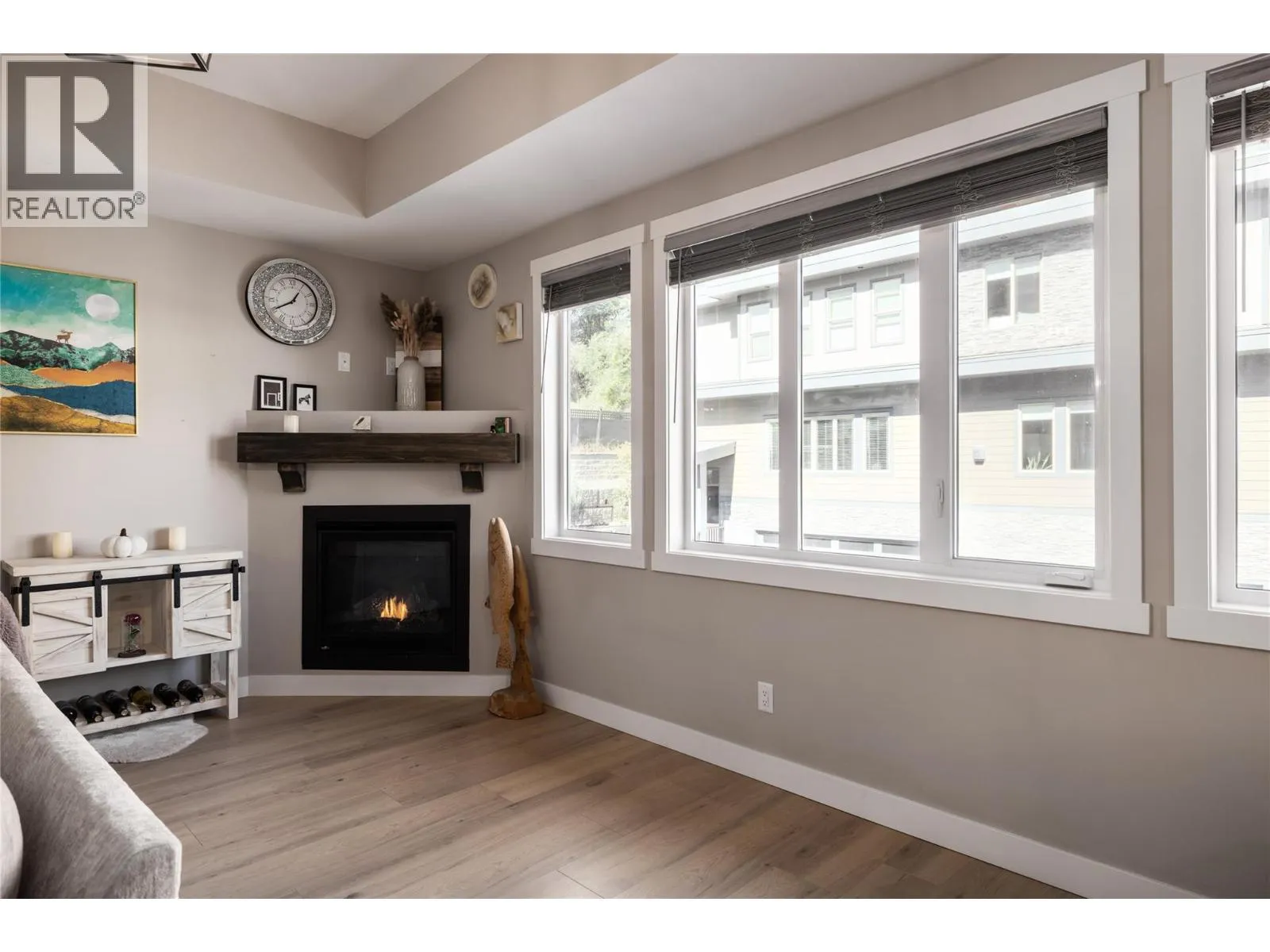 MASSIVE ROOFTOP PATIO, with unobstructed views of LAKE and MOUNTAINS. Rooftop HOT TUB and Rooftop GREENHOUSE included!! Personal gas-powered WINE BARREL SAUNA both dry or steam included! Outdoor shower for cold exposure after sauna session, personal spa experience at home! Upgrades include landscaping with built-in bench around fire pit and beautiful patio stone area. Unit has total of 4 beds & 4 baths! Only unit with NO CARPET, beautiful scratch-proof flooring. FINISHED WALK-OUT BASEMENT with PRIVATE ENTRANCE. HUGE bright kitchen with large island, modern quartz countertops, walk-in pantry, and beautiful cabinetry! OPEN CONCEPT living and dining room off kitchen with TWO fireplaces and high ceilings. Easily access BBQ, fire pit or sauna from quaint wrap around porch off kitchen to backyard. Oversized MASTER bedroom with WALK-IN closet, gorgeous ENSUITE BATHROOM with his and her sinks, private toilet room, and luxurious freestanding soaker tub! Backyard faces south, sun all day! Mature trees and lush vegetated hillside provide privacy, shade, and tranquility. Large 2 car GARAGE with built in cabinets and storage shelves. NO pet restrictions, dog pen, dog friendly community. Walking distance to Starbucks, yoga studio, Pub, Marina, Restaurants, local shops, etc. Easy access to paved bike and walking trail around Wood Lake with access to Okanagan Rail Trail, picnic area, beach, and off-leash dog park with beach, etc. (id:27476)