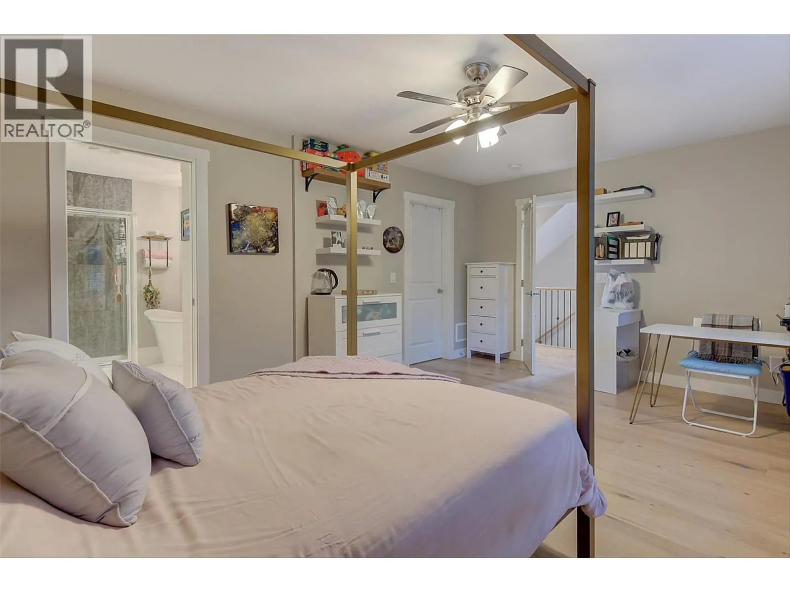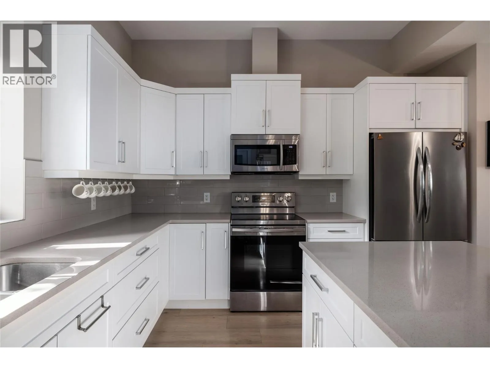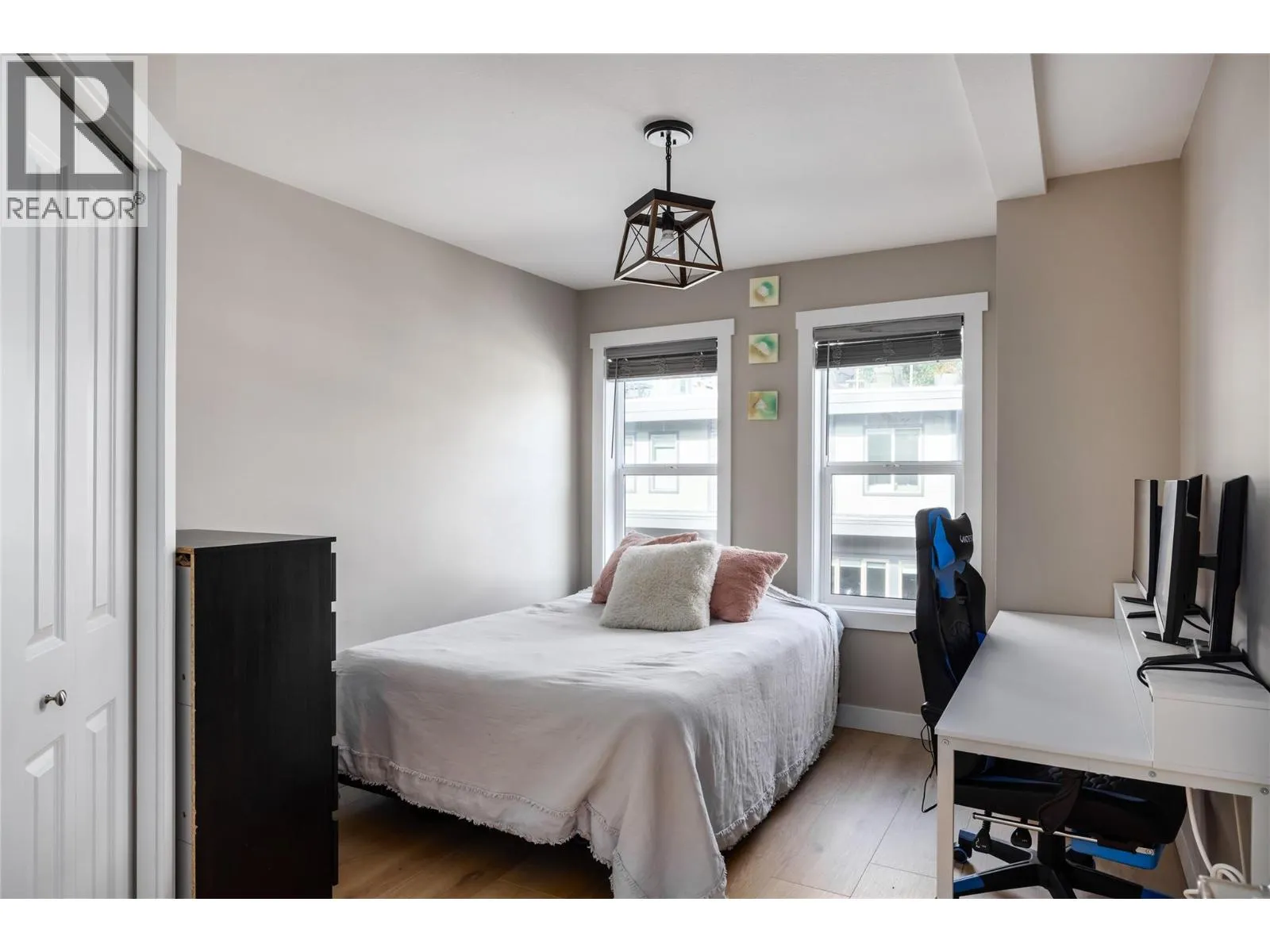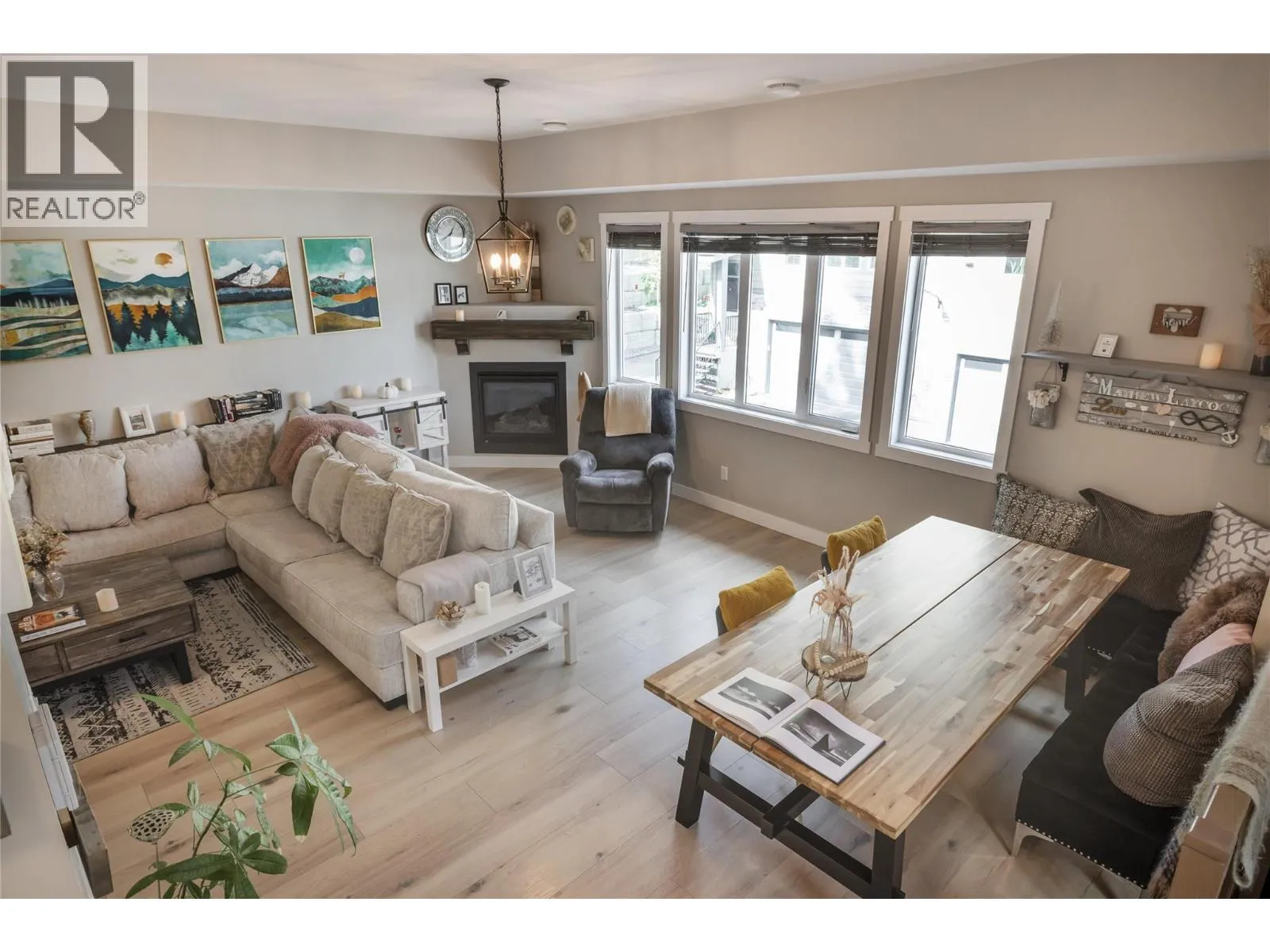 MASSIVE ROOFTOP PATIO, with unobstructed views of LAKE and MOUNTAINS. Rooftop HOT TUB and Rooftop GREENHOUSE included!! Personal gas-powered WINE BARREL SAUNA both dry or steam included! Outdoor shower for cold exposure after sauna session, personal spa experience at home! Upgrades include landscaping with built-in bench around fire pit and beautiful patio stone area. Unit has total of 4 beds & 4 baths! Only unit with NO CARPET, beautiful scratch-proof flooring. FINISHED WALK-OUT BASEMENT with PRIVATE ENTRANCE. HUGE bright kitchen with large island, modern quartz countertops, walk-in pantry, and beautiful cabinetry! OPEN CONCEPT living and dining room off kitchen with TWO fireplaces and high ceilings. Easily access BBQ, fire pit or sauna from quaint wrap around porch off kitchen to backyard. Oversized MASTER bedroom with WALK-IN closet, gorgeous ENSUITE BATHROOM with his and her sinks, private toilet room, and luxurious freestanding soaker tub! Backyard faces south, sun all day! Mature trees and lush vegetated hillside provide privacy, shade, and tranquility. Large 2 car GARAGE with built in cabinets and storage shelves. NO pet restrictions, dog pen, dog friendly community. Walking distance to Starbucks, yoga studio, Pub, Marina, Restaurants, local shops, etc. Easy access to paved bike and walking trail around Wood Lake with access to Okanagan Rail Trail, picnic area, beach, and off-leash dog park with beach, etc. (id:27476)