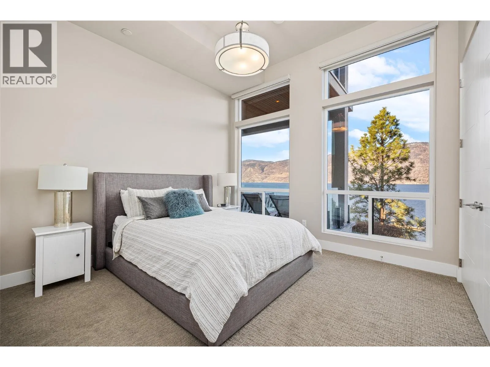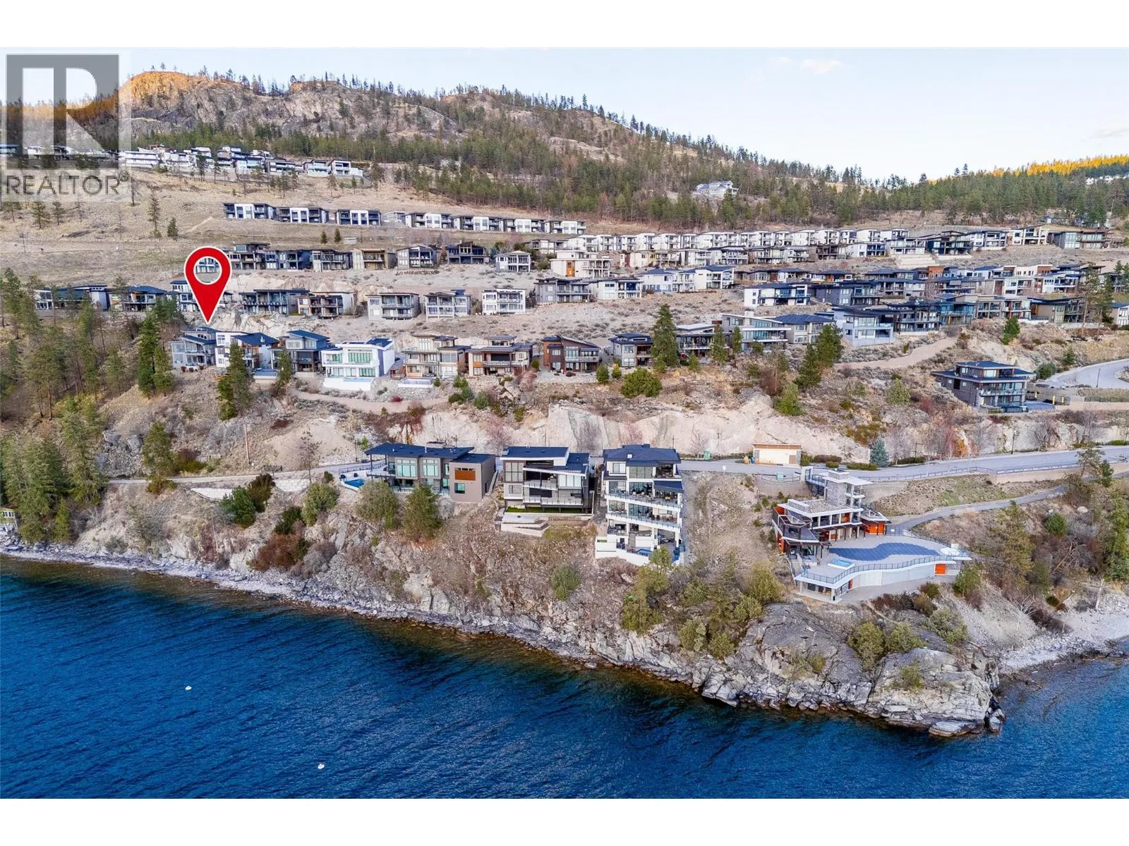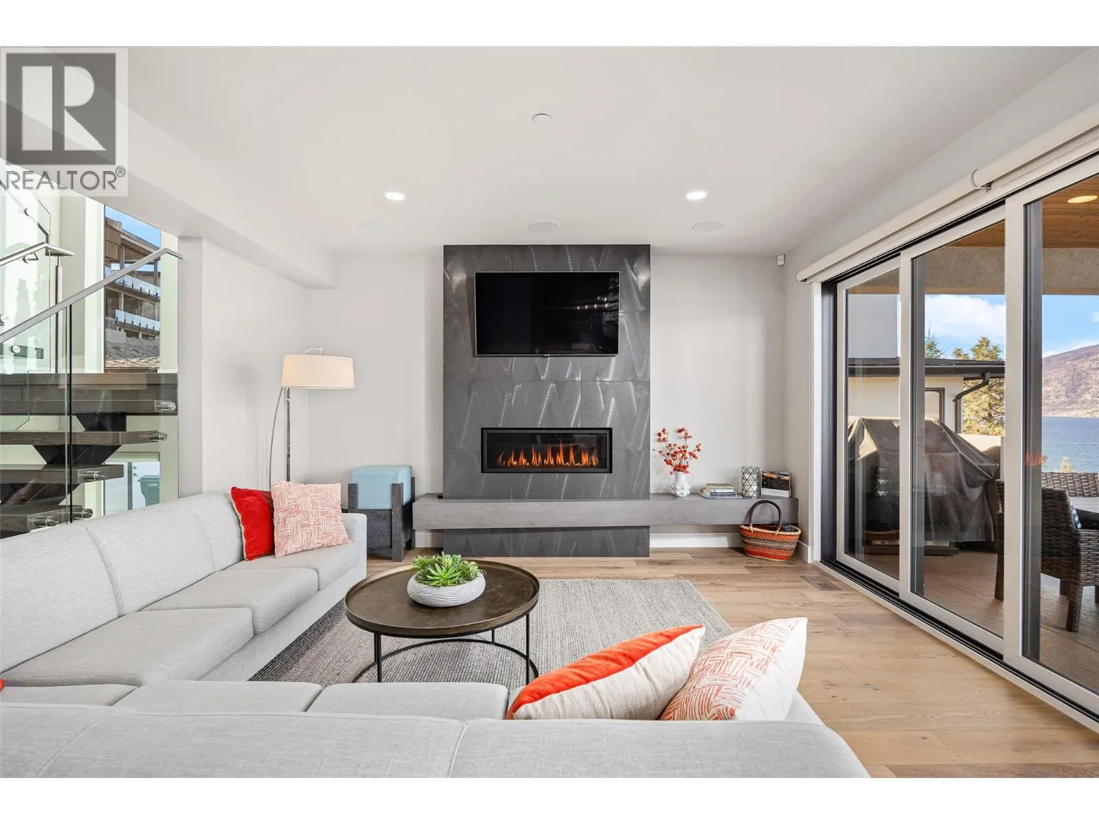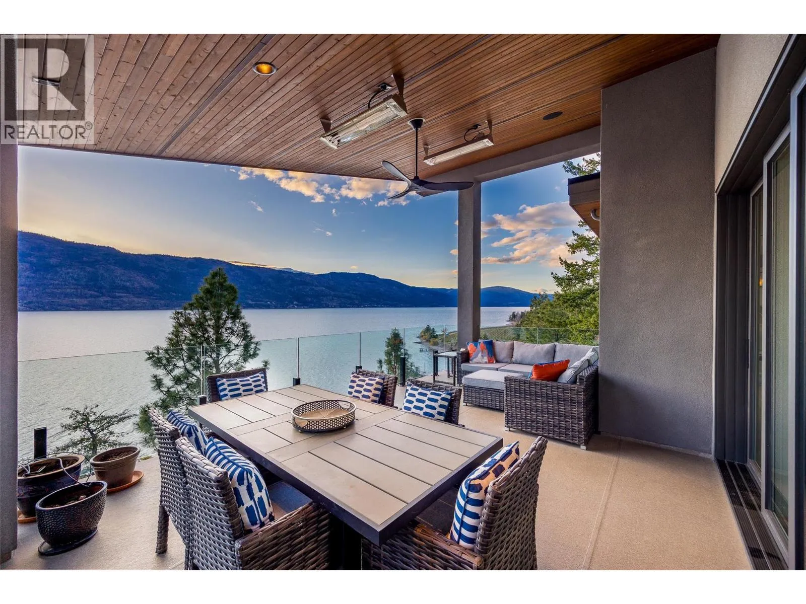 Panoramic Okanagan Lake views define this exceptional one-owner home in the prestigious Waterside community of Lakestone. Offering 3 beds + den and 4 baths across approx. 3,400 sqft., this residence is set at the end of a quiet street with only one neighbour, offering rare privacy. Designed with elegance in mind, the main level features engineered hardwood flooring, expansive floor-to-ceiling windows, and the chef-inspired kitchen including quartz countertops with a waterfall island, a butlerâs pantry with beverage fridge, and powered blinds. Step outside to the main patio with natural gas hookups, overhead heaters, seamless glass railings, and built-in speakers for seamless indoor-outdoor living. Upstairs, the entire level is dedicated to a luxurious primary retreat with a private patio, walk-in closet, and spa-like ensuite with heated floors, dual vanity, heated towel rack, and walk-in shower. The lower level offers flexible space with 2 beds & baths, a family room with a bar, and a deck wired for a hot tub with motorized phantom screens. Additional features include a double-car garage with an EV charger, main floor laundry/mudroom, and a den with a built-in wall bed. Enjoy exclusive access to Lakestoneâs resort-style amenities, including the Lake Club and Centre Club, outdoor pools, fitness centres, social spaces, public docks, over 28 km of hiking and biking trails and much more. Book your private showing today in one of the Okanaganâs most sought-after communities. (id:27476)