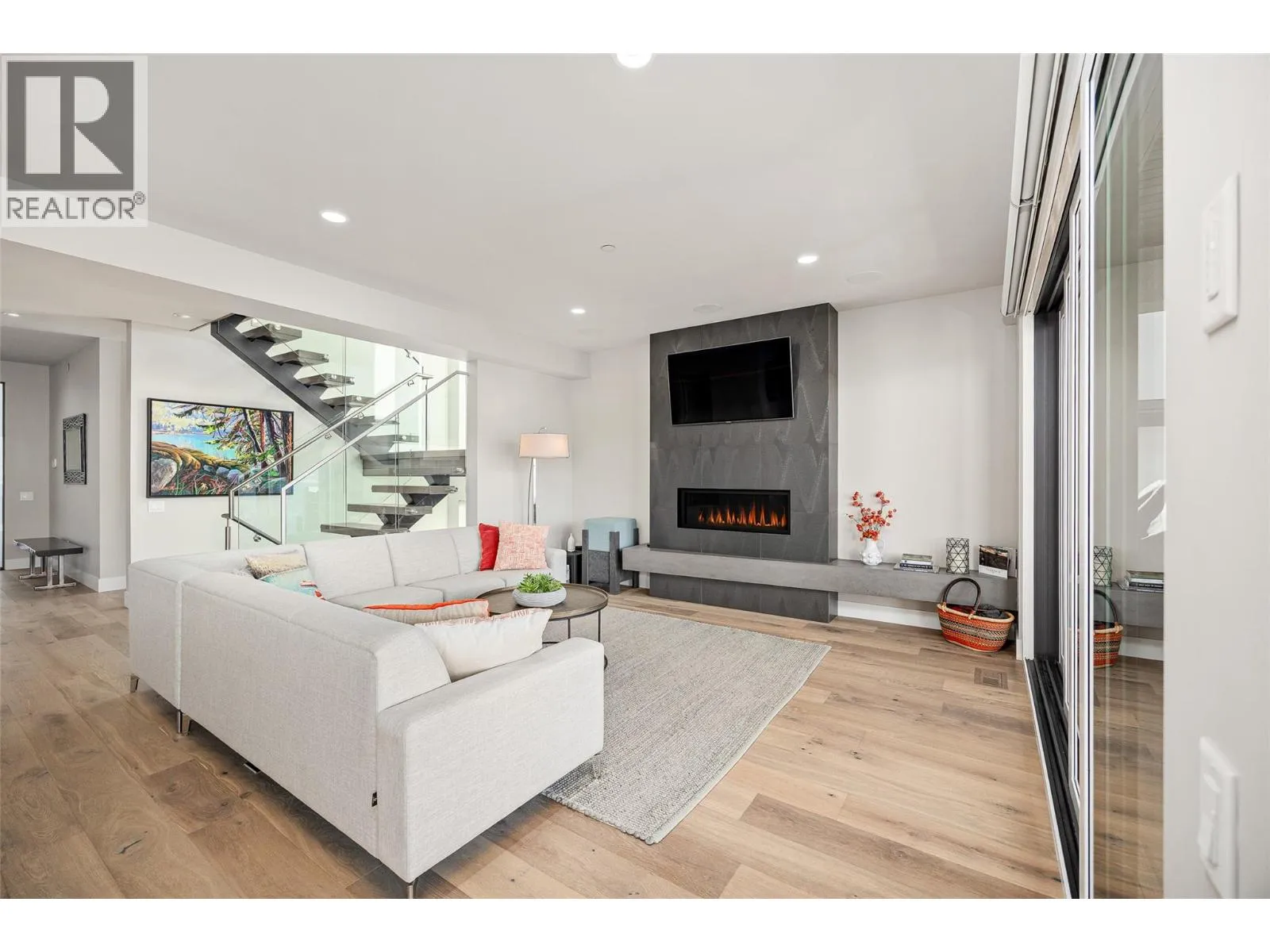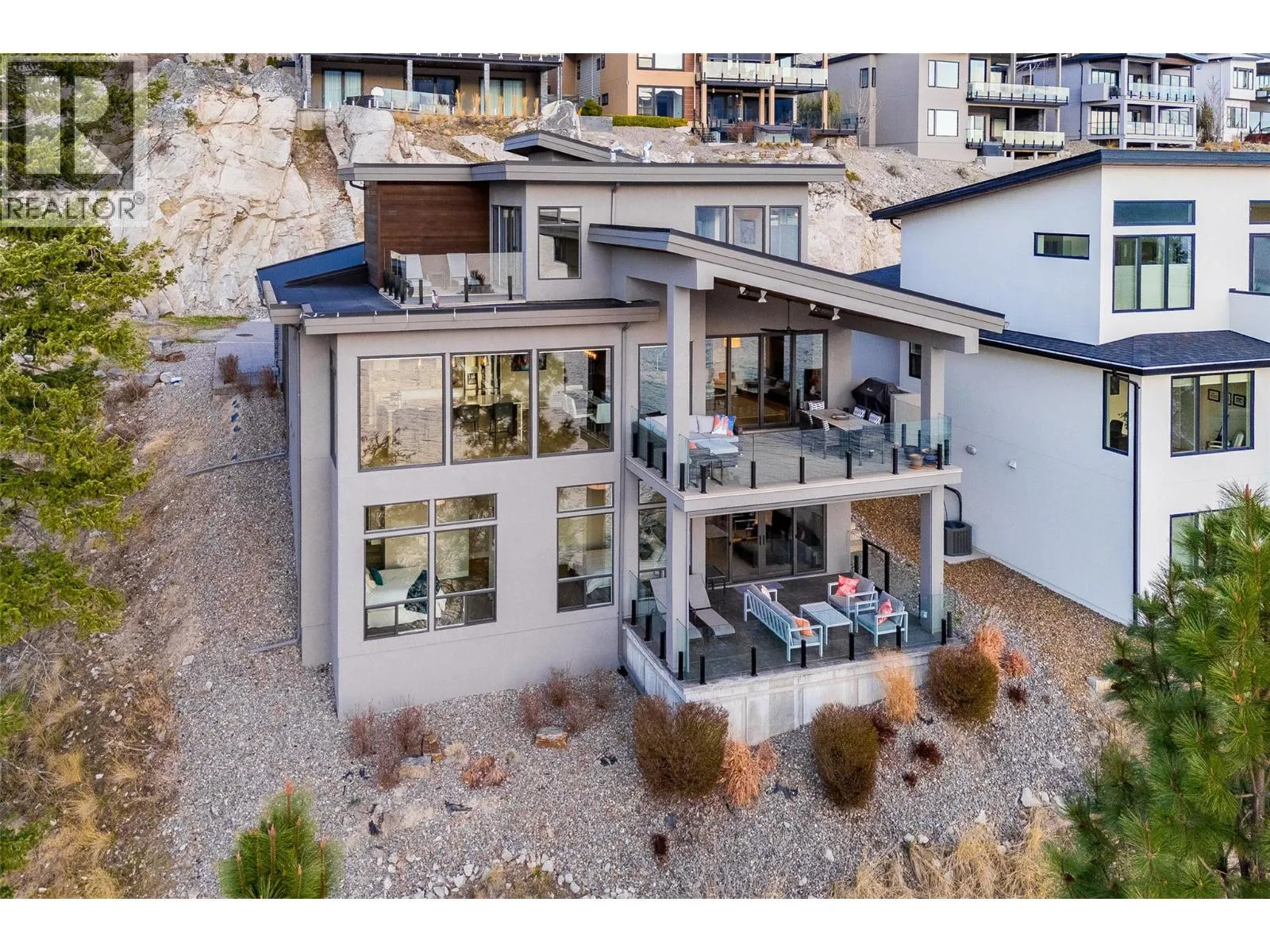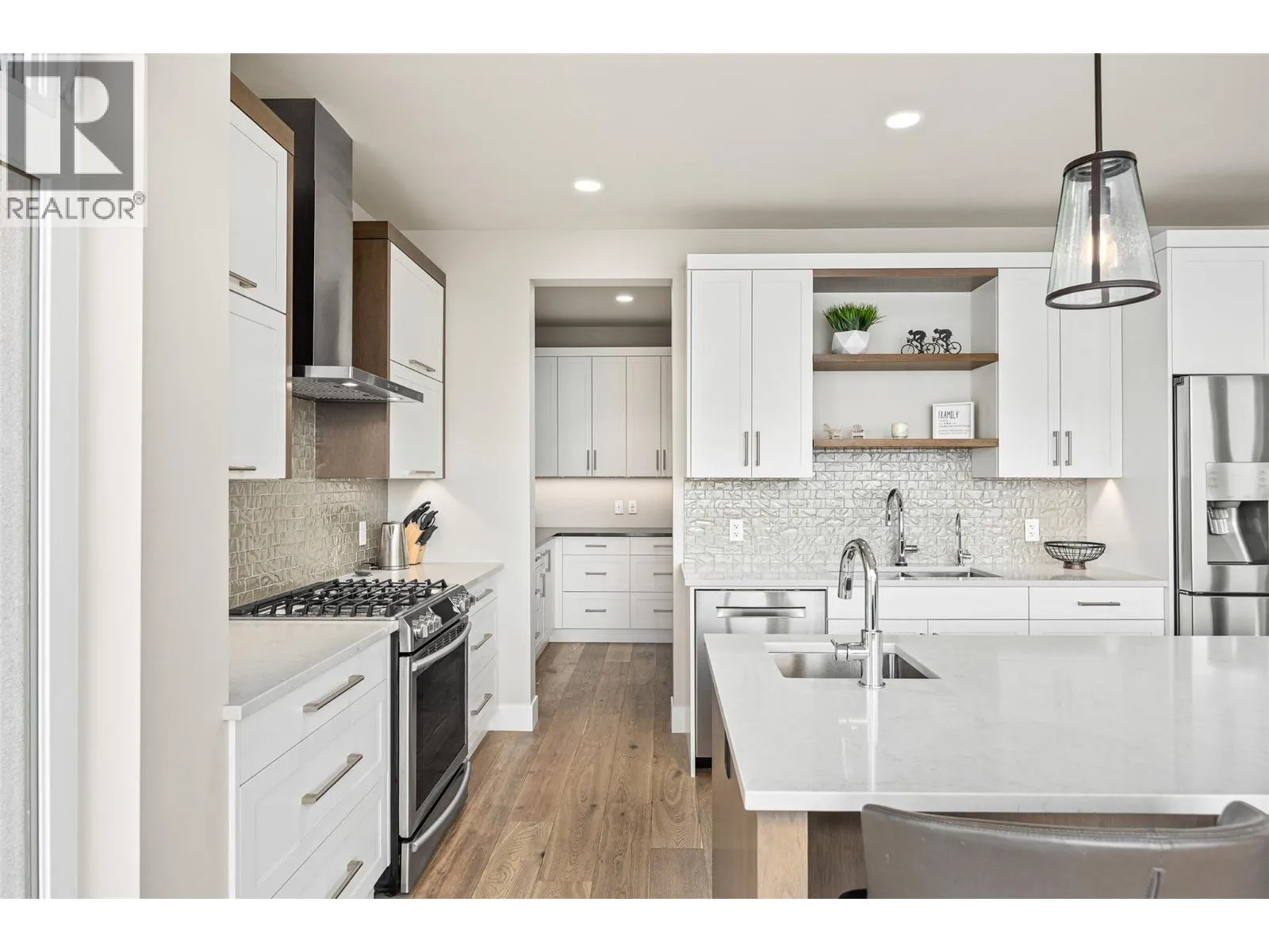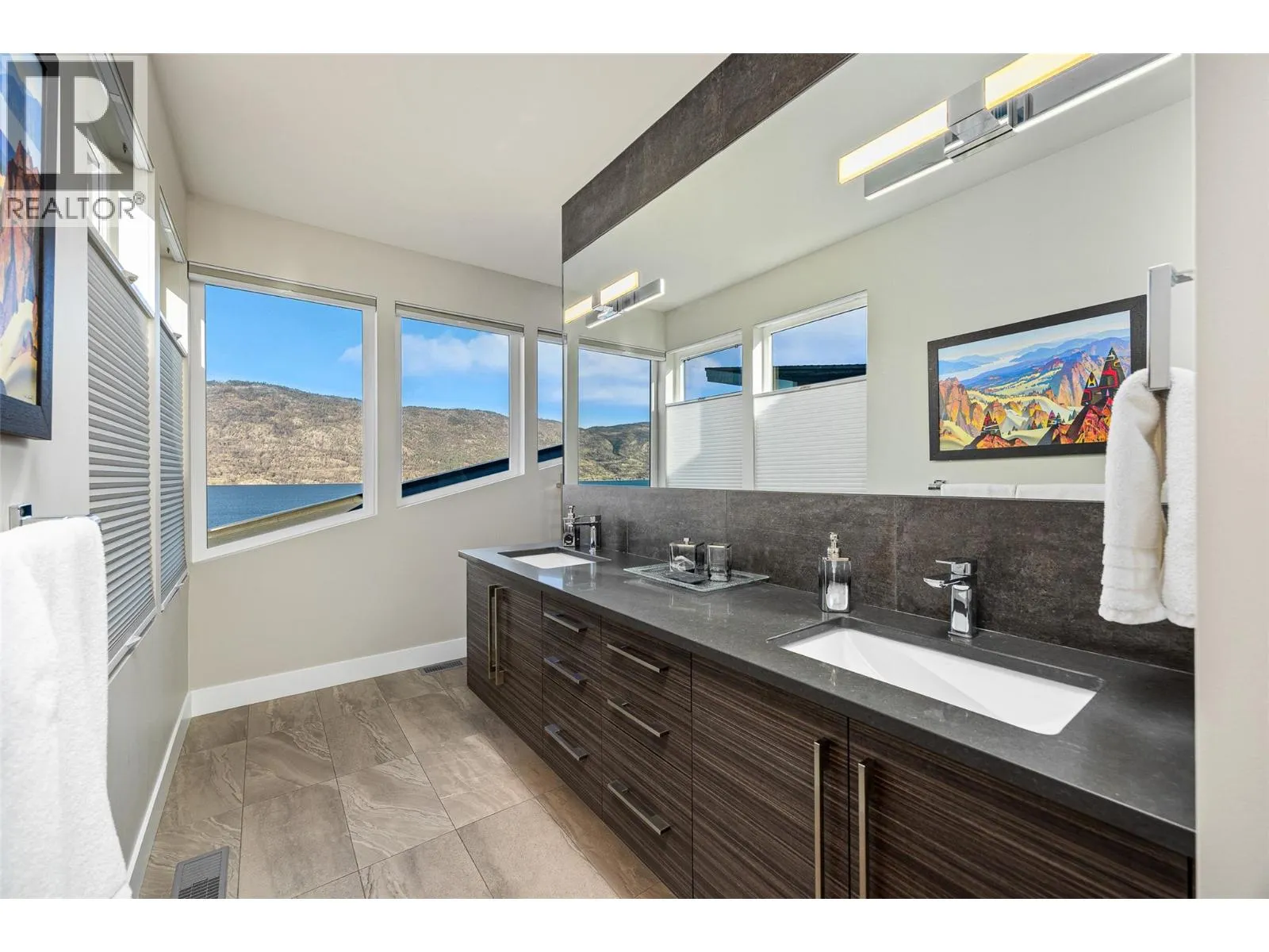 Panoramic Okanagan Lake views define this exceptional one-owner home in the prestigious Waterside community of Lakestone. Offering 3 beds + den and 4 baths across approx. 3,400 sqft., this residence is set at the end of a quiet street with only one neighbour, offering rare privacy. Designed with elegance in mind, the main level features engineered hardwood flooring, expansive floor-to-ceiling windows, and the chef-inspired kitchen including quartz countertops with a waterfall island, a butlerâs pantry with beverage fridge, and powered blinds. Step outside to the main patio with natural gas hookups, overhead heaters, seamless glass railings, and built-in speakers for seamless indoor-outdoor living. Upstairs, the entire level is dedicated to a luxurious primary retreat with a private patio, walk-in closet, and spa-like ensuite with heated floors, dual vanity, heated towel rack, and walk-in shower. The lower level offers flexible space with 2 beds & baths, a family room with a bar, and a deck wired for a hot tub with motorized phantom screens. Additional features include a double-car garage with an EV charger, main floor laundry/mudroom, and a den with a built-in wall bed. Enjoy exclusive access to Lakestoneâs resort-style amenities, including the Lake Club and Centre Club, outdoor pools, fitness centres, social spaces, public docks, over 28 km of hiking and biking trails and much more. Book your private showing today in one of the Okanaganâs most sought-after communities. (id:27476)