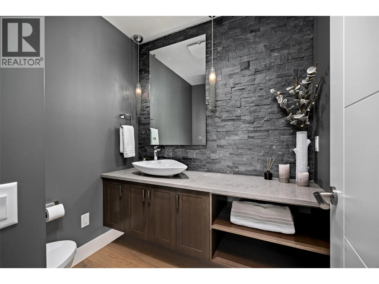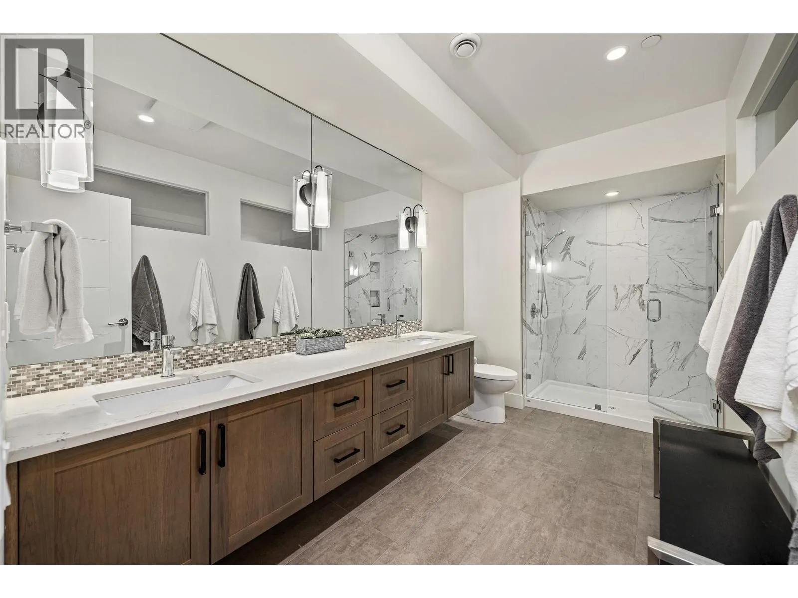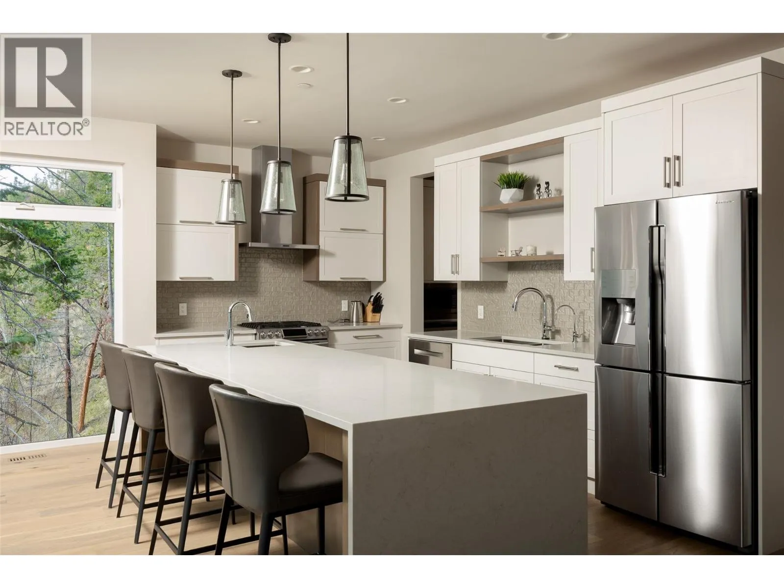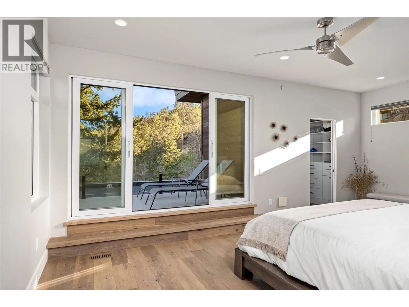 Panoramic Okanagan Lake views define this exceptional one-owner home in the prestigious Waterside community of Lakestone. Offering 3 beds + den and 4 baths across approx. 3,400 sqft., this residence is set at the end of a quiet street with only one neighbour, offering rare privacy. Designed with elegance in mind, the main level features engineered hardwood flooring, expansive floor-to-ceiling windows, and the chef-inspired kitchen including quartz countertops with a waterfall island, a butlerâs pantry with beverage fridge, and powered blinds. Step outside to the main patio with natural gas hookups, overhead heaters, seamless glass railings, and built-in speakers for seamless indoor-outdoor living. Upstairs, the entire level is dedicated to a luxurious primary retreat with a private patio, walk-in closet, and spa-like ensuite with heated floors, dual vanity, heated towel rack, and walk-in shower. The lower level offers flexible space with 2 beds & baths, a family room with a bar, and a deck wired for a hot tub with motorized phantom screens. Additional features include a double-car garage with an EV charger, main floor laundry/mudroom, and a den with a built-in wall bed. Enjoy exclusive access to Lakestoneâs resort-style amenities, including the Lake Club and Centre Club, outdoor pools, fitness centres, social spaces, public docks, over 28 km of hiking and biking trails and much more. Book your private showing today in one of the Okanaganâs most sought-after communities. (id:27476)