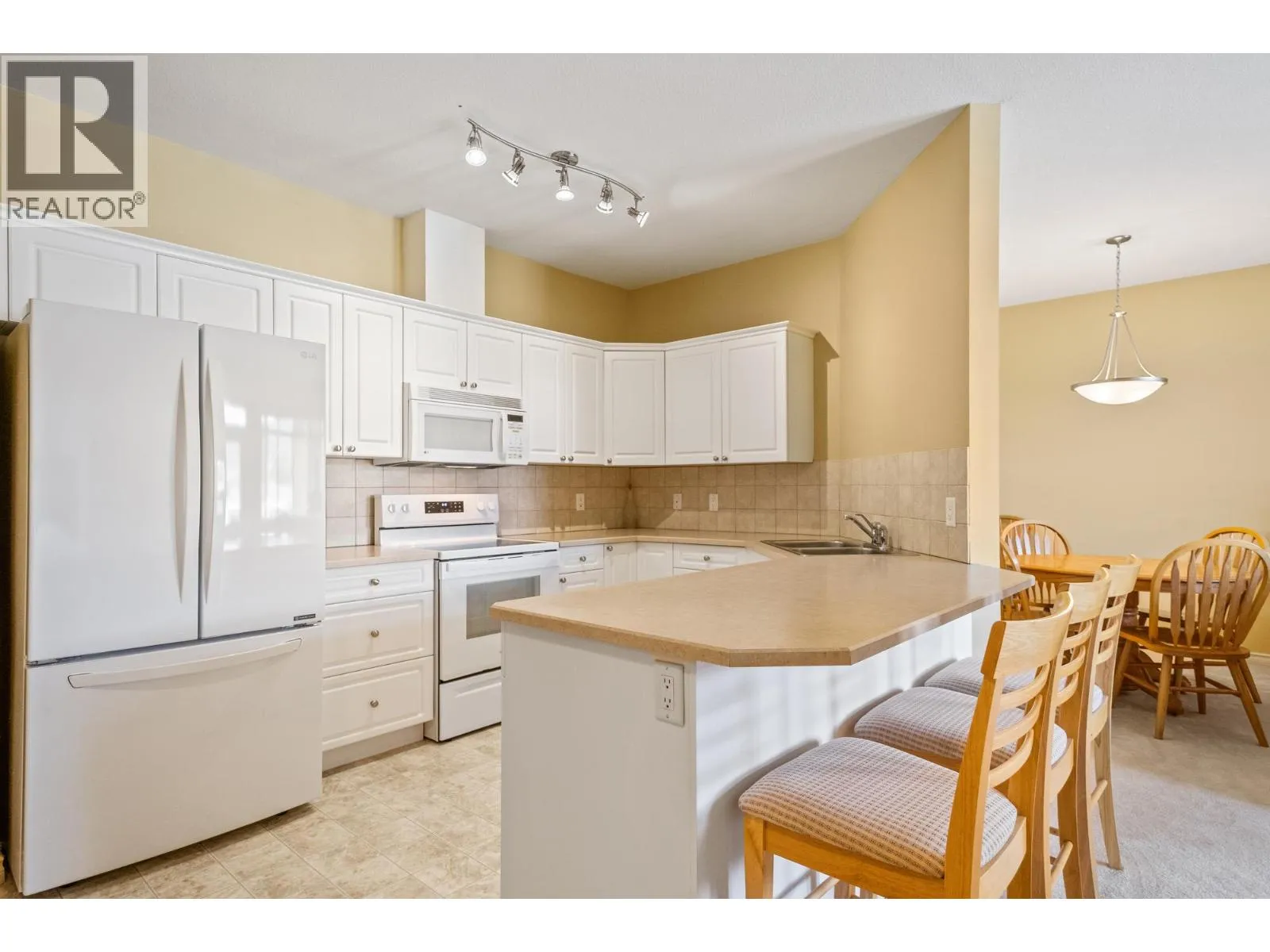 Experience elevated lakefront living in this top-floor 3-bedroom, 2-bath at Emerald Beach Villas on Wood Lake, where ever-changingâoften turquoiseâwater views create a truly captivating backdrop. Offering over 1,300 sq. ft., this beautifully appointed home is bright and inviting, with soaring ceilings, soft neutral tones, and sweeping panoramic lake views throughout. Step out onto the expansive deck and take in the settingâperfect for morning coffee after a swim, an afternoon on the water, or unwinding in the hot tub. Just steps away, enjoy the sandy beach and the ease of true waterfront living. This gated community delivers a full resort-style experience, featuring a heated outdoor pool, private beach, marina, clubhouse with games room and fitness area, basketball court, and beautifully maintained grounds. A private single-car garage (#9) is conveniently located close to the unit, with nearby elevator access providing direct access to the top floor for added ease. Boat effortlessly between Wood Lake and Kalamalka Lake via the picturesque Oyama Channel. A marina upgrade has been approved, with boat slip available for purchase through strata (as of Jan 14, 2026). Located in the heart of Lake Country, youâre within walking or biking distance to schools, parks, tennis courts, shops, cafes, and the Okanagan Rail Trail. Central to Kelowna, UBCO, the airport, hospitals and Vernon. A rare opportunity to own an affordable waterfront home and fully embrace the Okanagan lifestyle. (id:27476)