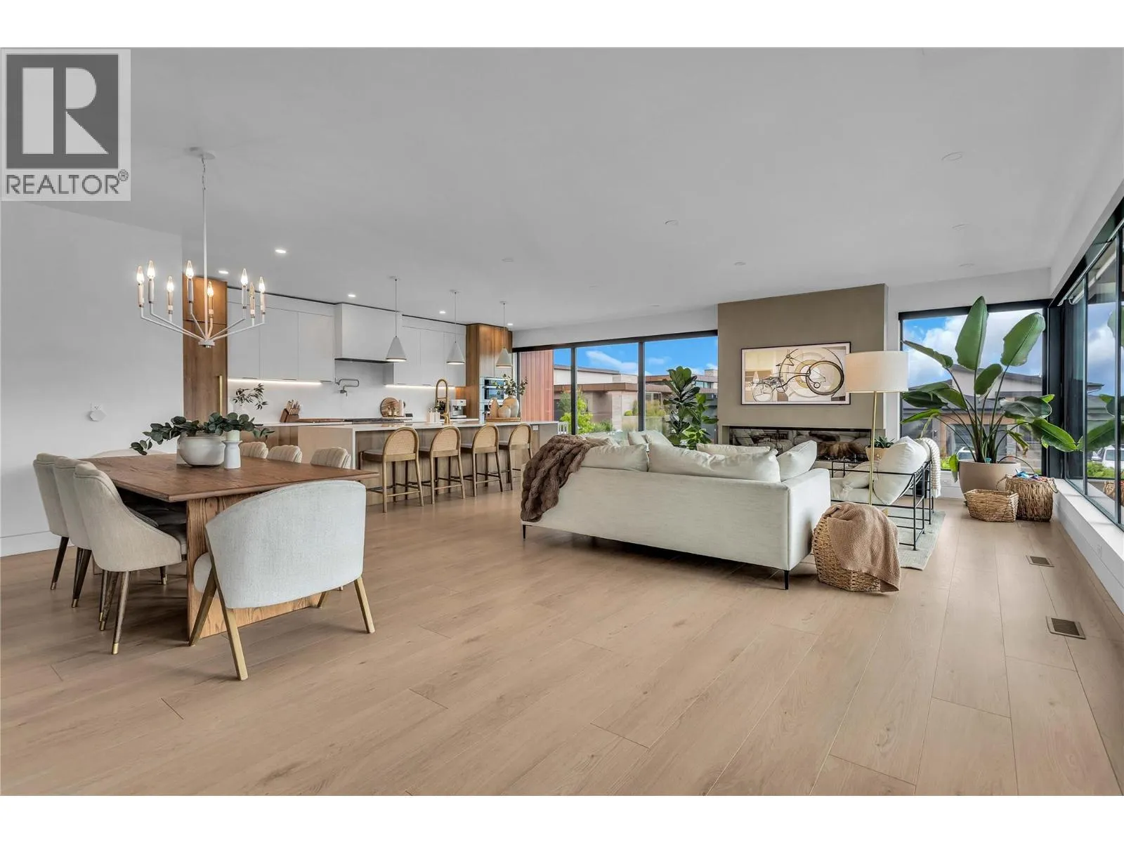 Architectural masterpiece situated on one of the largest flat lots in Lakestone, this stunning modern home is the definition of refined Okanagan living. Thoughtfully designed and executed, this 5-bedroom, 4-bath residence blends striking modern lines with warm, luxurious finishes throughout. Expansive windows fill the home with natural light and seamlessly connect indoor and outdoor spaces. Every detail has been intentionally curated, creating a home that feels both sophisticated and effortlessly livable. At the heart of the home, a showpiece chefâs kitchen features premium Miele appliances, custom cabinetry, and elevated finishes that perfectly balance form and function. From here, step outside to your private resort-like yard. The meticulously designed landscaping, architectural concrete work, outdoor kitchen, and saltwater pool transform the backyard into a true retreat - ideal for entertaining or unwinding under the Okanagan sun. Set within one of the regionâs most desirable communities, this exceptional home is just minutes from the airport, renowned wineries, and Lakestoneâs exclusive private amenities. Residents can enjoy access to world-class facilities, including the Lake Club - featuring an infinity-edge pool, two hot tubs, an outdoor kitchen with BBQs, and a fully equipped state-of-the-art fitness centre. This is Okanagan living at its absolute best. (id:27476)