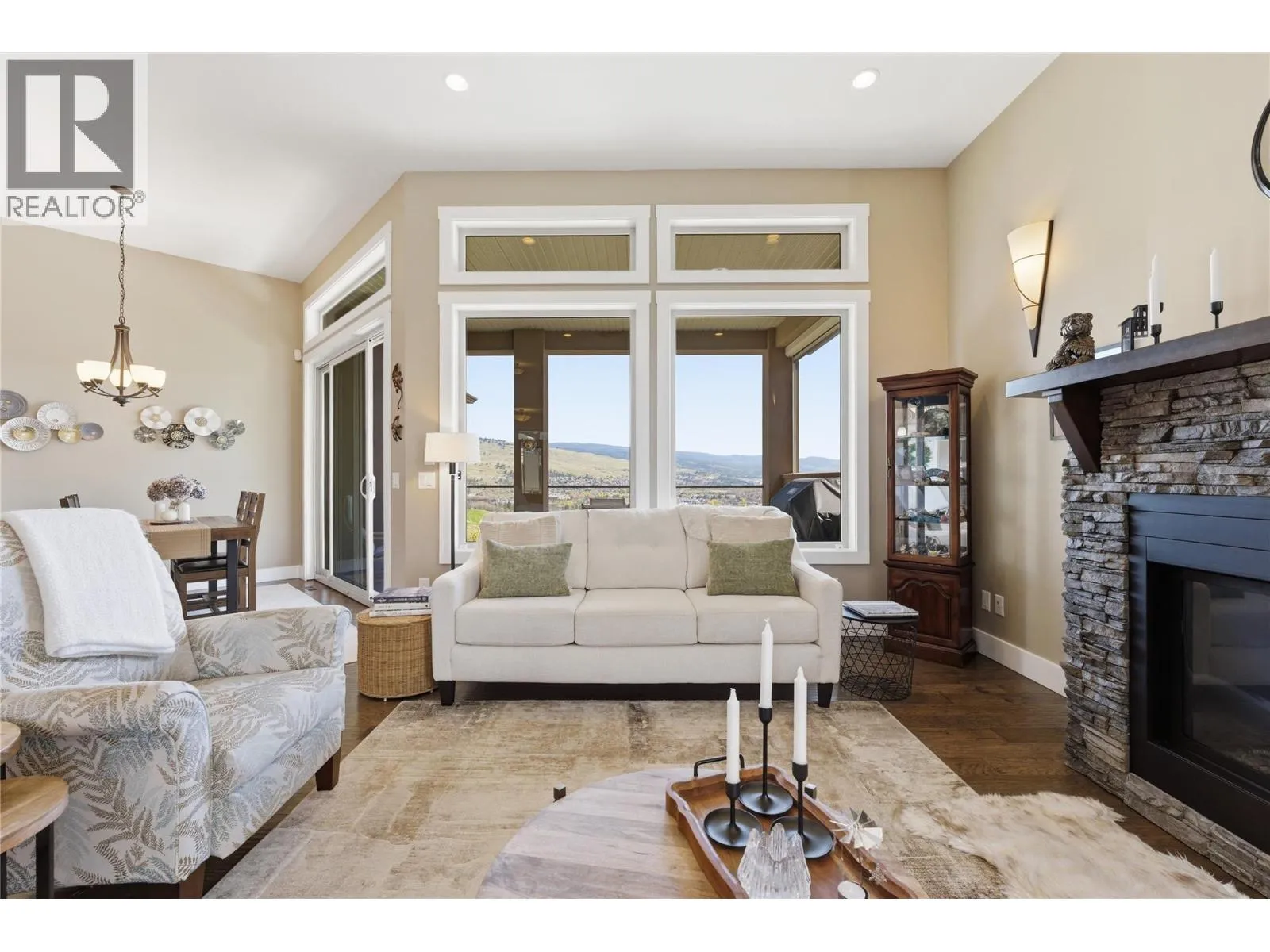 Set above Wood Lake with unobstructed views of the water and surrounding orchards, this south facing 4-bedroom, 4-bathroom rancher captures the essence and beauty of Okanagan living. At the heart of the home, the chefâs kitchen features stainless steel appliances, a gas range, custom cabinetry, and a large island. The adjoining living and dining areas flow seamlessly onto the covered balcony, creating the perfect setting to host or enjoy quiet evenings overlooking the lake. The main floor primary suite is a private retreat, complete with a spa-inspired ensuite and generous walk-in closet. A second main floor bedroom or office features soaring 16-foot ceilings and oversized windows, filling the space with natural light. Downstairs, the walk-out basement opens into a bright and welcoming lower level. A large rec room complete with a wet bar and a Scandinavian-style gas fireplace is perfect for cozy nights or a dedicated games and entertainment area. Two additional bedrooms and bathrooms provide ample space for family or guests. The level backyard extends your living outdoors, perfect for kids to play, with the option to add a pool if desired. A double garage plus RV or boat parking gives you plenty of room for all your vehicles and toys. Located in one of Lake Countryâs most desirable neighborhoods, The Lakes, you are just minutes from the airport, world-class wineries, trails, beaches and the pristine waters of Okanagan Lake. HWT 2021, Roof 2012, Furnace 2011, A/C 2011, 200amp (id:27476)