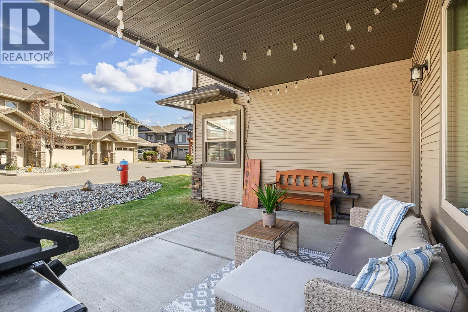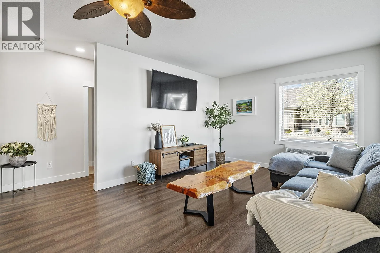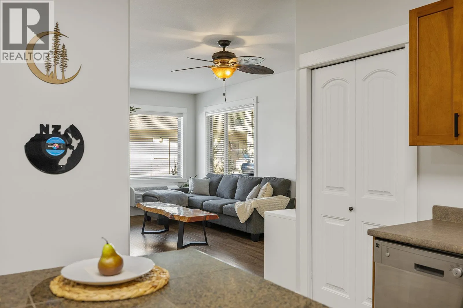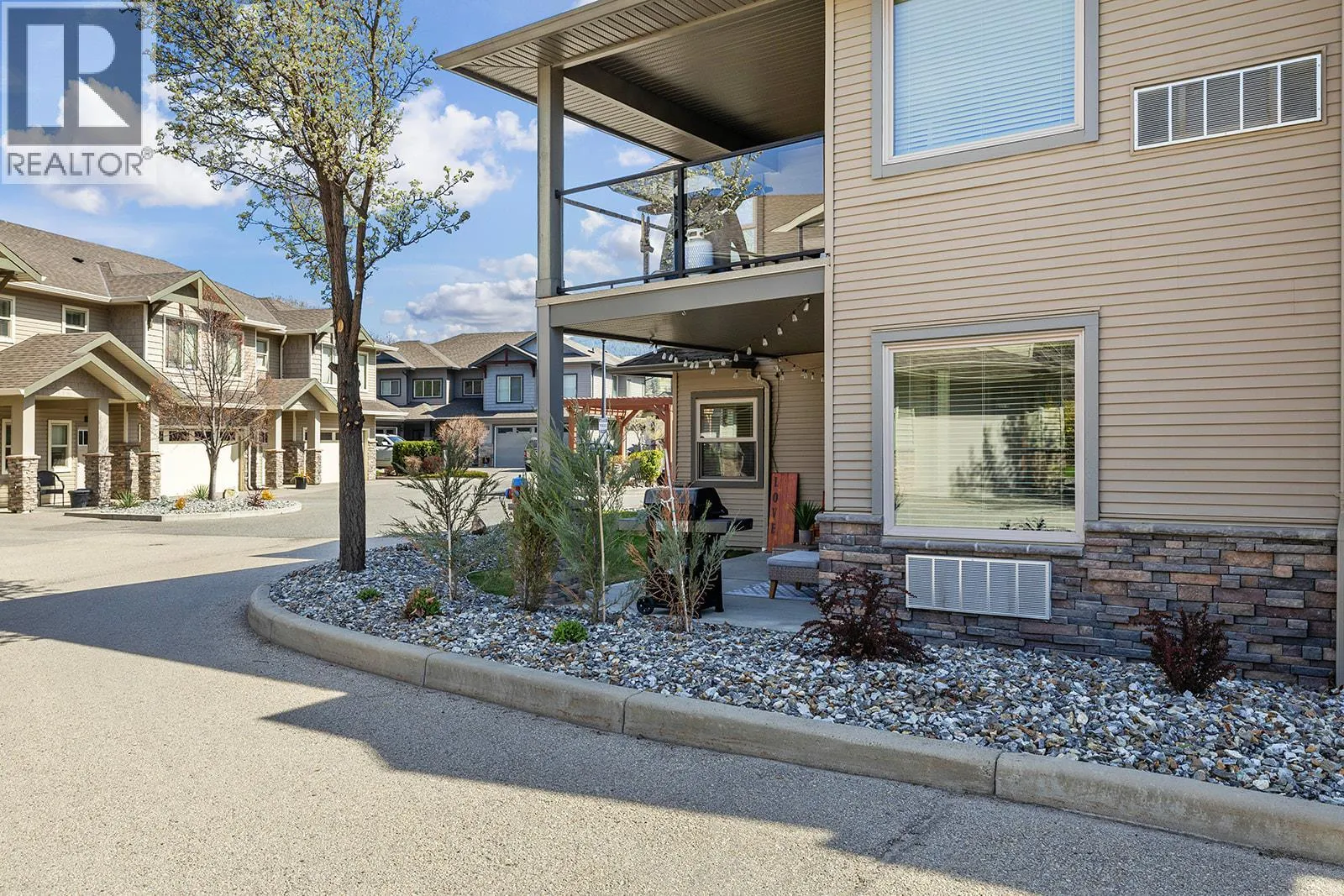 Welcome to this charming ground-floor 2 bed, 2 bath home offering comfort, convenience, and exceptional value. Immaculately maintained and freshly painted throughout, this unit is move-in ready and thoughtfully designed. The bright kitchen features updated stainless steel appliances, an eat-up island, and direct access to the attached single-car garageâperfect for everyday ease. A private front entry also leads directly into the kitchen for added functionality. The spacious living room opens onto a covered concrete patio and grassy area, creating a seamless indoor-outdoor living experience. The well-designed split-bedroom layout ensures privacy, with a generously sized primary bedroom featuring a 3-piece ensuite and walk-in shower. The second bedroom is bright and inviting, with convenient access to a full 4-piece bathroom. Thoughtful upgrades include newer lighting with dimmable features, a newer hot water tank, and two new P-TAC systems for efficient heating and cooling. Plus, low strata fees keep ownership affordable. Pet lovers will appreciate the rare allowance of 2 dogs or cats with no size restrictions. The attached garage provides parking for one car w/ storage with convenient access to first-come, first-serve parking for residents & visitors just outside. Steps to The Rail Trail, Beasley Park & beachâenjoy lake days, trails & easy Lake Country living right at your doorstep. A fantastic opportunity for first-time buyers, downsizers, or investors alike! (id:27476)